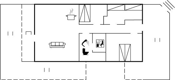 Dejligt sommerhus med skøn beliggenhed og med tilhørende 3 terrasser, som vender mod øst, vest og syd, og hvor den vestvendte er delvist overdækket. Der er havkig fra klittoppen.