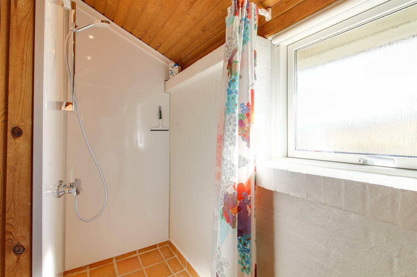 Der er 1 badeværelse med bruseniche og 1 toilet.. Der er gulvvarme på 1 badeværelse. I saunaen er der mulighed for afslapning.