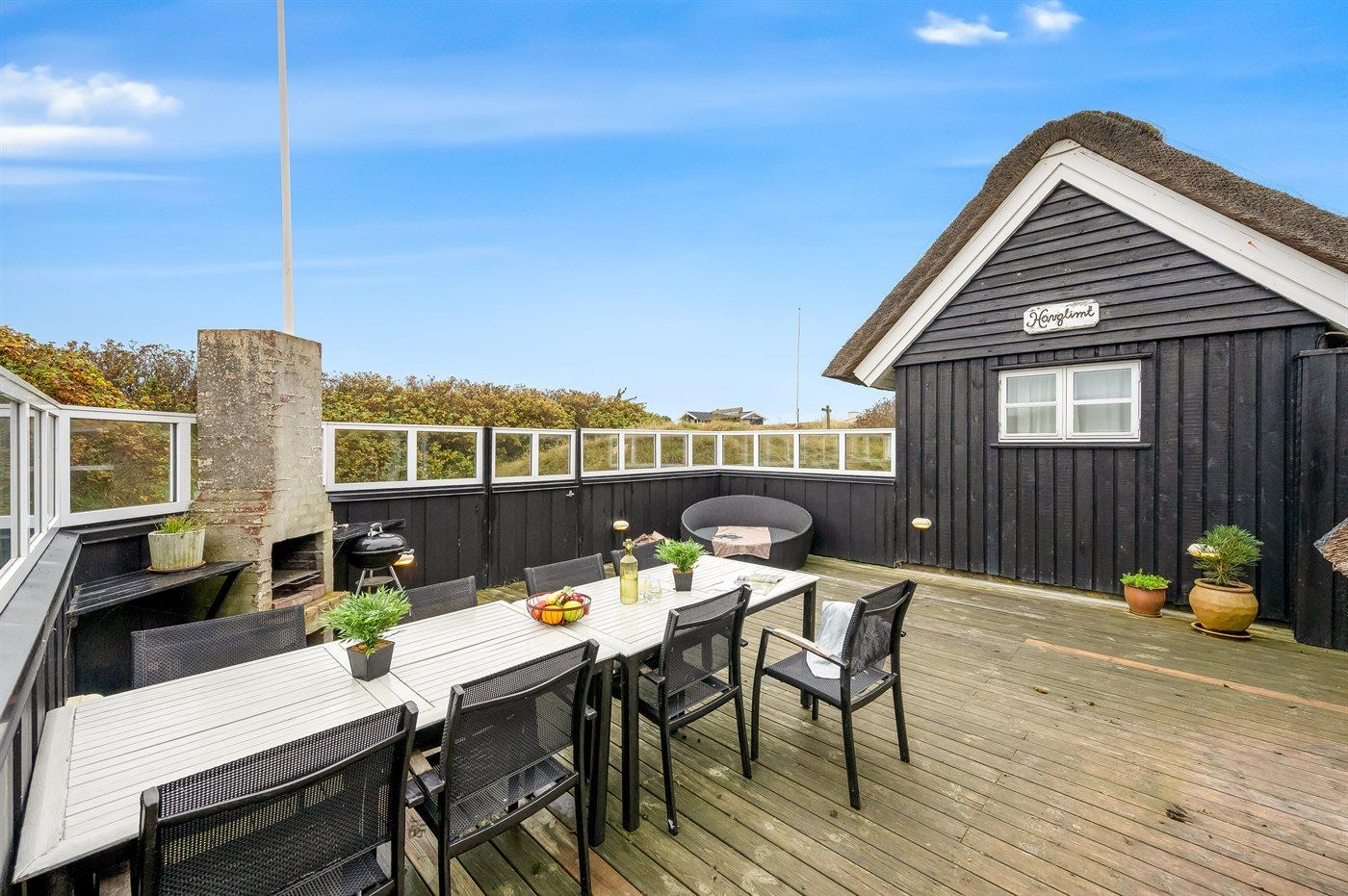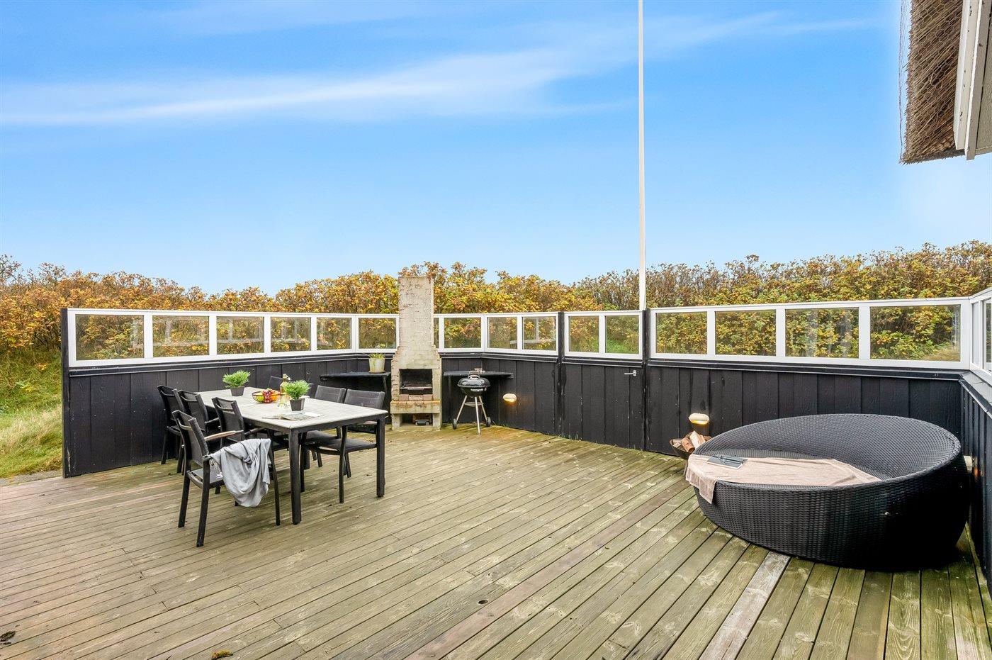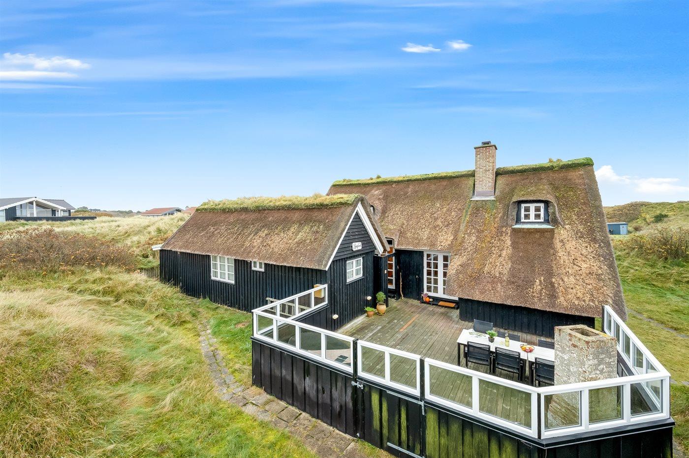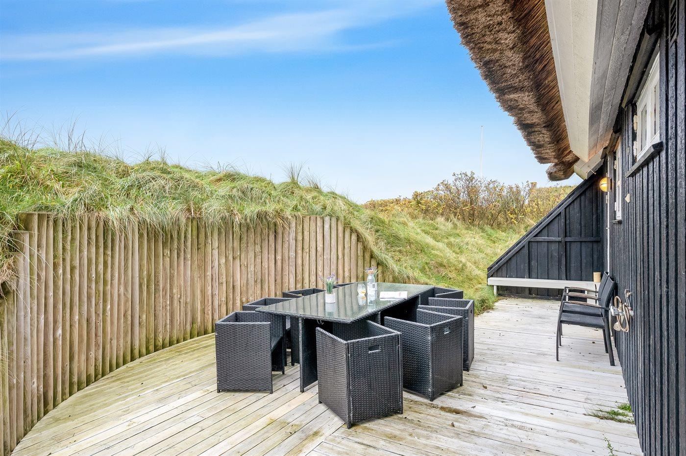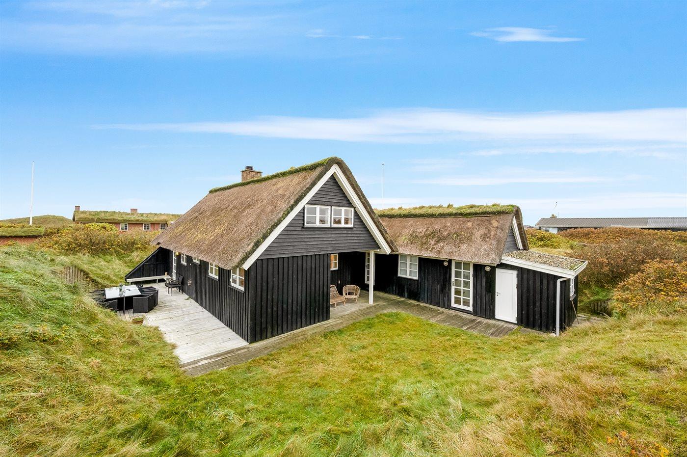 Tæt på stranden ligger dette store stråtækte sommerhus på en kuperet klitgrund med store terrasser, hvor solen kan nydes dagen lang. Indretningen er smagfuld og personlig, og huset egner sig godt til familier med børn. Da sommerhuset blev bygget, kunne man se havet fra den ene opholdsstue i stueetagen. Fanøs klitgrund er imidlertid i stadig forandring, og klitterne foran huset er vokset - men man kan stadig se glimt af havet fra den ekstra opholdsstue på første etage. Der er 2 parkeringspladser ved huset.