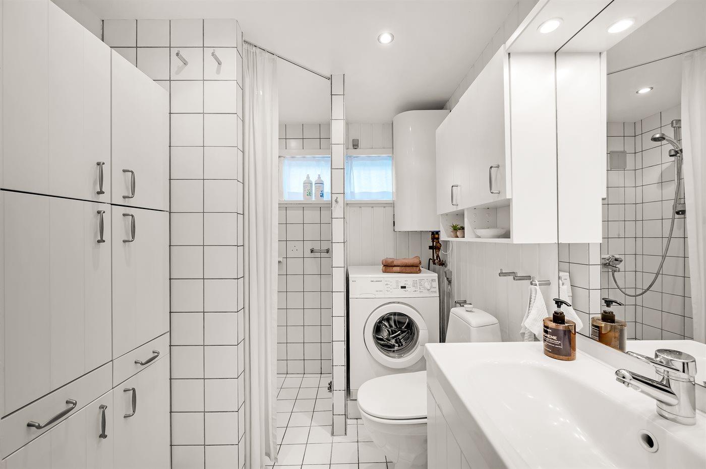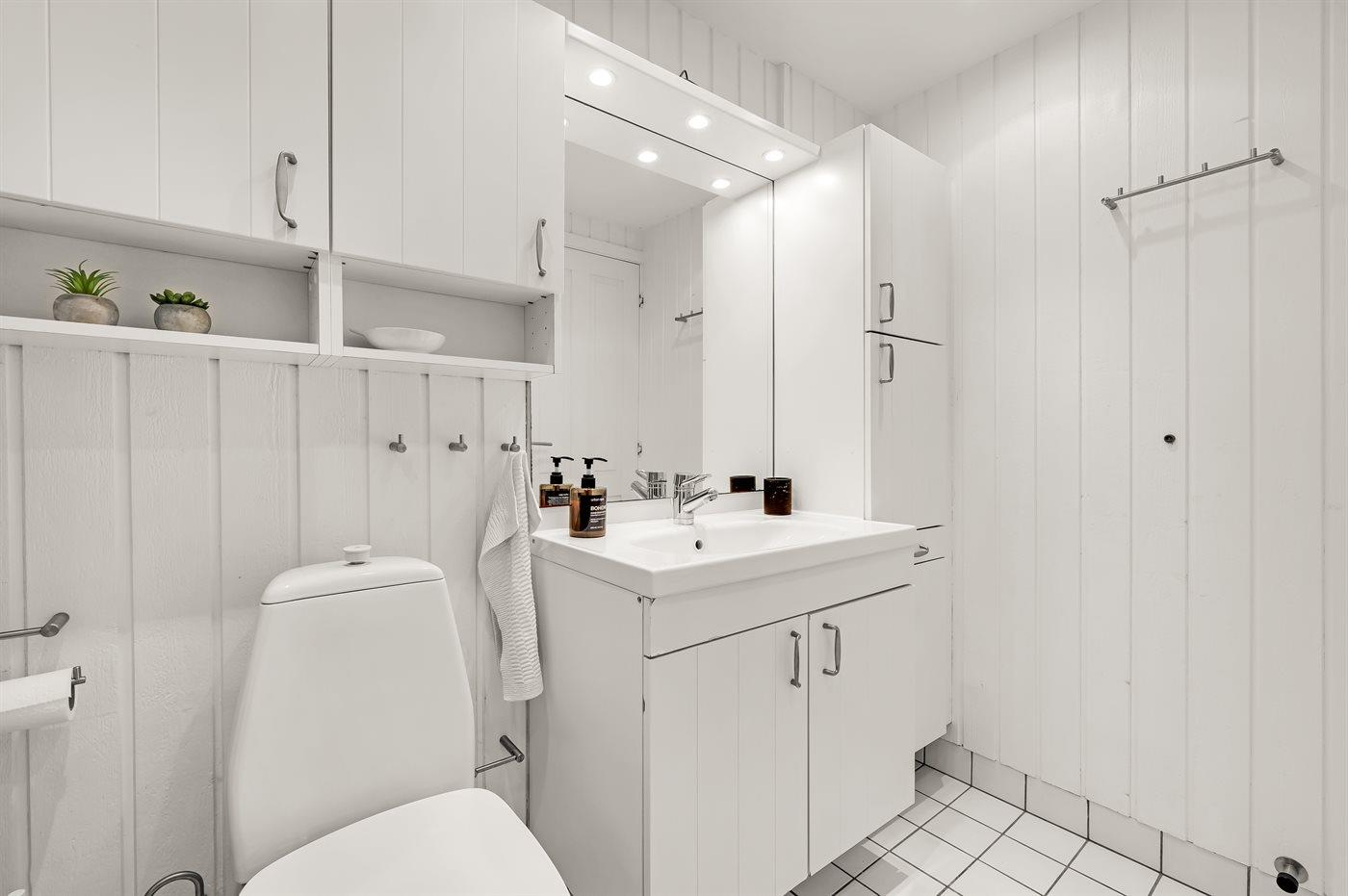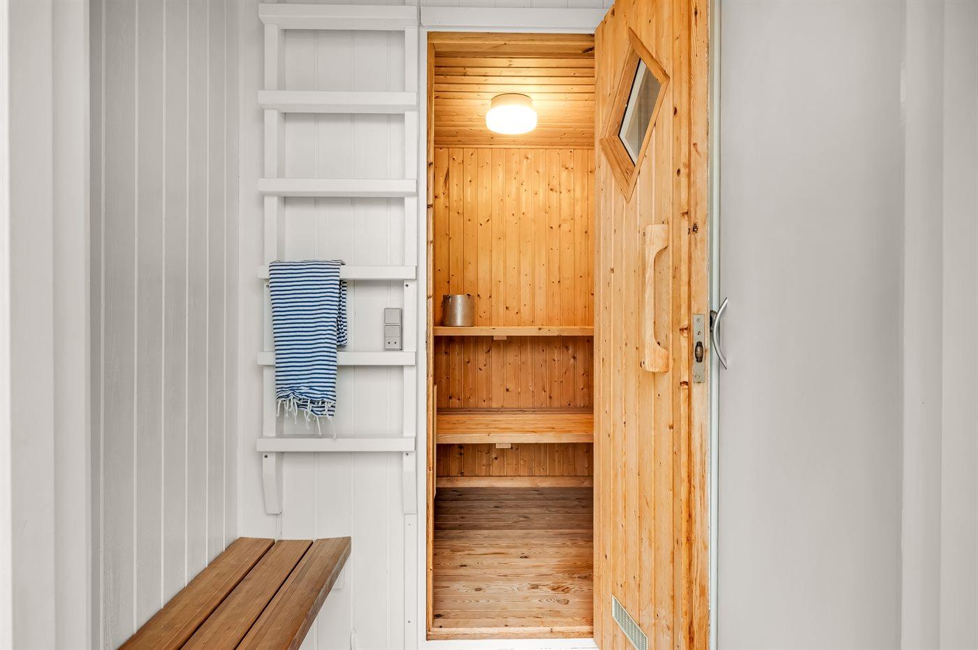 Der er 1 badeværelse med bruseniche og 1 toilet.. Der er gulvvarme på 1 badeværelse. I saunaen er der mulighed for afslapning.