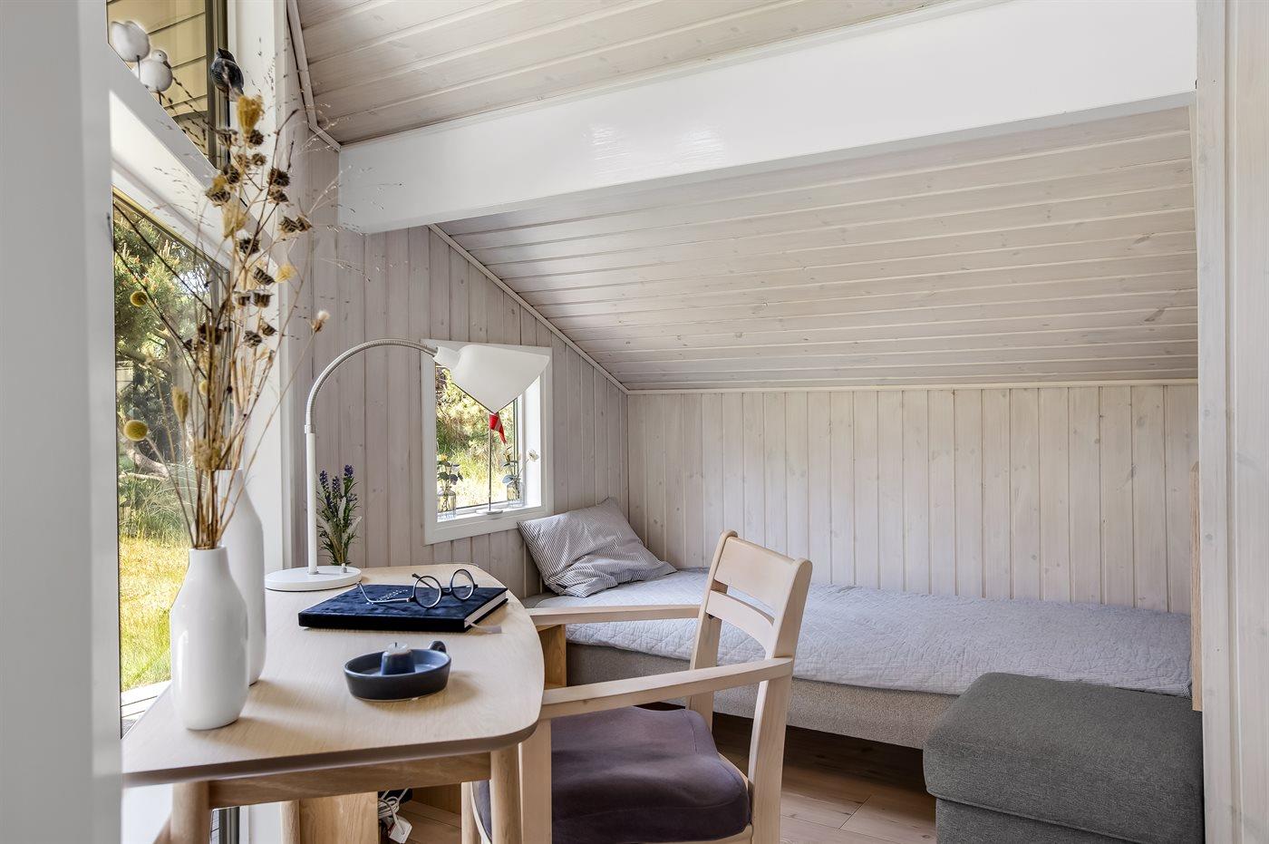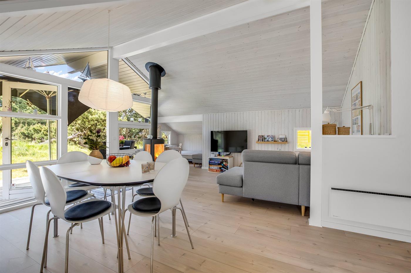 Flot og velholdt sommerhus beliggende på en stor, skøn og ugenert grund ved Rindby Strand. Huset, der er dejligt lyst og moderne, er beliggende på en naturgrund omkranset af høje fyrretræer i et roligt område.