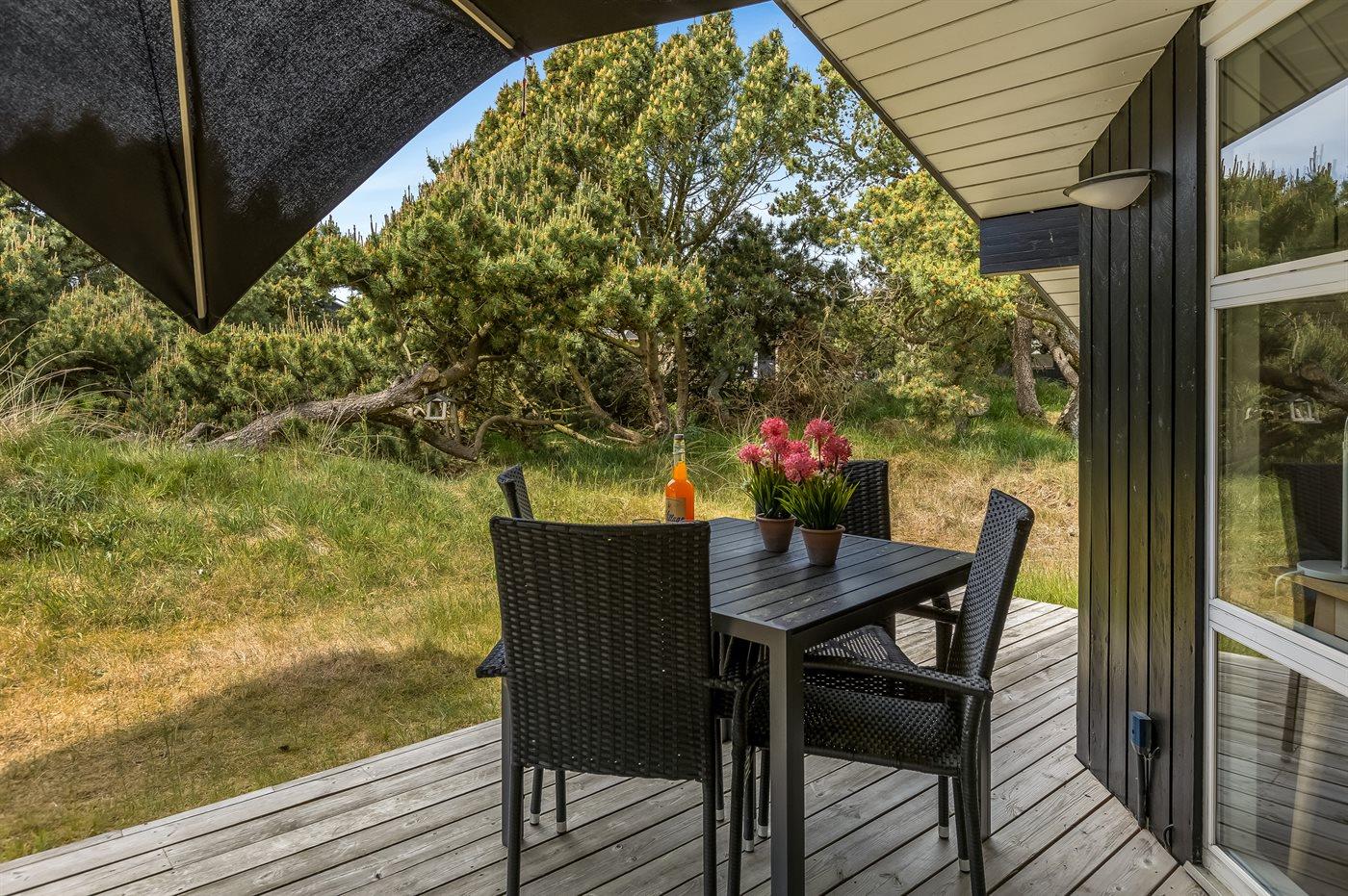 Ferieboligen er beliggende på en 1251 m² stor naturgrund. Der er 800 m til havet. Nærmeste forretning er beliggende i en afstand af 300 m. Til ferieboligen hører åbent terrasseareal. Desuden er der overdækket terrasse. Parkering ved ferieboligen.