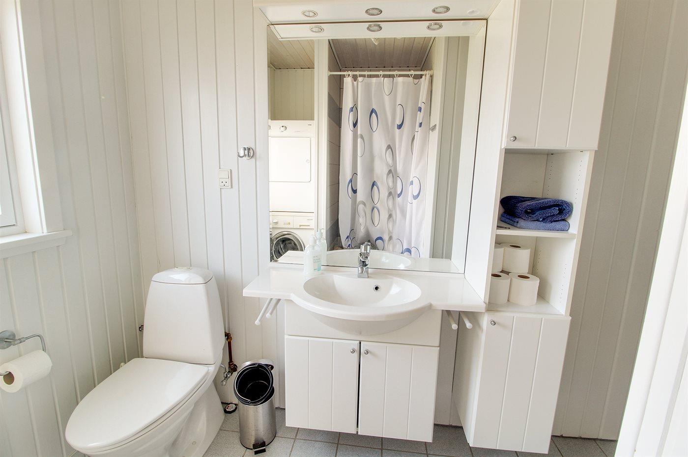 Der er 2 badeværelser med bruseniche og 2 toiletter. Der er gulvvarme på 2 badeværelser. I saunaen er der mulighed for afslapning.
