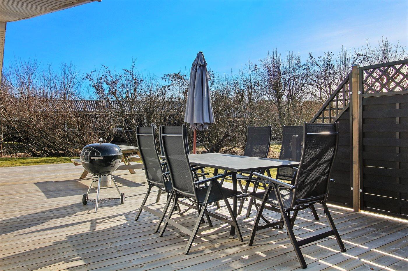 Ferieboligen er beliggende på en 2134 m² stor naturgrund. Der er 1200 m til havet. Nærmeste forretning er beliggende i en afstand af 3500 m. Der er en golfbane i en afstand af 5700 m. Til ferieboligen hører 85 m² terrasseareal. Ligeledes er der adgang til udestue. Der er redskabsrum. Gynge. Sandkasse. Rutchebane. Bålsted. Grill til rådighed. Parkering ved ferieboligen.