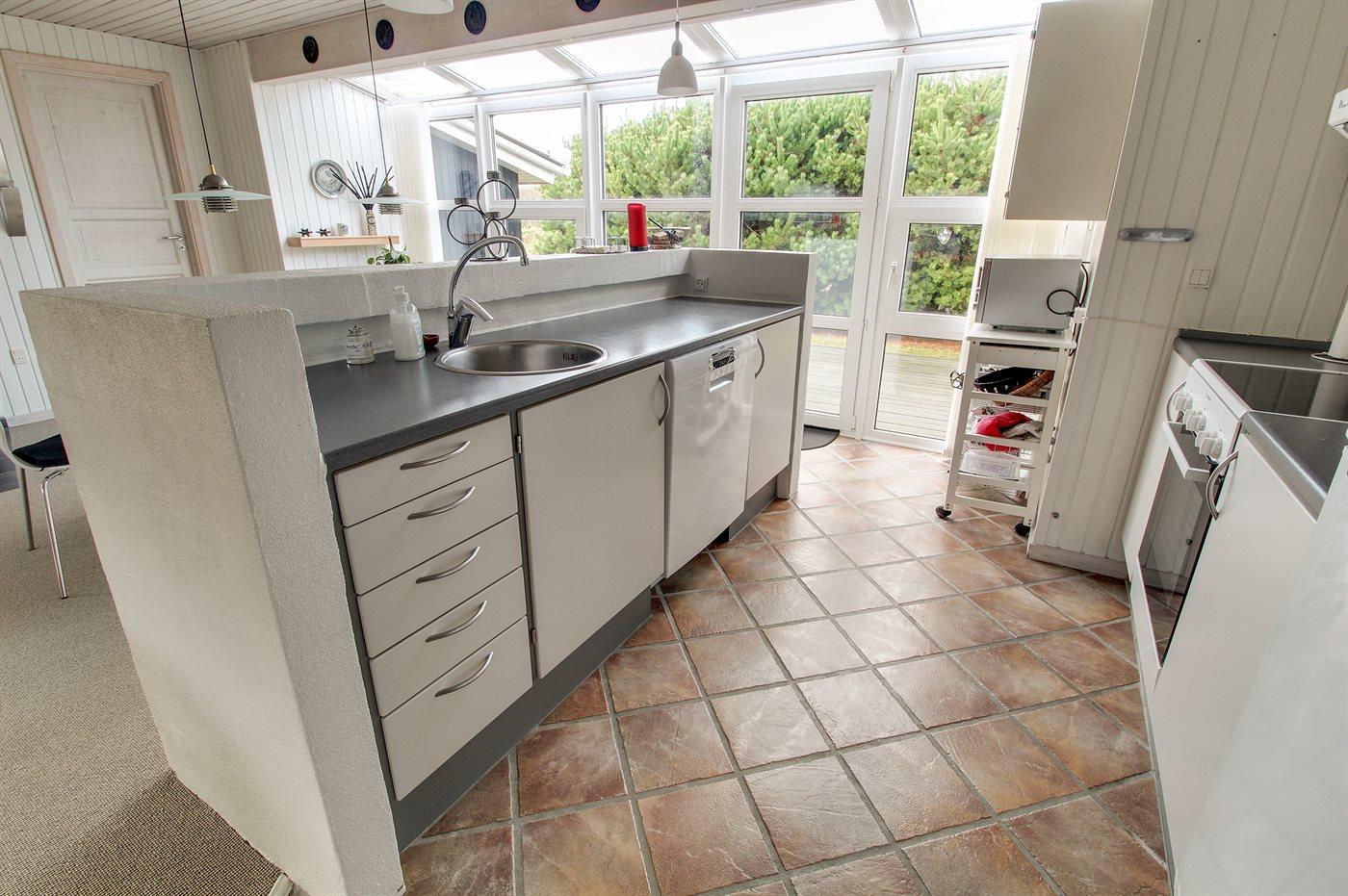 Køkkenet er udstyret med 1 køleskab. Der er 4 keramiske kogeplader, varmluftovn, mikrobølgeovn samt opvaskemaskine.