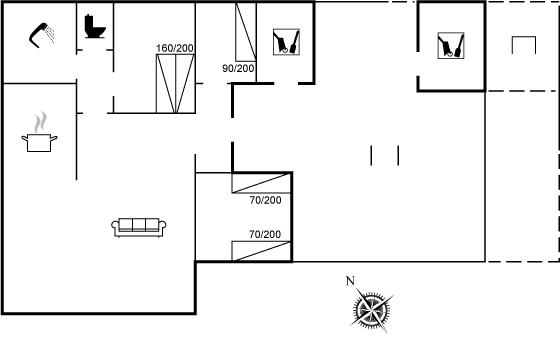 Sovepladserne er fordelt på 3 soveværelser: 1 soveplads i en dobbeltseng og 3 sovepladser i enkeltsenge. Gulvvarme i badeværelse, toilet og et af soveværelserne.
