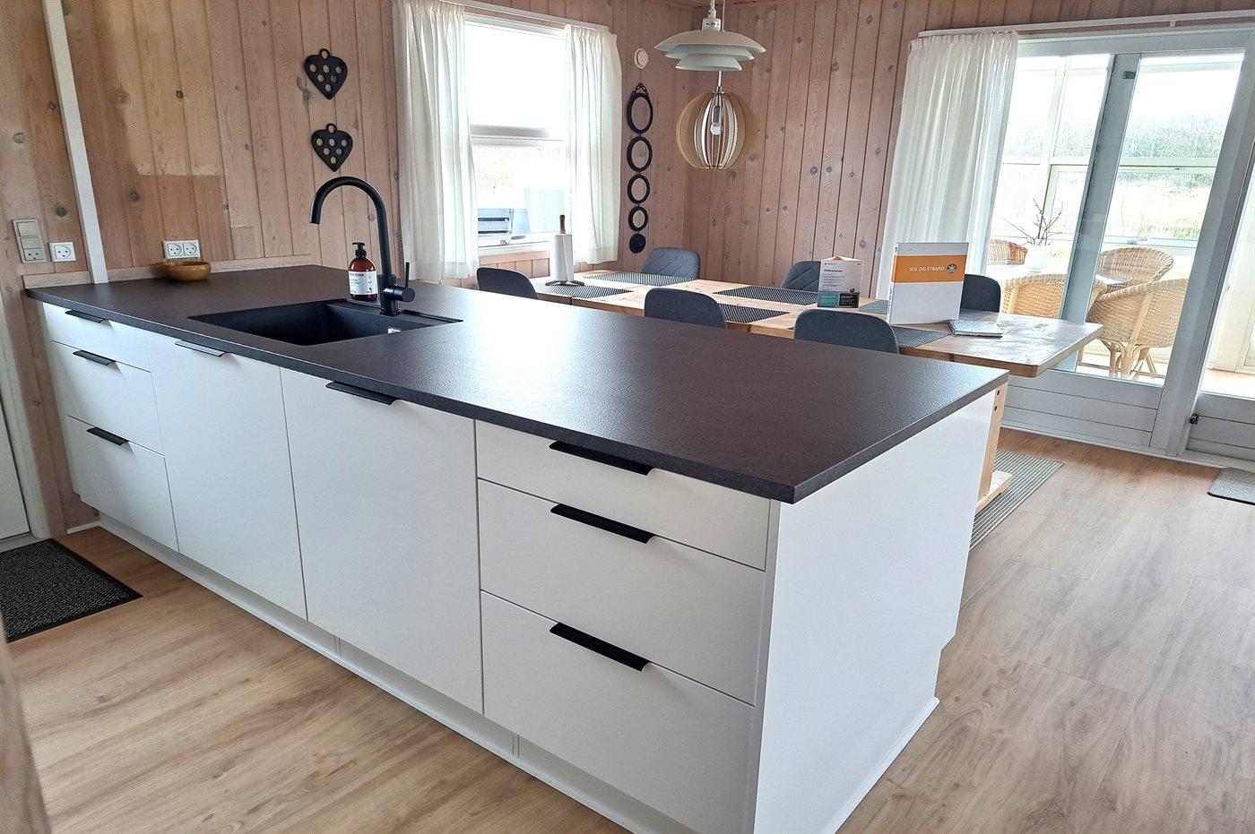 Køkkenet er udstyret med 1 køleskab. Der er 4 induktionskogeplader, varmluftovn, mikrobølgeovn samt opvaskemaskine.