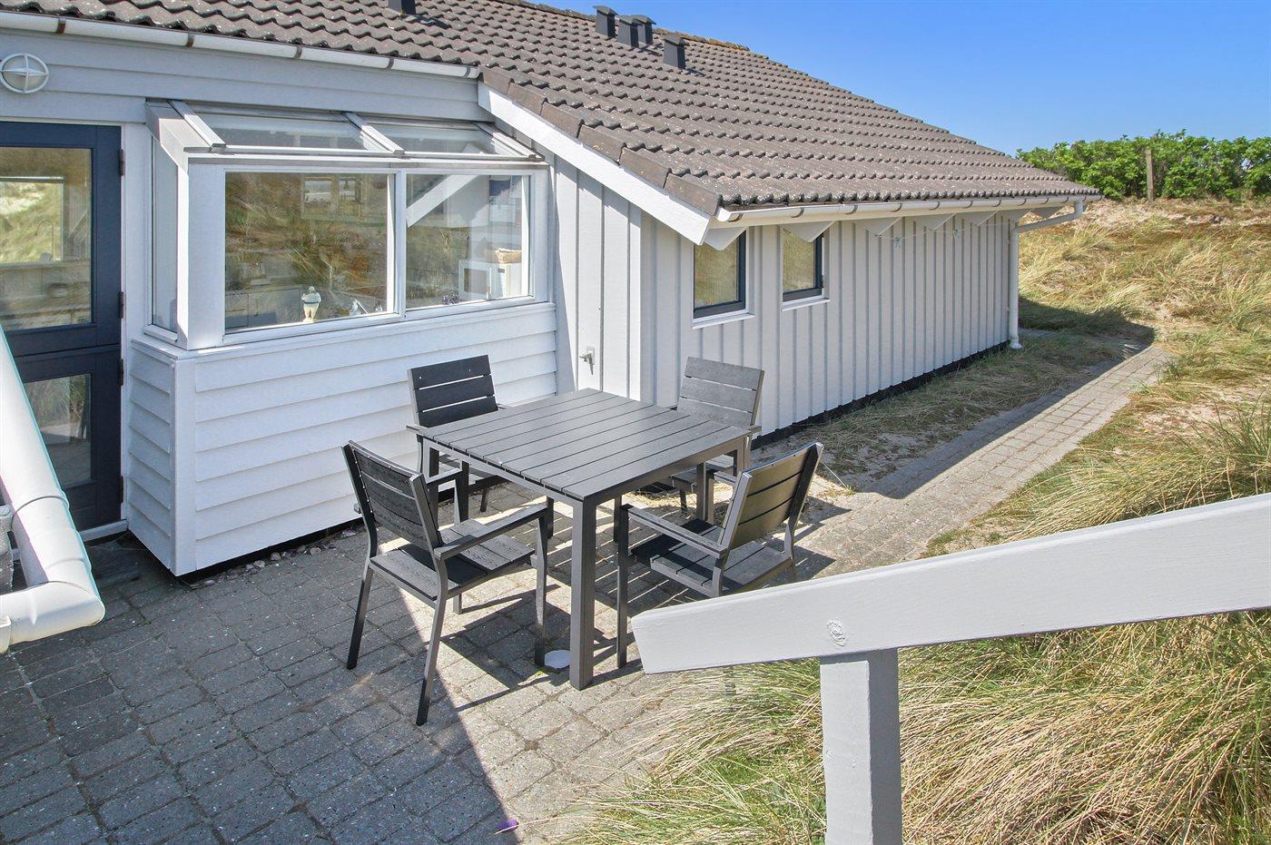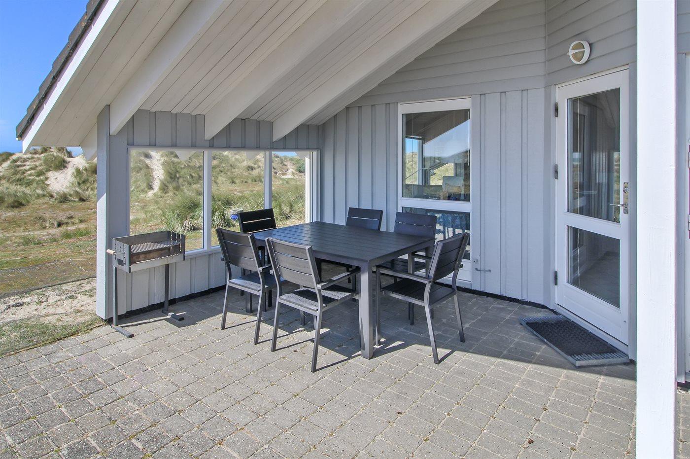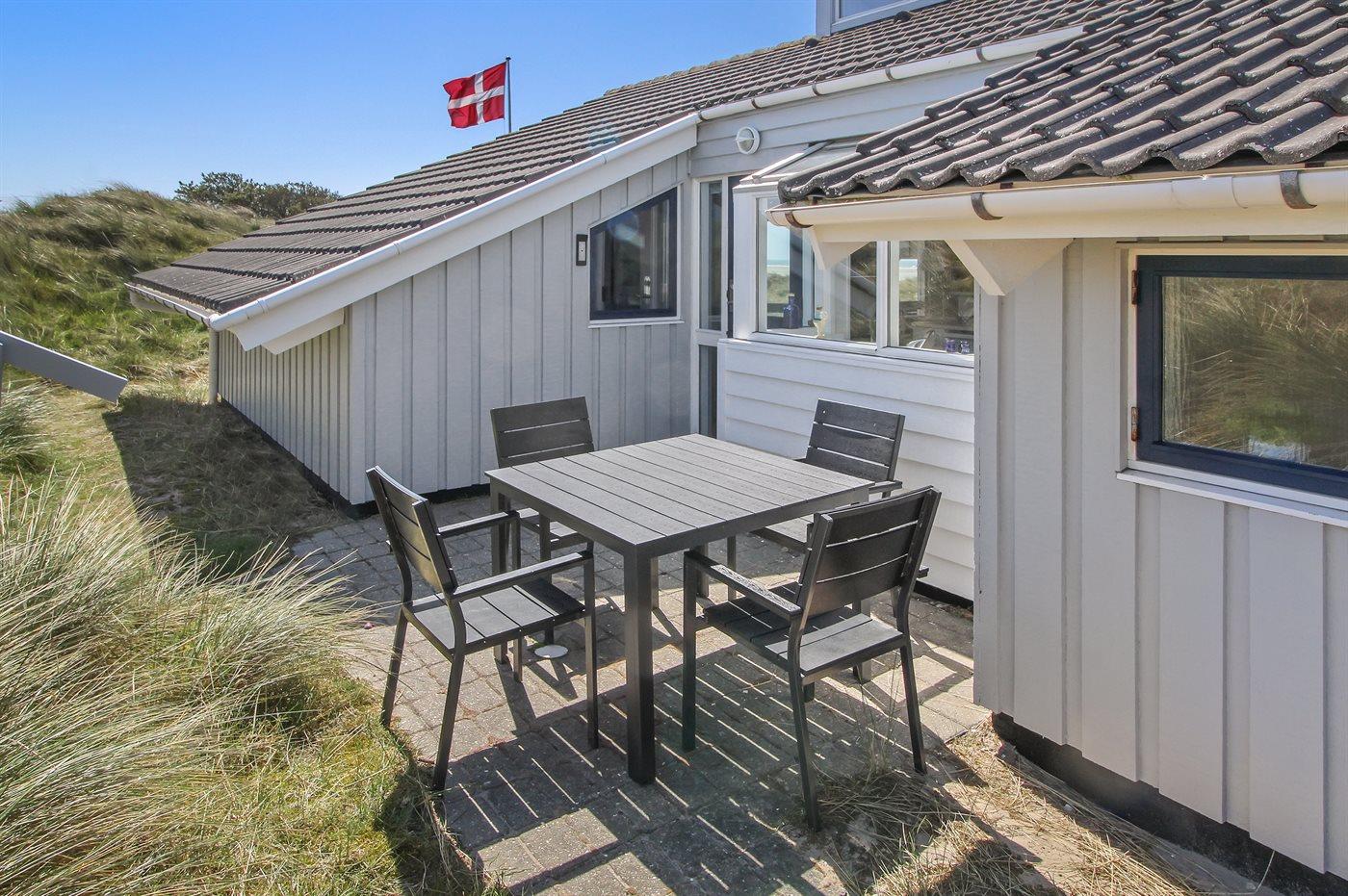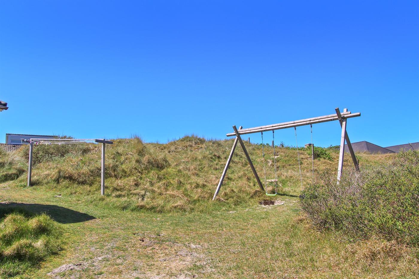 Ferieboligen er beliggende på en 2223 m² stor klitgrund. Der er 50 m til havet. Nærmeste forretning er beliggende i en afstand af 400 m. Der er en golfbane i en afstand af 3000 m. Til ferieboligen hører 35 m² terrasseareal. Desuden er der 20 m² overdækket terrasse. Gynge. Sandkasse. Grill til rådighed. Parkering ved ferieboligen.