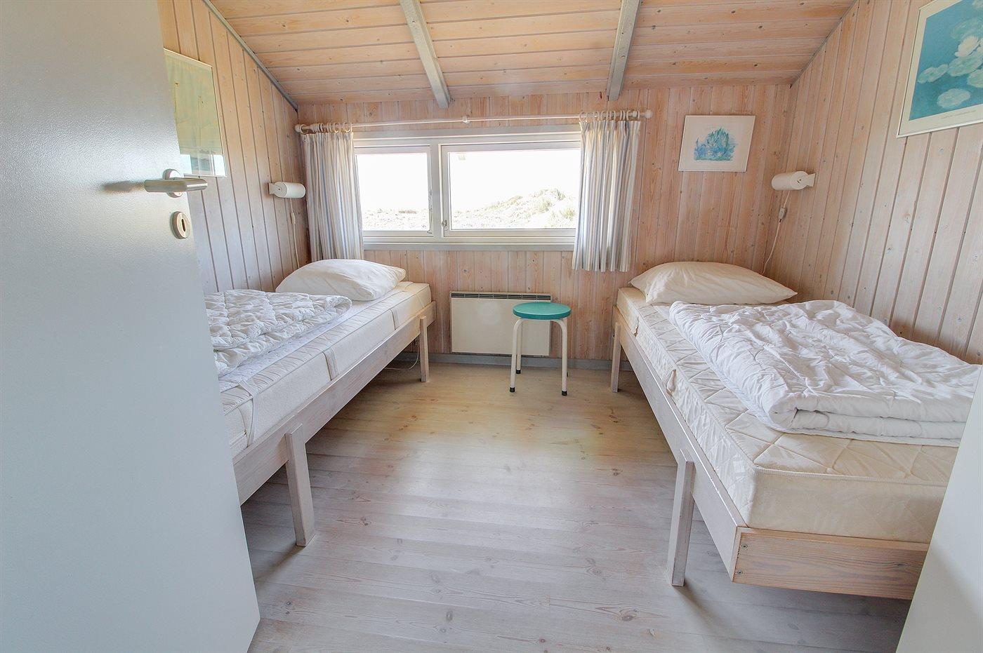Der er i alt 4 soveværelser. Sovepladserne fordeler sig på: 4 sovepladser i dobbeltsenge. 4 sovepladser i enkeltsenge.