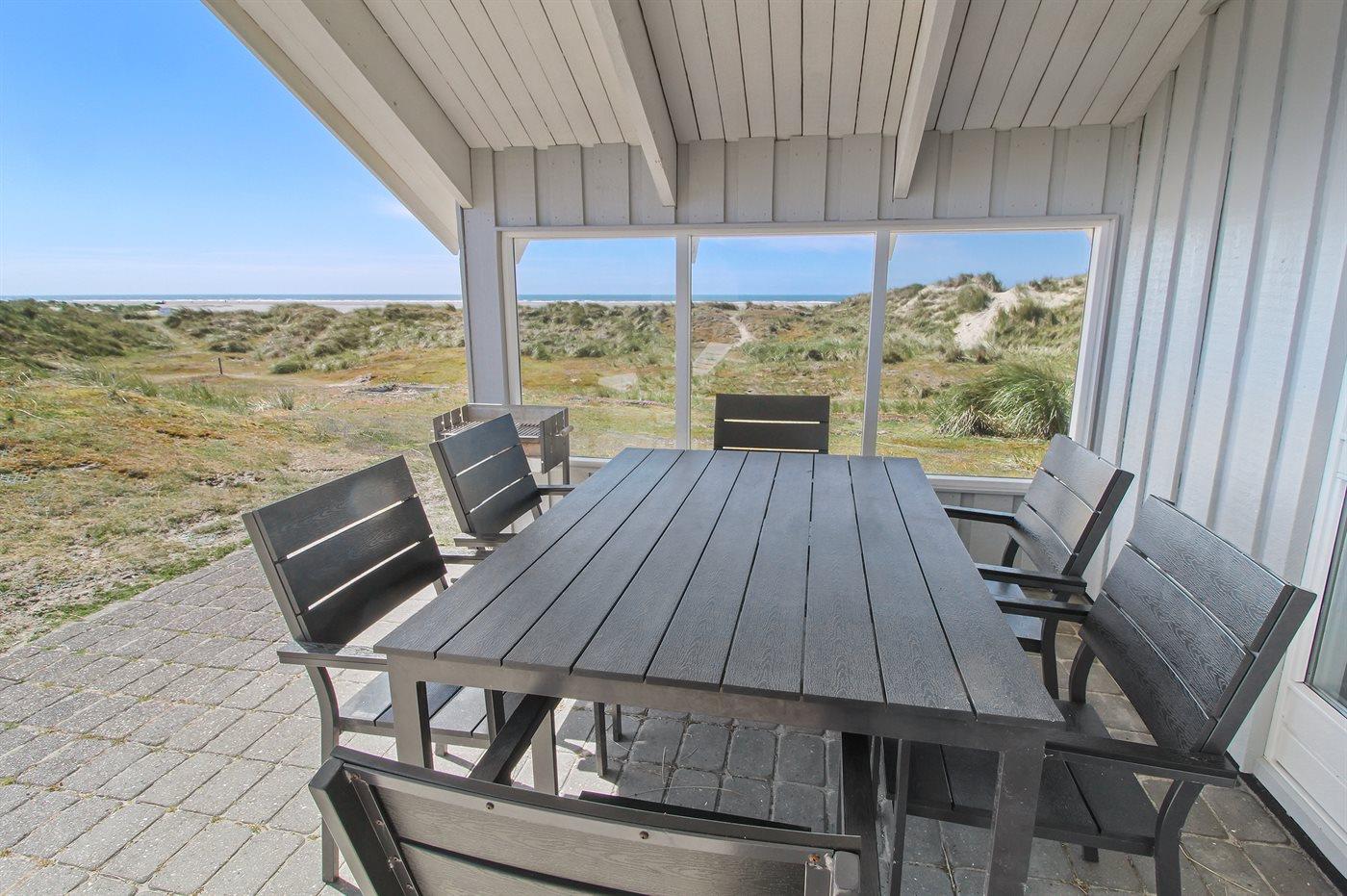 Hyggeligt sommerhus i første klitrække på Fanø med havudsigt, terrasse og spa for ultimativ afslapning.