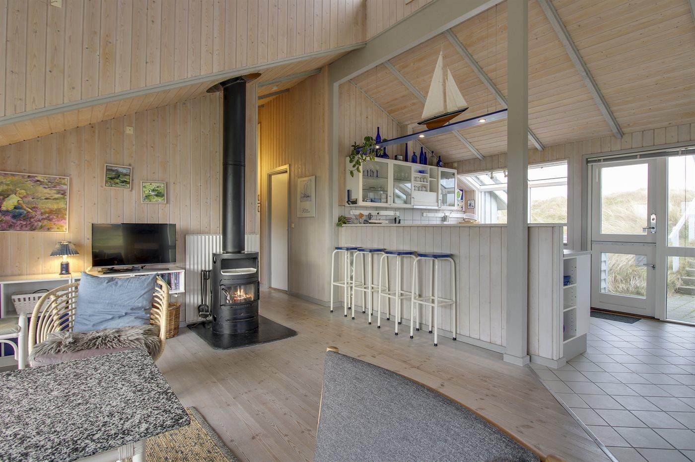 I første klitrække med en af de absolut bedste beliggenheder på Fanø, finder man dette velplejede og hygglige sommerhus. Såvel fra den meget store og kuperede grund som fra husets terrasse og opholdsstue er der udsigt til havet.