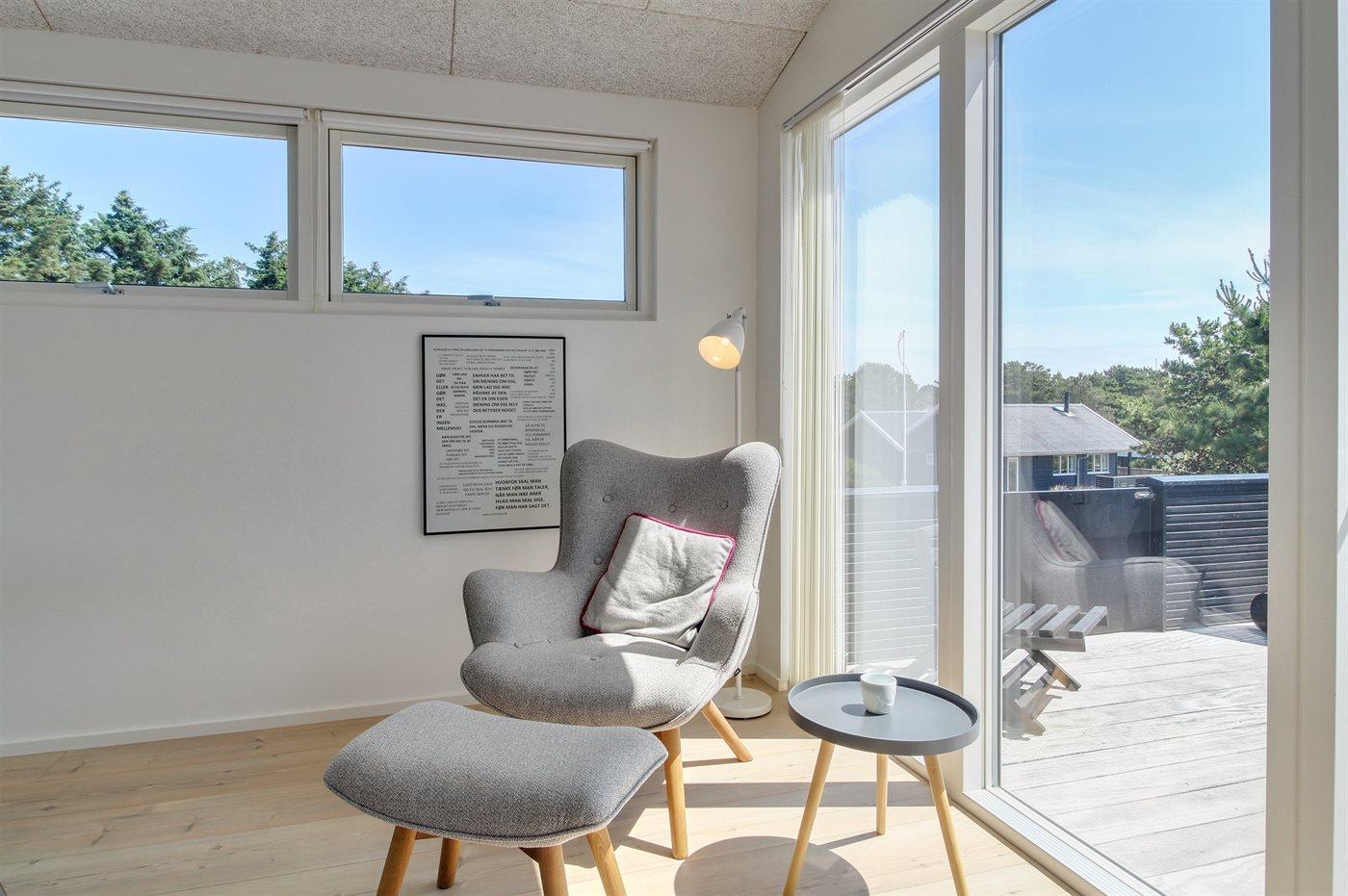 Her er sommerhuset alle drømmer om. Sommerhuset ligger for enden af en lukket vej, midt i klitterne og med skønne, afskærmede terrasser og en flot udsigt til Fanøs natur. Huset er bygget af de bedste materialer og giver rammerne for den perfekte ferie. Der forefindes en gasgrill til huset, som ønskes benyttet af hensyn træbelægningen på terrassen. Gasflasker byttes løbende til nye.