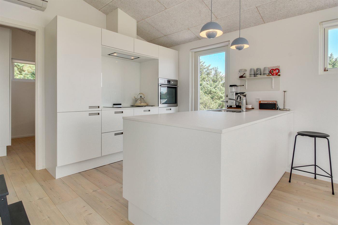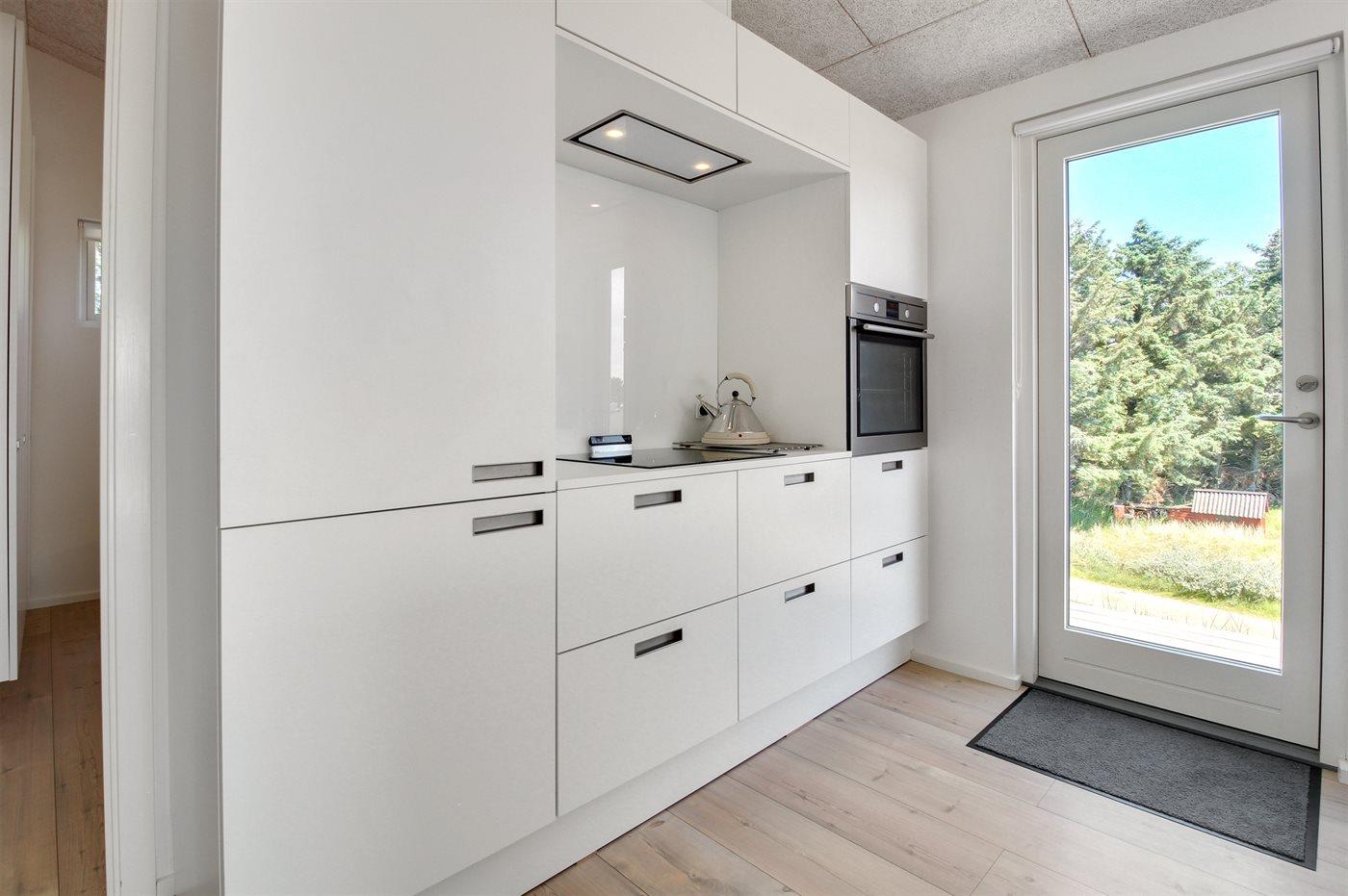 Køkkenet er udstyret med 1 køleskab. Der er 4 induktionskogeplader, varmluftovn, mikrobølgeovn samt opvaskemaskine.
