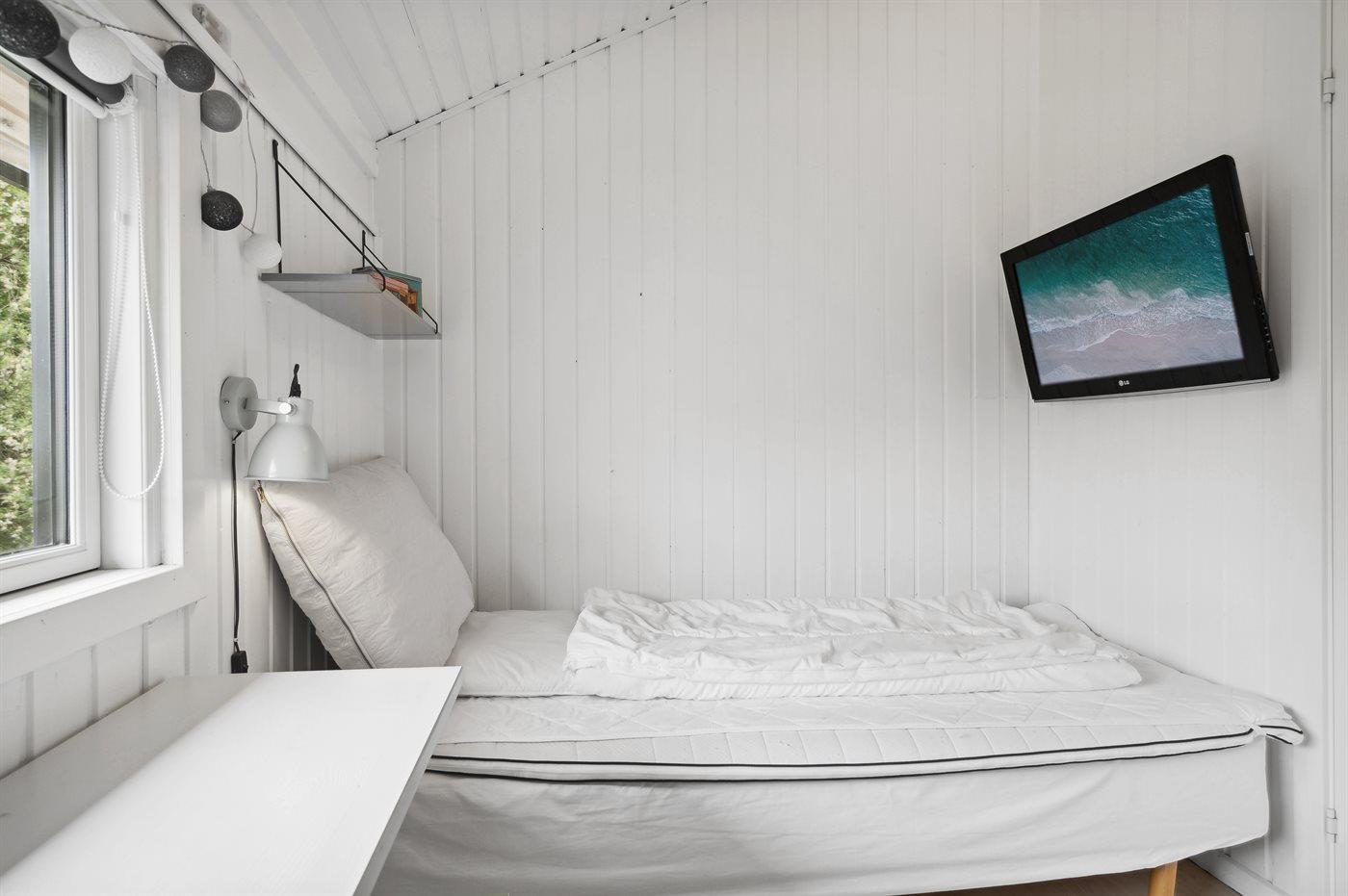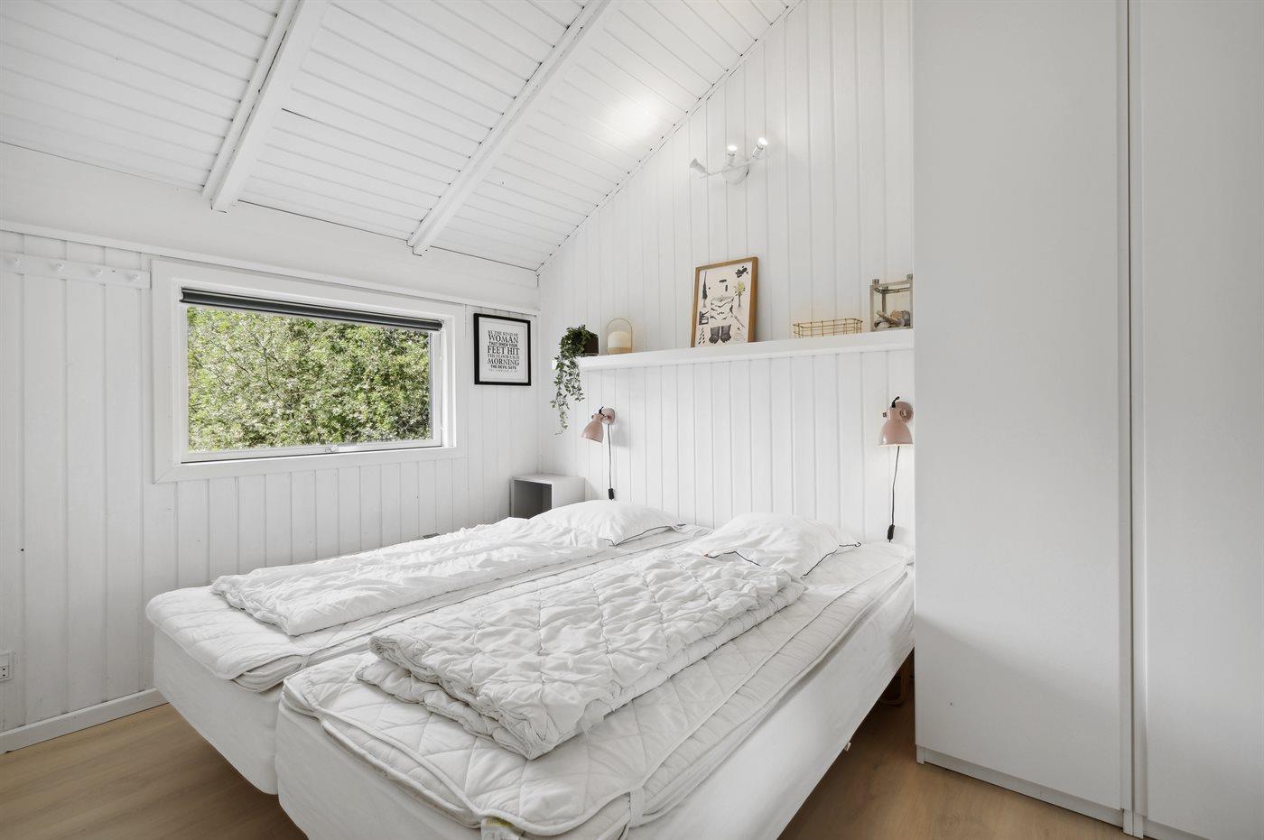 Der er i alt 3 soveværelser. Sovepladserne fordeler sig på: 4 sovepladser i dobbeltsenge. 2 sovepladser i enkeltsenge.