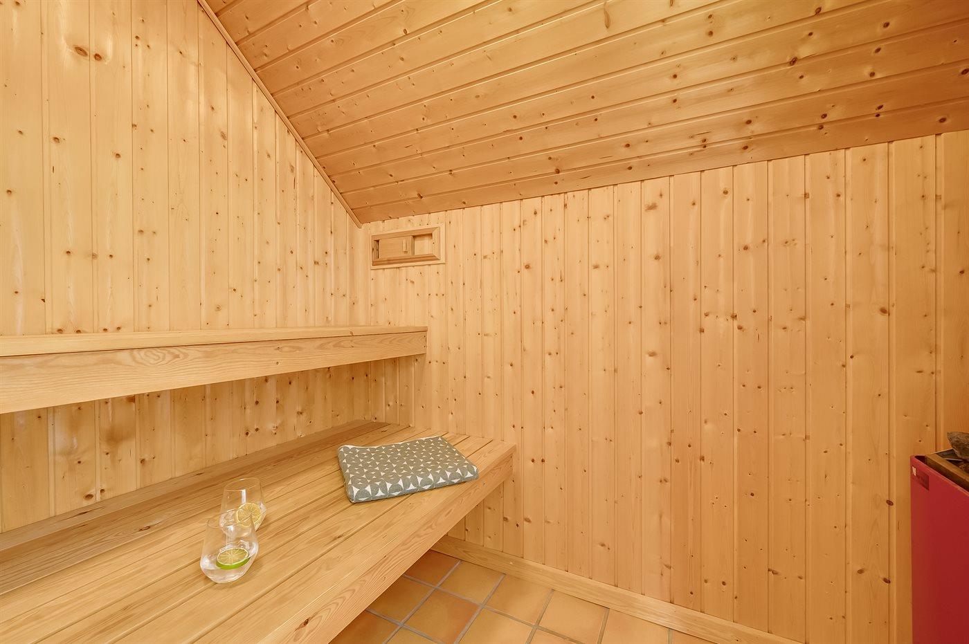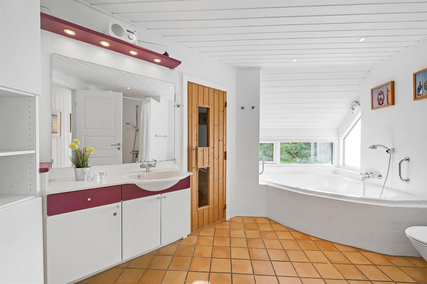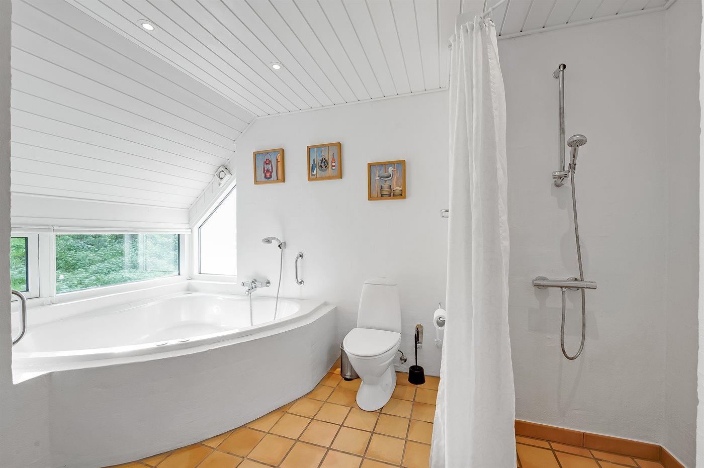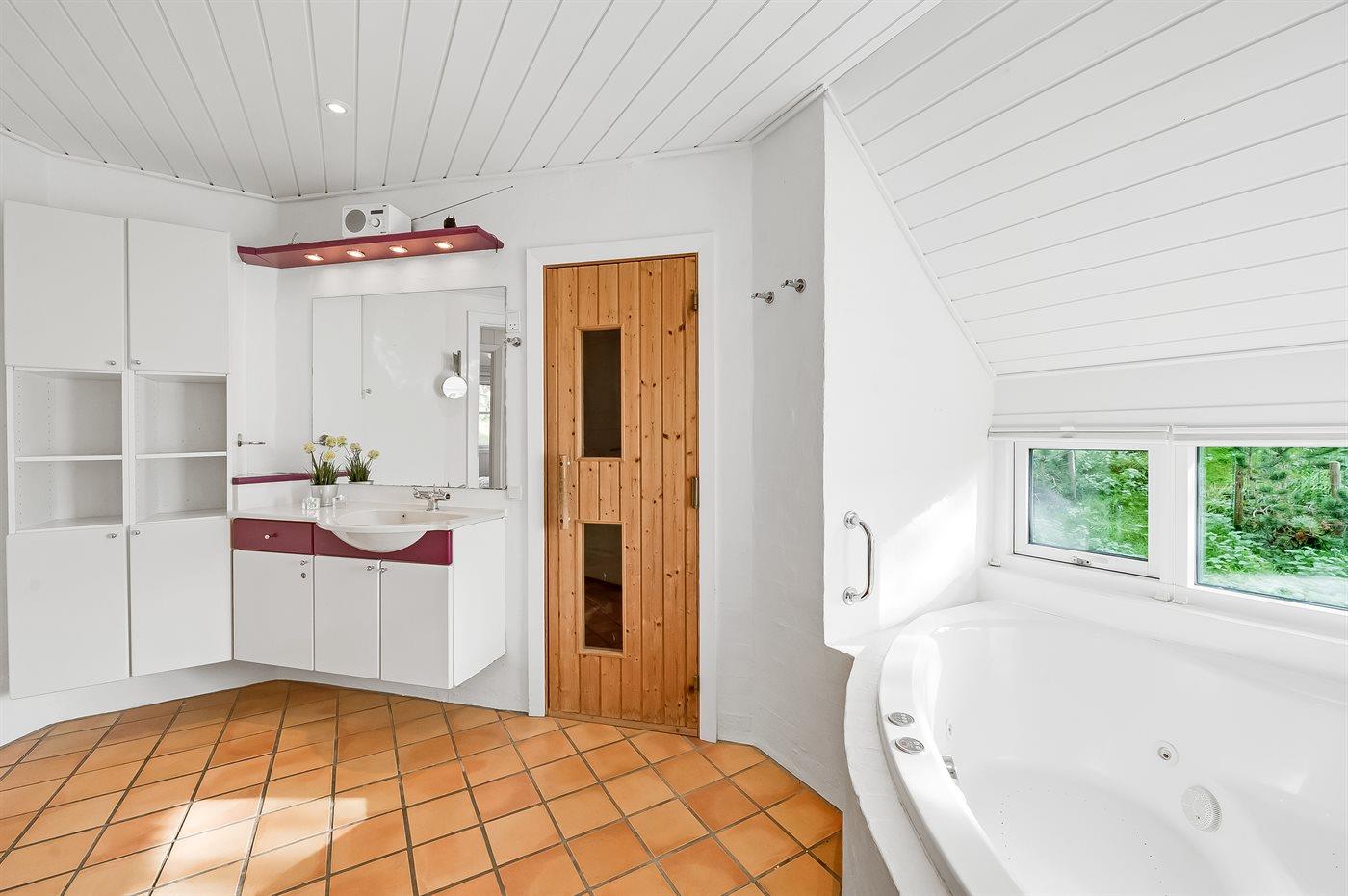 Der er 2 badeværelser med bruseniche og 2 toiletter I saunaen er der mulighed for afslapning.