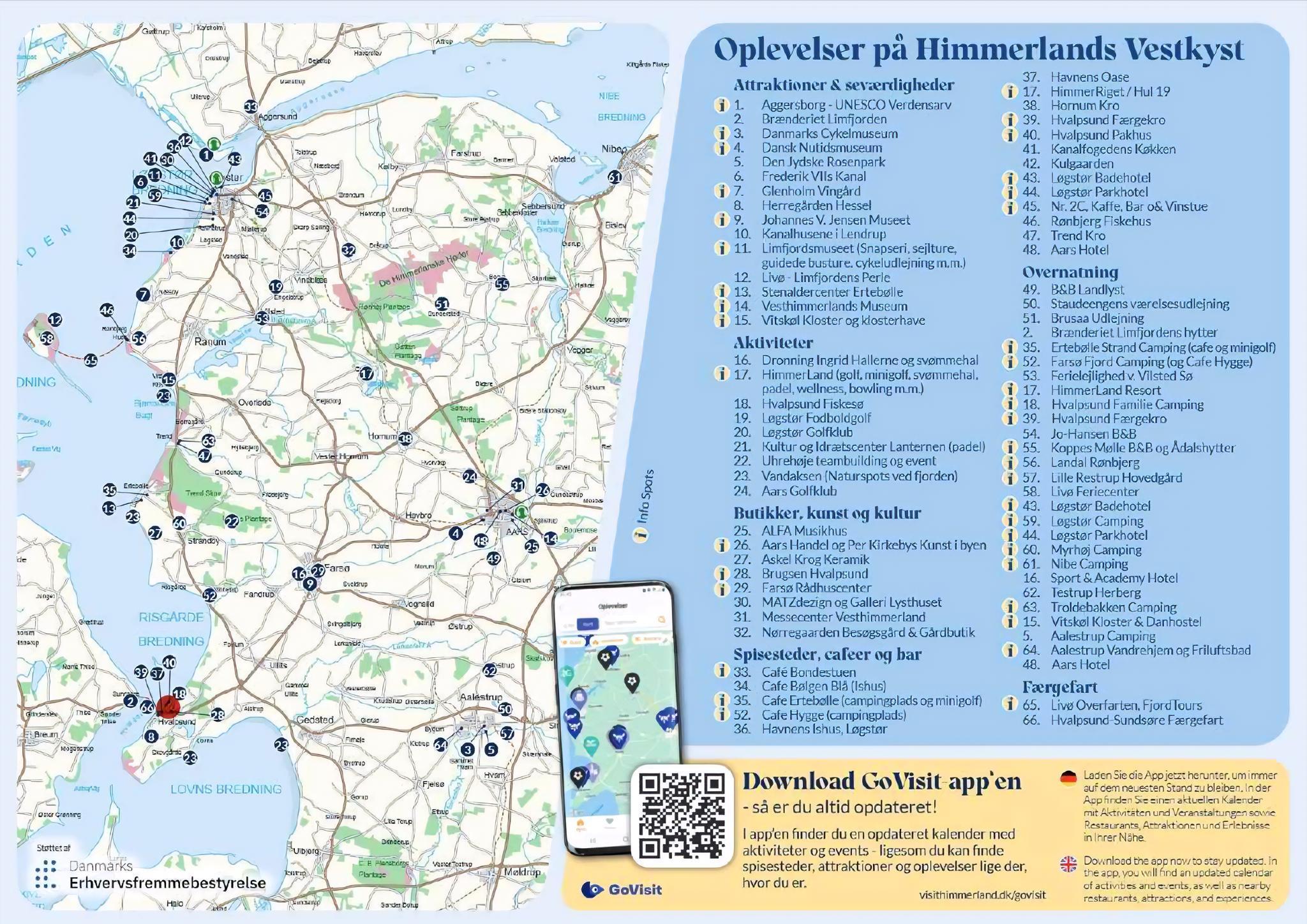Afstande fra ferieboligen og placering på kort