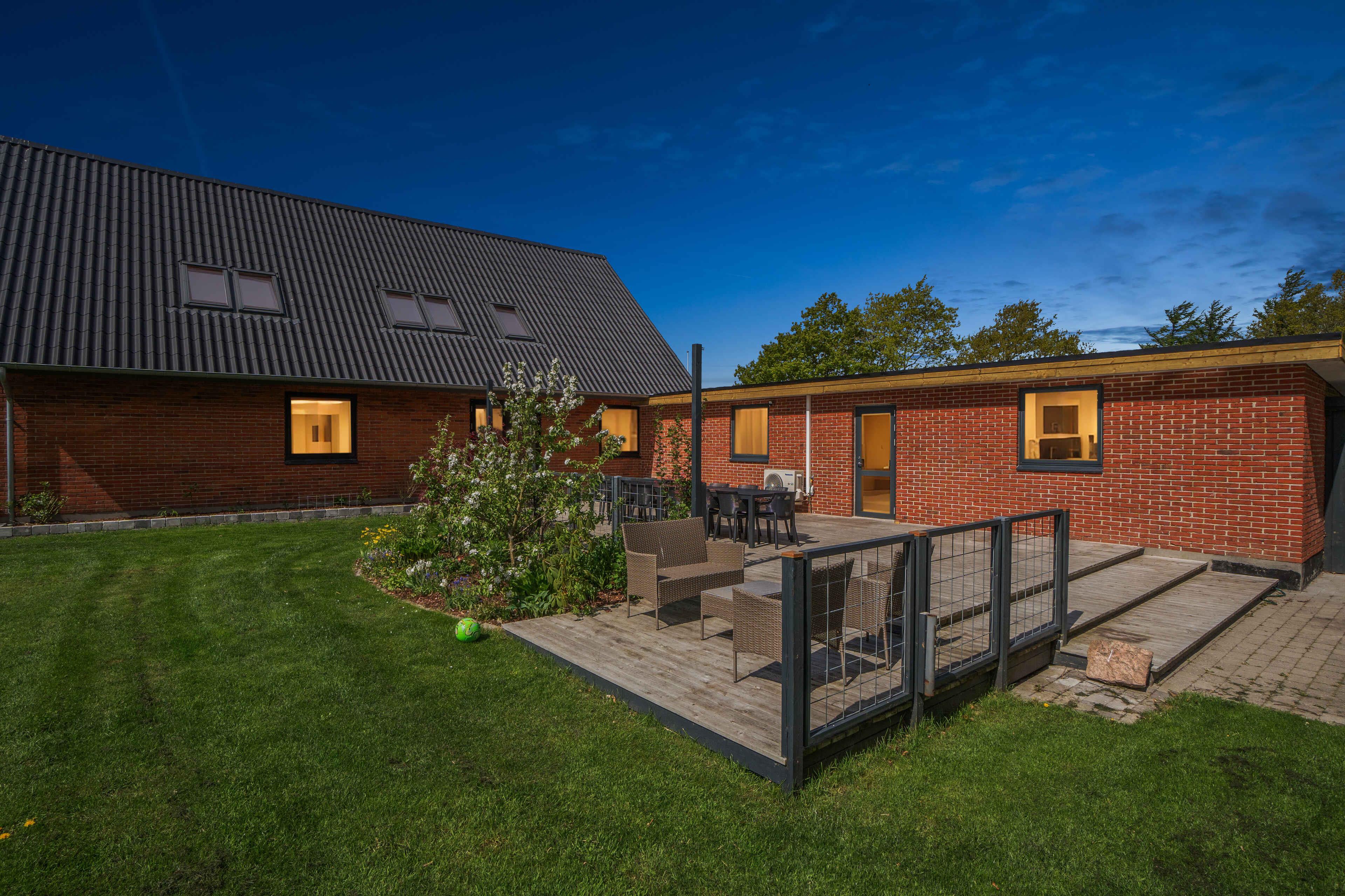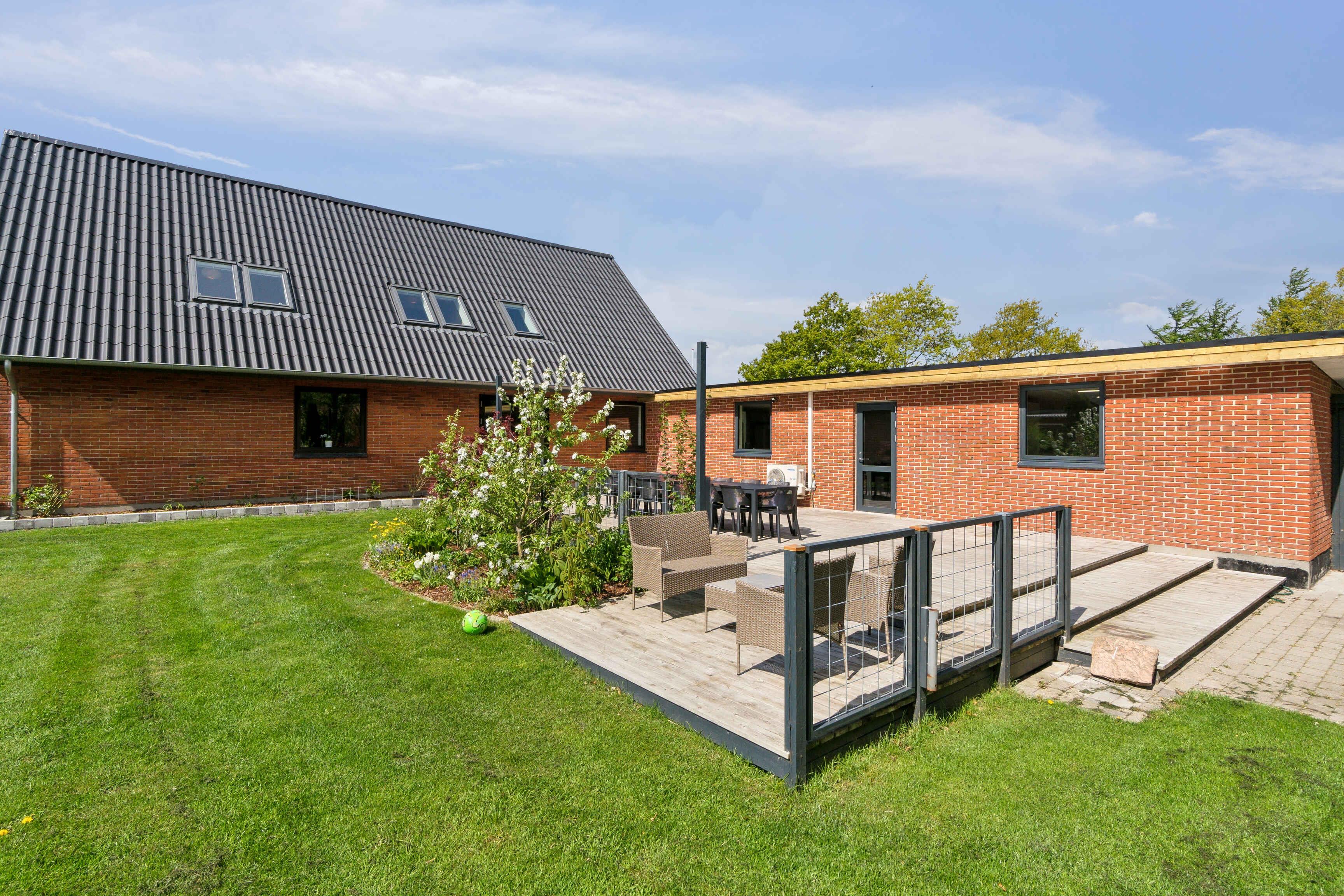 Rummeligt og charmerende feriehus i Hvalpsund med stor terrasse, legeplads og tæt på strand og golf.