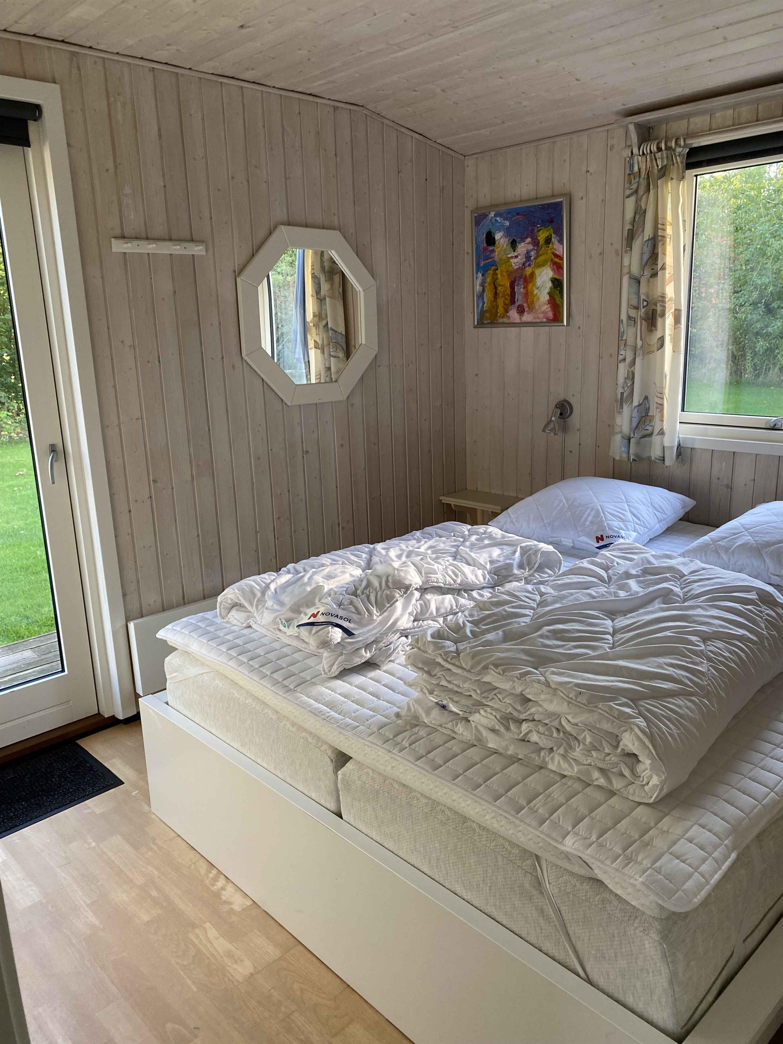 Velkommen til dette sommerhus på 104 m², indrettet med 3 soveværelser og plads til 7 personer. Stueplanet byder på et åbent opholdsrum med spiseplads og siddeafdeling, der indbyder til samvær. Fordeling af soverum: Soverum 1 indeholder dobbeltseng 160x200 samt weekendseng til barn med madras 70x140. Soverum 2 indeholder dobbelt sovesofa (udslået mål 140x200, der findes topmadras i magasinet), samt høj køjeseng 90x200. Soverum 3 indeholder kontinentalseng 180x200. Der er dyner og puder til 7 personer, dog ingen babydyne/babypude. Køkkenet er fuldt udstyret til madlavning og fælles måltider, med stort køleskab på 362 liter samt lille skabsfryser. Alt i udstyr. Børnevenligt udendørsområde byder på bålsted, trampolin, sandkasse med legetøj, legestativ med gynger og rutschebane samt balancebane. Indenfor findes puslebord, babybadekar, højstol og legetøj til de mindste samt masser af brætspil. Kun 150 meter fra døren ligger en børnevenlig badestrand med lavvandede områder og blødt sand. Der er badebro. I gåafstand findes roligt skovområde med stier til cykling og gåture. Ved Hvalpsund havn (1500m) kan lejes kajakker, paddle boards og cykler i sommersæsonen. Havnens store og veludstyrede legeplads kan benyttes gratis året rundt. På den nærtliggende campingplads Hvalpsund Familie Camping tilbydes udlejning af gennemsigtige kajakker til sightseeing af livet under vandoverfladen om sommeren. Der findes også et Naturrum til gratis afbenyttelse med waders, og forskelligt naturudstyr. Naturen indbyder til fuglekiggeri samt sankning af østers og blåmuslinger. Der kan købes fiskekort til nærliggende put&take sø i campingpladsens butik hvor der også kan købes is. Dagskort til legeplads med hoppepude og til udendørs pool kan også tilkøbes på campingpladsen. Hyggelige caféer og gårdbutikker tilbyder lokale specialiteter. Området byder på windsurfing, sejllads og fiskeri. Cykelruter fører til en 18-hullers golfbane (9-huls pay and play) og farverige loppemarkeder. Naturen skifter med årstiderne og giver oplevelser med fugle- og dyreliv. Familier sætter pris på trygge omgivelser året rundt. Sommerhuset kan lejes hele året og er ideelt for familier og venner, der søger både aktivitet og ro. Book en weekend eller længere ferie og oplev områdets muligheder. Obs, udlejes ikke til erhversmæssigt brug.
