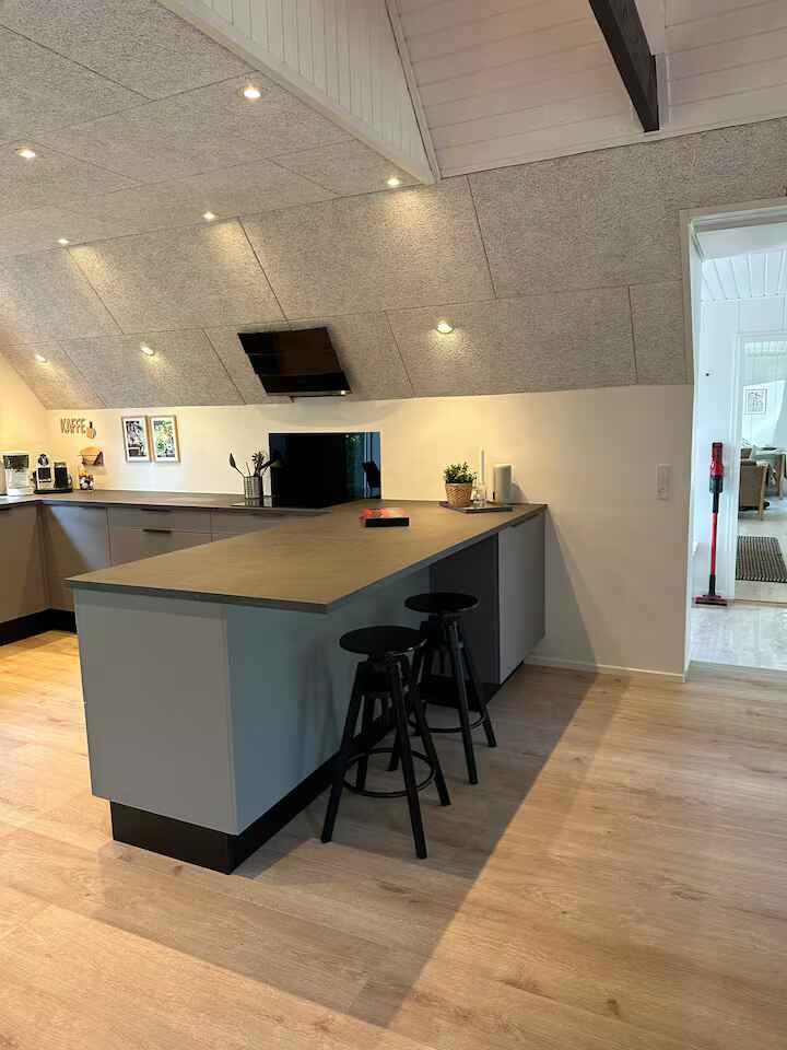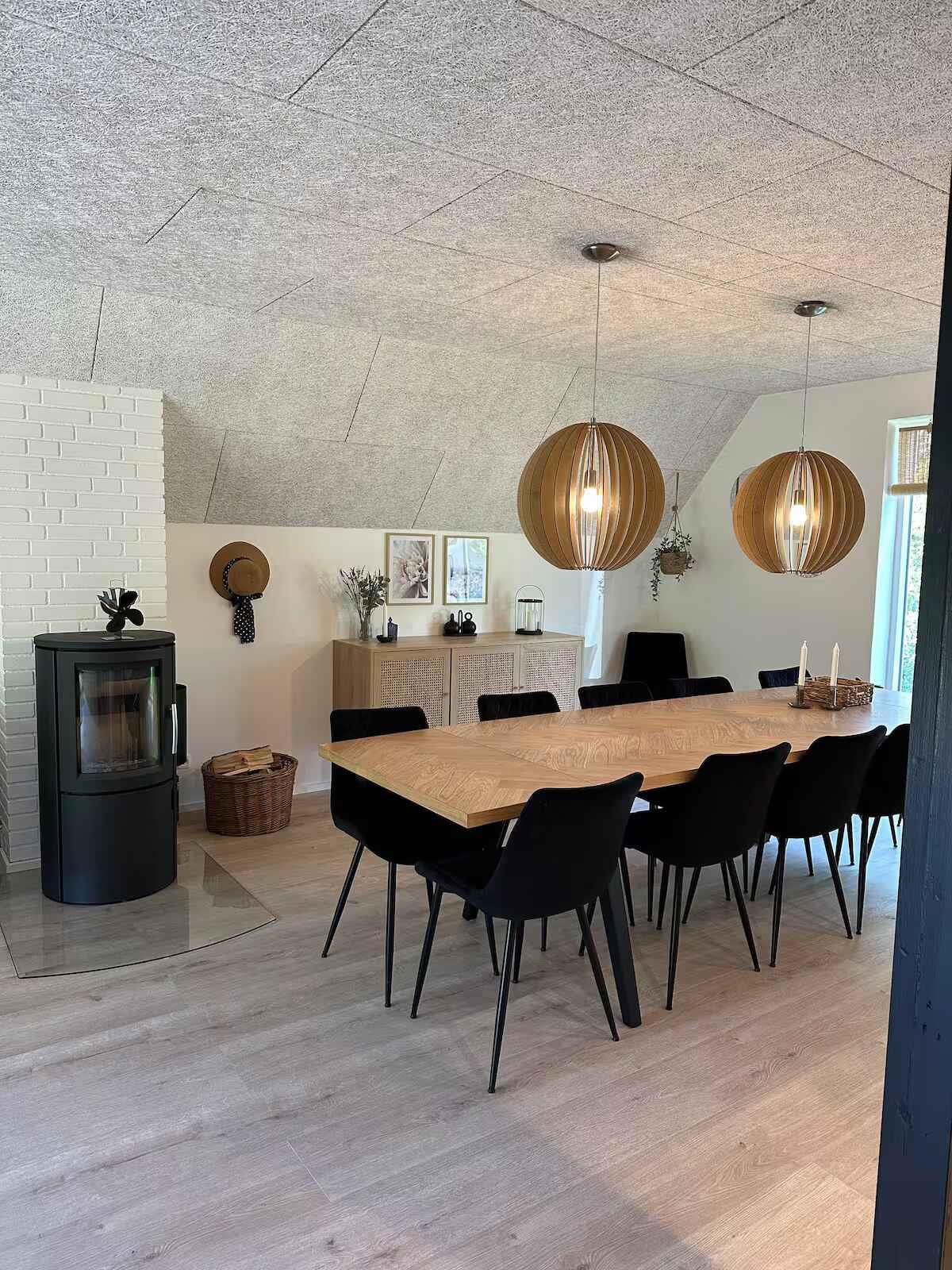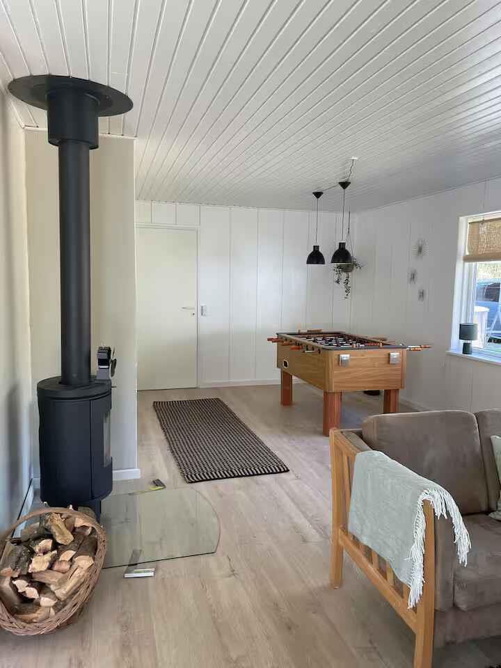 Dette rummelige sommerhus på 198 m² danner en komfortabel ramme om ferier for op til 12 gæster. Med fem soveværelser er der plads til både familie og venner, og planløsningen gør det let at samles uden at gå på kompromis med privatliv. Der er 4 soveværelser i huset og et soveværelse i anneks. Opholdsrummet er husets naturlige samlingspunkt med god plads til fælles måltider og afslapning. Brændeovnen skaber stemning på kølige aftener, mens varmepumpen sikrer en behagelig temperatur året rundt. Internet gør det nemt at streame film eller ordne praktiske ting under opholdet. Udendørs er der gode rammer for ferielivet. Terrasserne indbyder til lange aftener i det fri, og efter en dag ved vandet kan I slappe af i vildmarksbadet (mod betaling). Elbilen kan lades ved huset, og der er kun 500 meter til kysten. Området ved Limfjorden er kendt for sit rolige vand og børnevenlige strande. Her er gode muligheder for badning, kajak, paddleboard og fiskeri. Små havnebyer byder på is, lokale spisesteder og maritim stemning, mens stier langs kysten giver fine ruter til gå- og cykelture med udsigt over fjorden. I det varierede Himmerland finder I både skove, åbne landskaber og hyggelige udflugtsmål. Golfbaner, legeoplevelser for børn og små attraktioner ligger inden for overskuelig afstand. Det giver jer frihed til at kombinere rolige dage ved vandet med aktive oplevelser i naturen. Udlejes ikke til ungdomsgrupper.