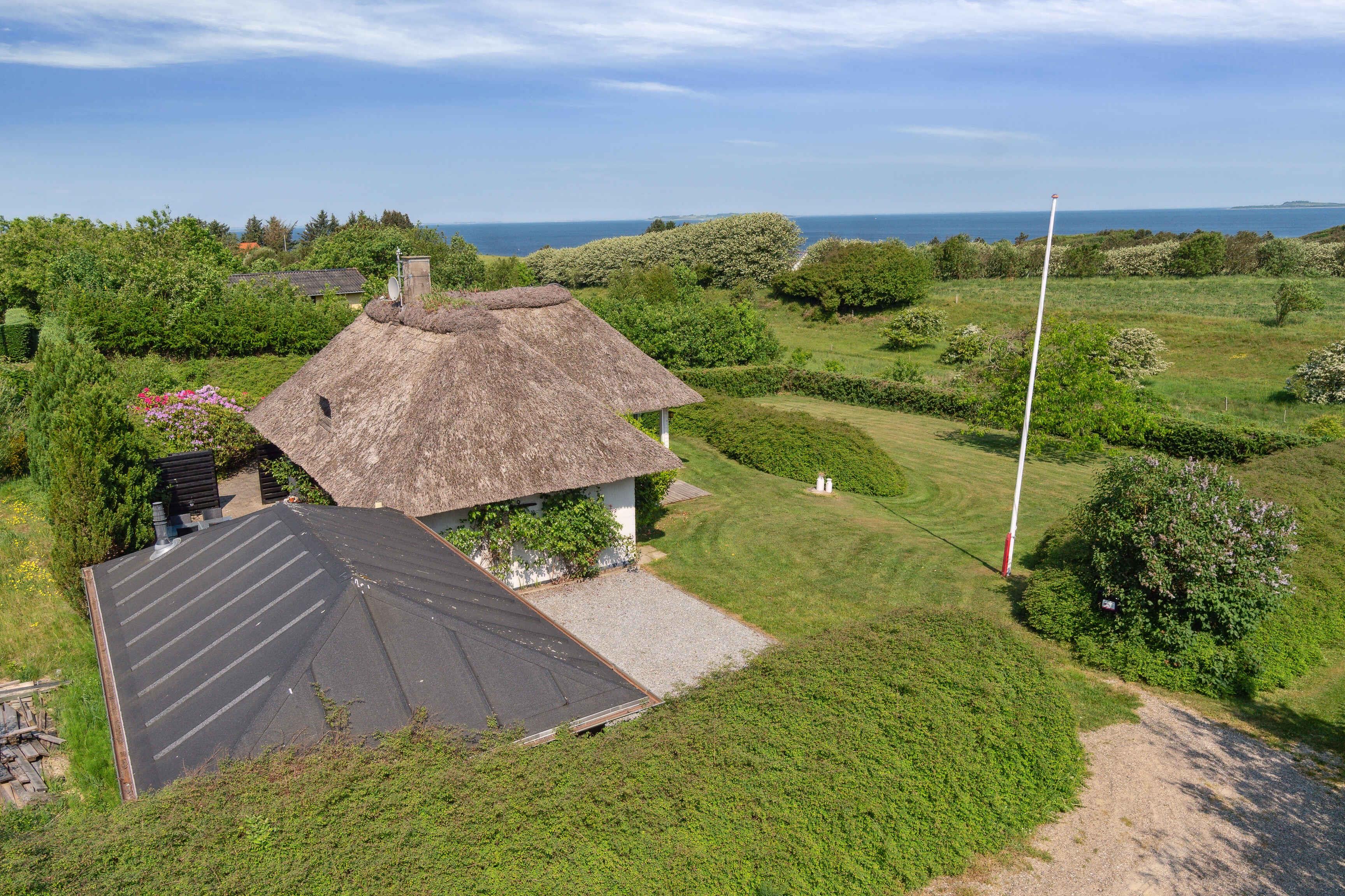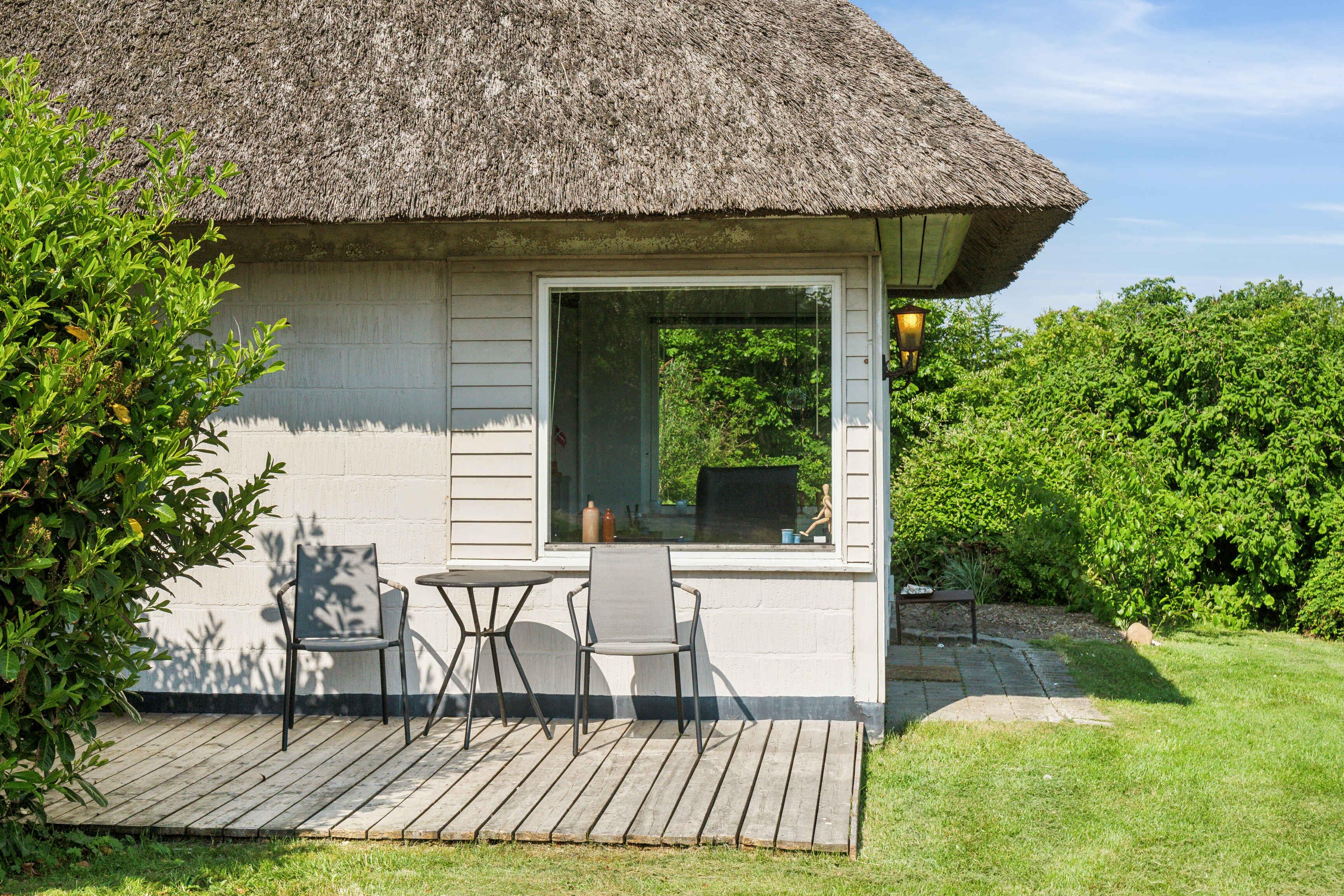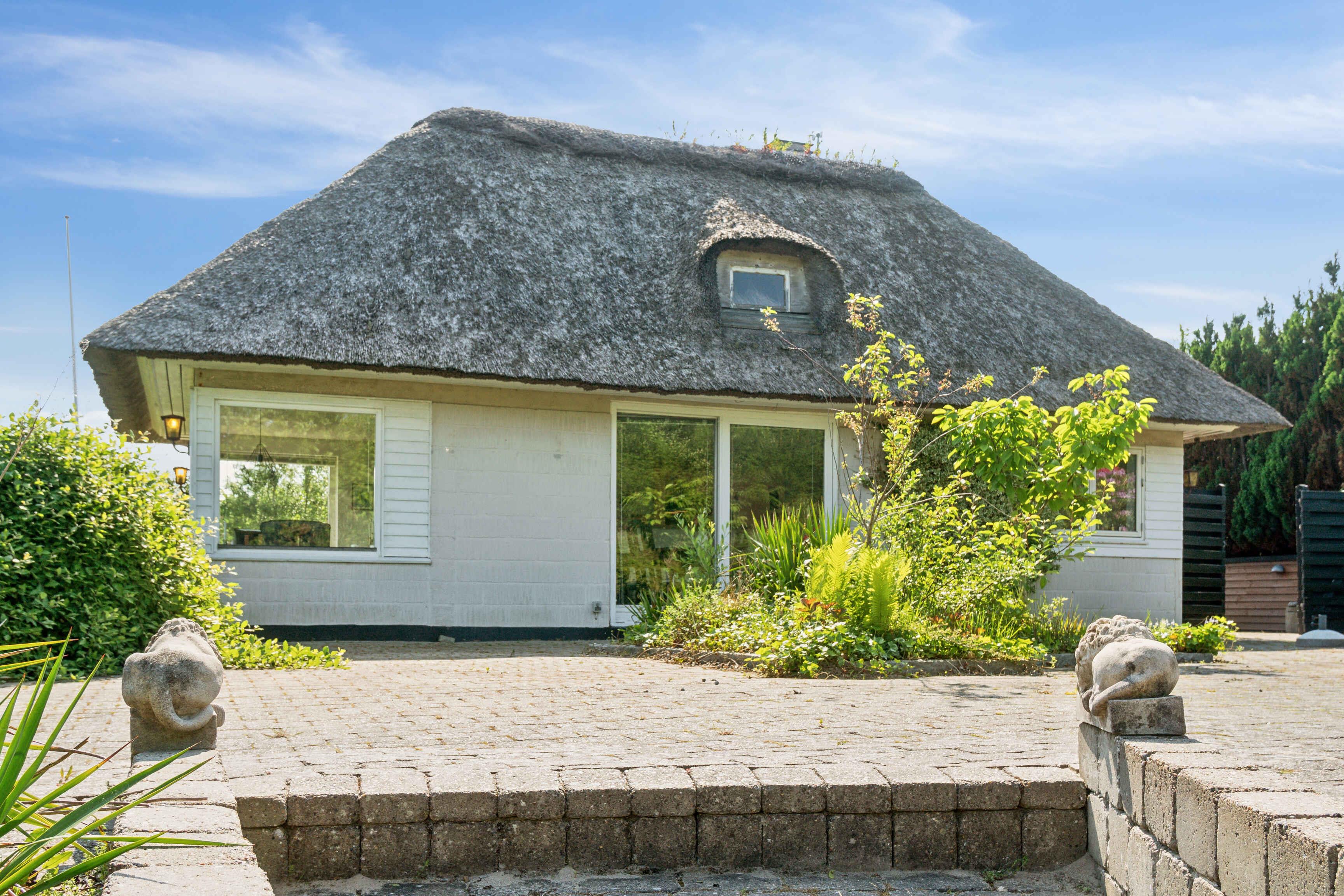 Charmerende stråtækt feriehus i idylliske omgivelser ved Ertebølle med strand og natur lige uden for døren.