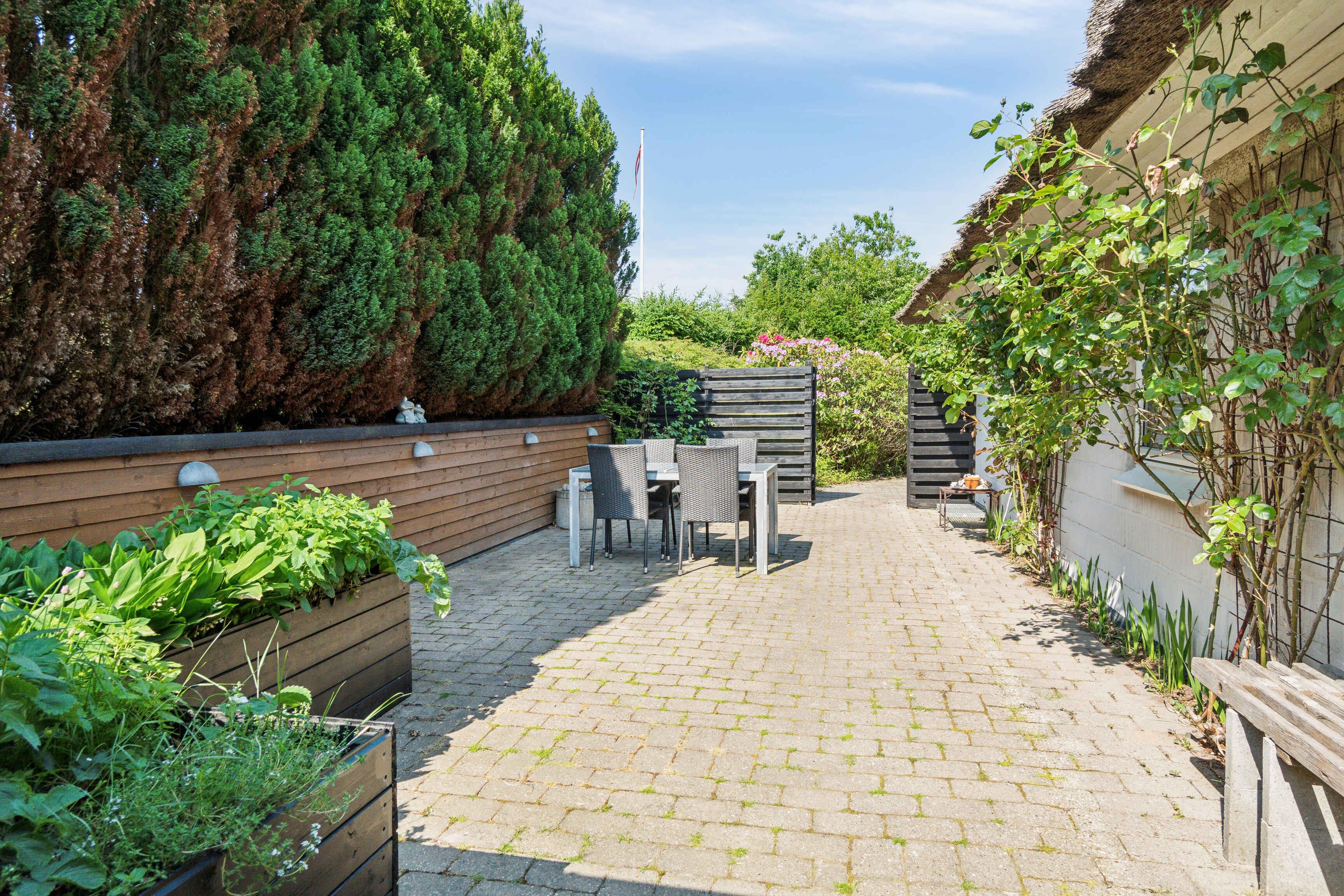 Dette charmerende stråtækte feriehus præsenterer en idyllisk tilbagetrukket oase i det smukke Ertebølle-landskab, med en beliggenhed der grænser op til fredede naturarealer. Med sin enestående placering, indbyder huset til en uforglemmelig ferieoplevelse, hvor roen og skønheden i naturen går hånd i hånd. Fra det øjeblik du ankommer, bliver du mødt af en følelse af ro og fred, da huset ligger ugeneret og omgivet af den naturlige skønhed, der kendetegner området. Et stenkast væk finder du stranden, hvor du kan nyde stille gåture langs kysten eller fordybe dig i det forfriskende havvand. Fra haven kan du nyde betagende udsigter over fjorden, der tilføjer en ekstra dimension til dit ophold. Terrasser i forskellige niveauer og en hyggelig lukket gårdhave giver dig mulighed for at nyde udendørslivet i fulde drag, uanset om du ønsker at grille under åben himmel eller bare slappe af med en god bog og en kop kaffe. Indendørs byder huset på en rummelig opholdsstue med en elegant spiseafdeling, hvor store vinduespartier åbner op for lyset og naturens skiftende farver. Fra stuen er der direkte adgang til terrasserne og haven, hvilket skaber en sømløs forbindelse mellem indendørs og udendørs rum. Køkkenet, der er adskilt fra stuen af en halvvæg, er veludstyret med alt det nødvendige for at tilberede lækre måltider lavet af lokale råvarer. Et moderne badeværelse med gulvvarme tilbyder komfort og bekvemmelighed, mens de tre hyggelige soveværelser og en lille entré fuldender boligens indretning. En separat bygning rummer et praktisk bryggers med vaskemaskine og tørretumbler, hvilket gør det nemt at holde orden under dit ophold. Dette feriehus er det ideelle tilflugtssted for dem, der søger både fred og afslapning samt dem, der ønsker at udforske og være aktive i naturen. Uanset om du foretrækker at slentre langs de nærliggende stier, tage på opdagelse i det omkringliggende landskab eller bare sætte dig til rette i haven og lade tankerne flyde, vil dette feriehus fortrylle dig med sin autentiske charme og skønhed.