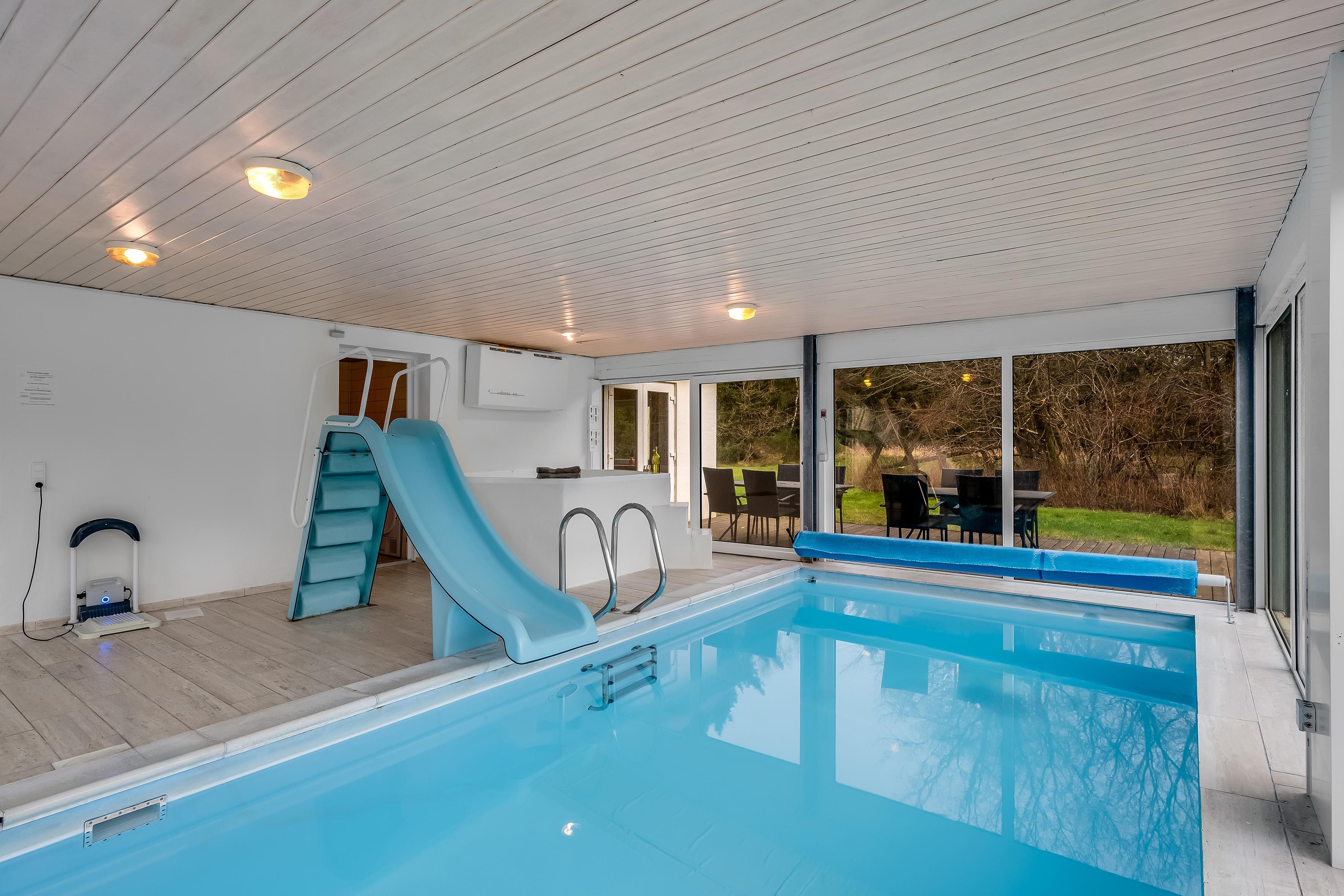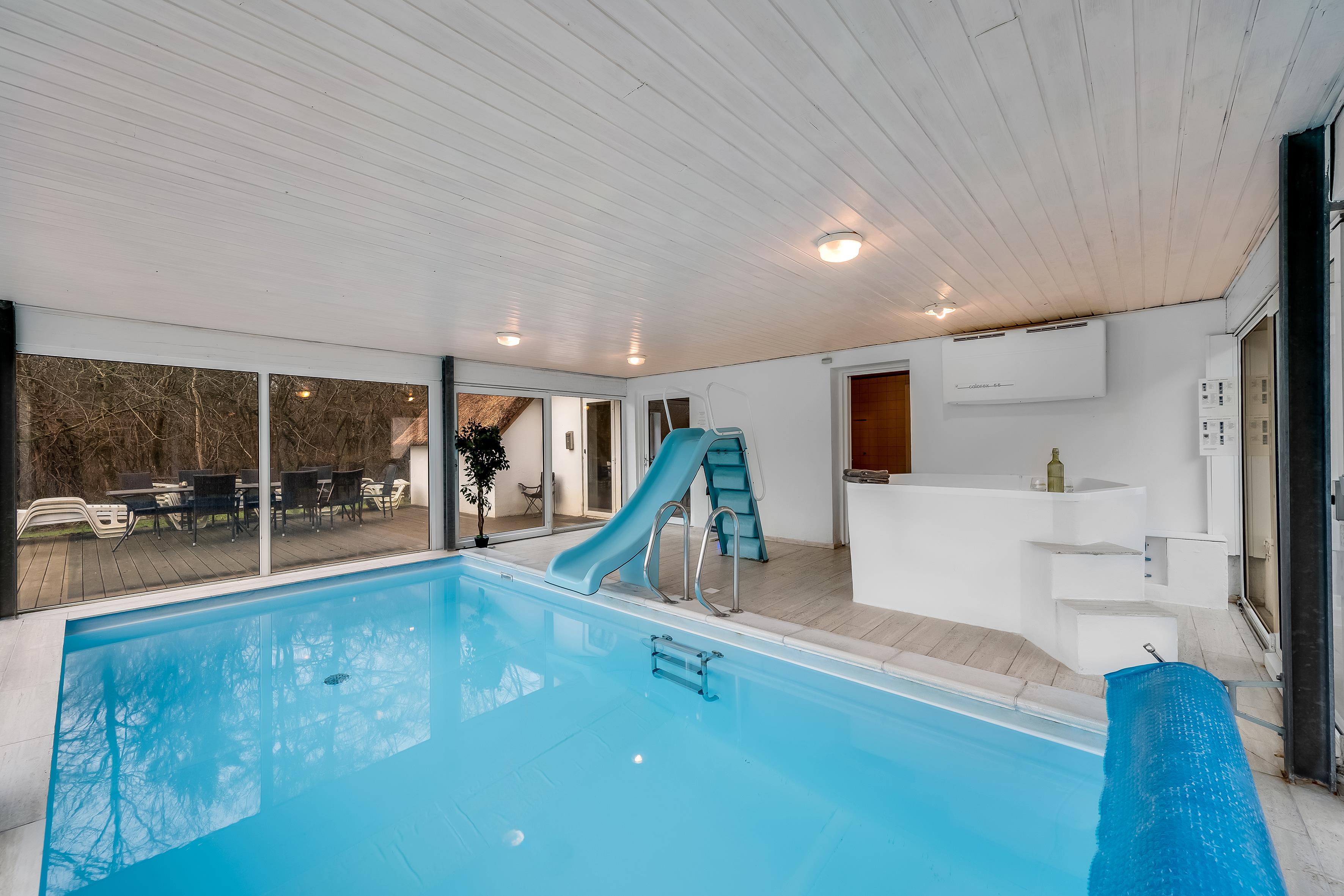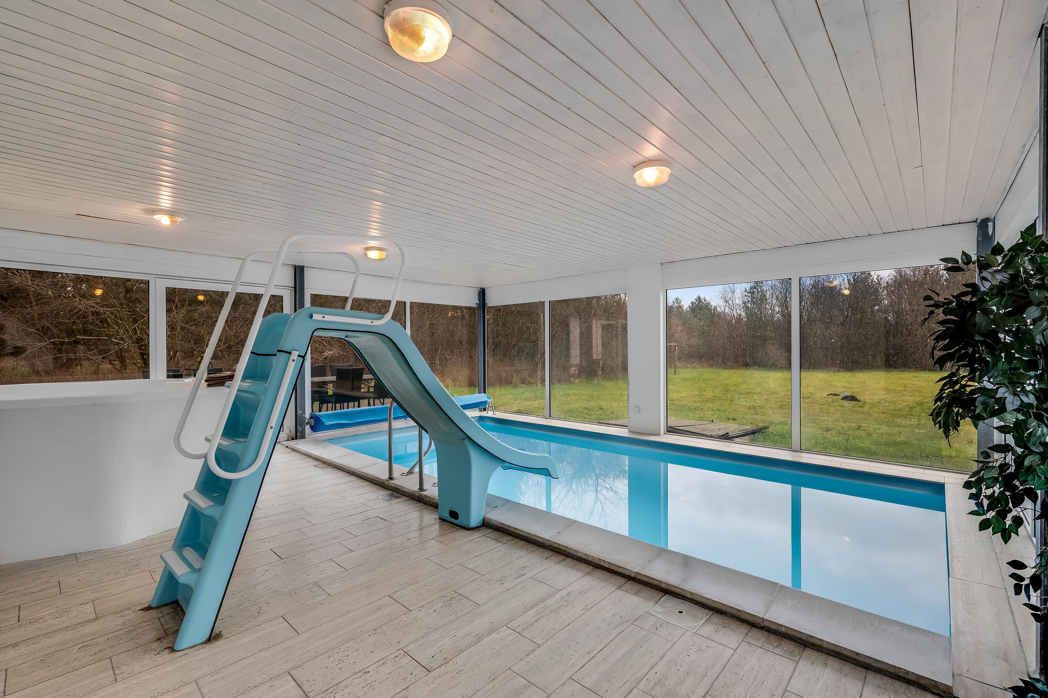 Udenfor kan du nyde en stor terrasse, hvor du kan slappe af og nyde solen. Der er også en grill til rådighed, perfekt til sommerfester og udendørs måltider. Børnene vil elske legepladsen med gynger og sandkasse, mens de voksne kan slappe af ved poolen, der også har en vandrutsjebane for ekstra sjov. For dem, der ønsker at forkæle sig selv, er der et indendørs spa, der kan rumme op til syv personer, samt en sauna til afslapning efter en lang dag.