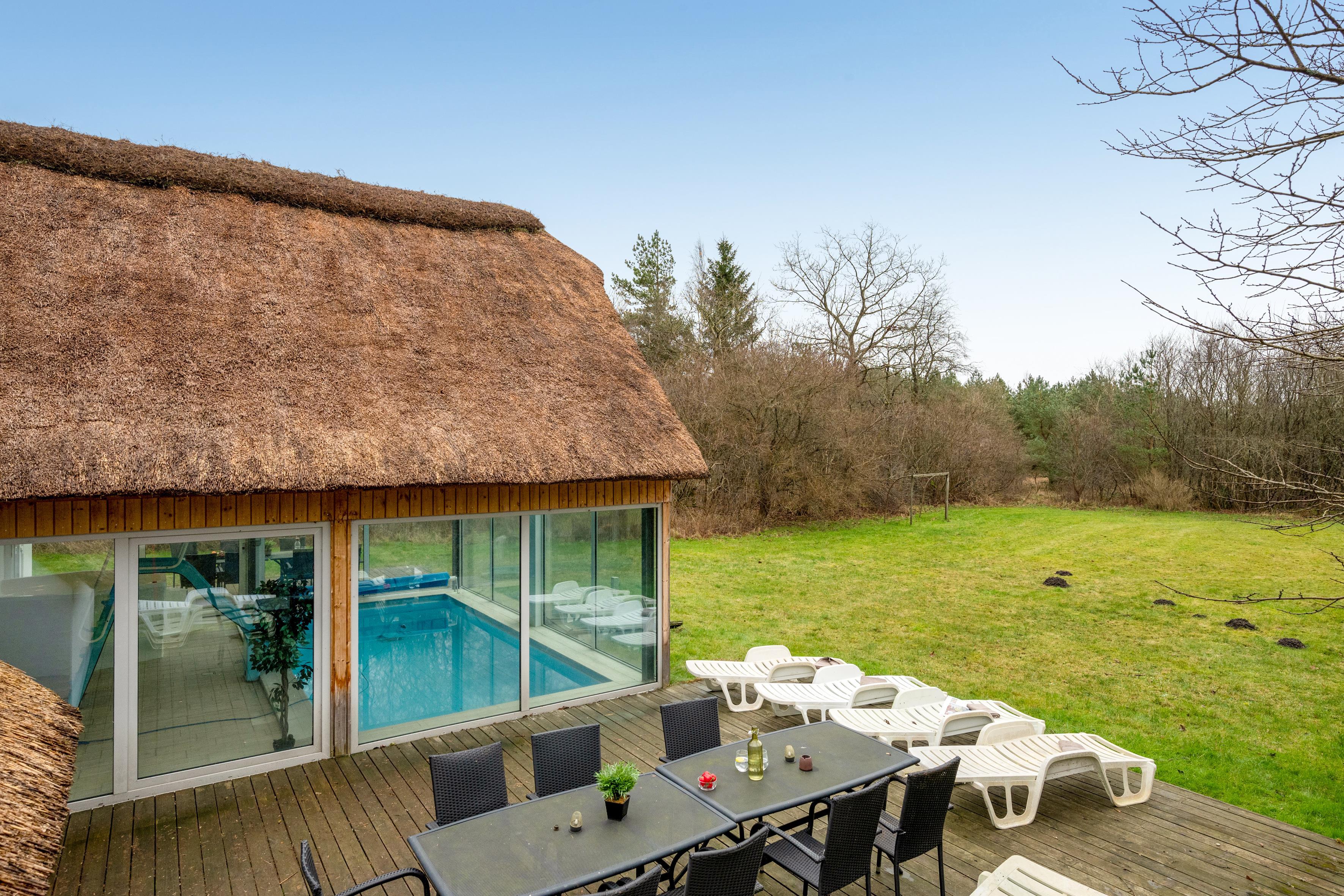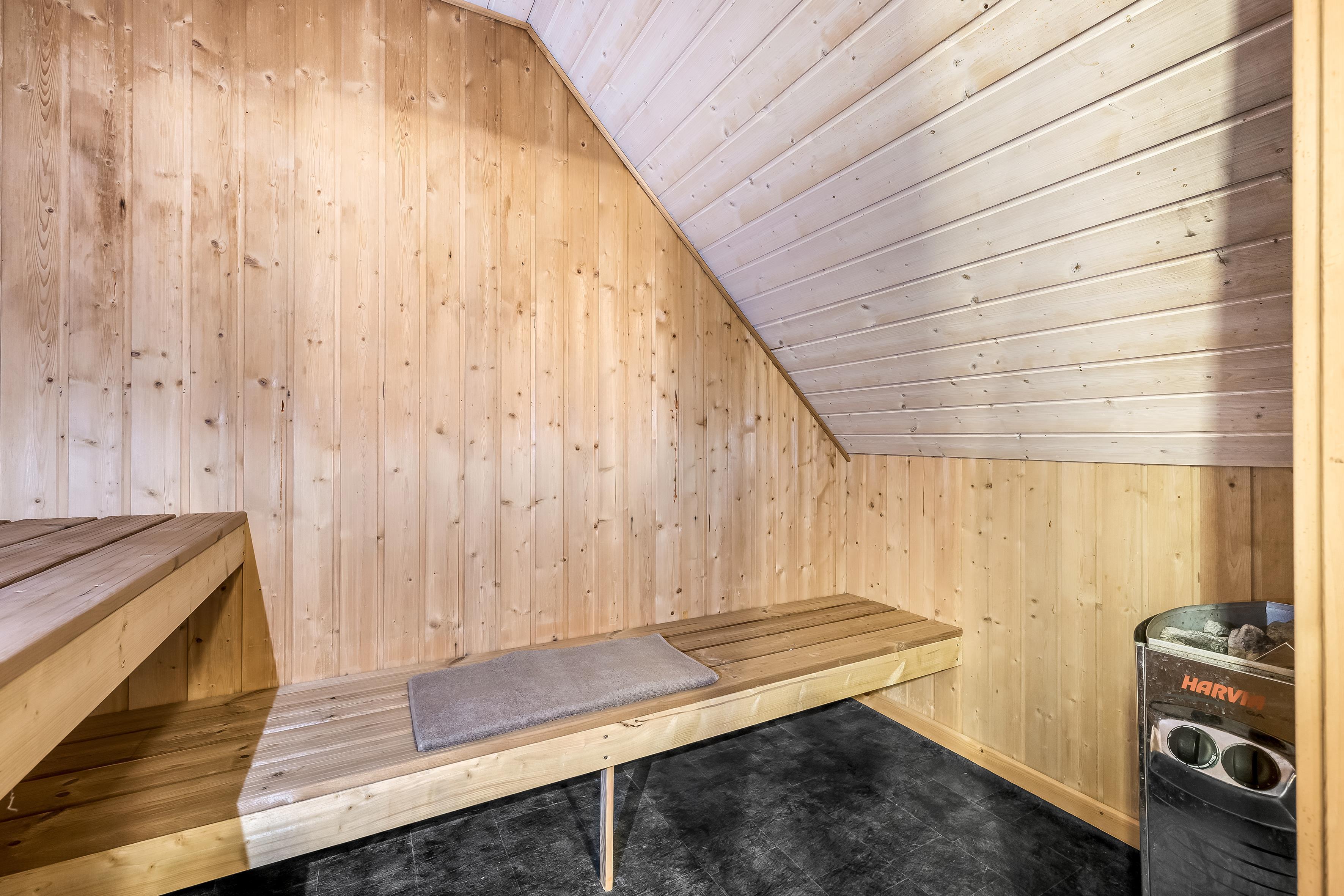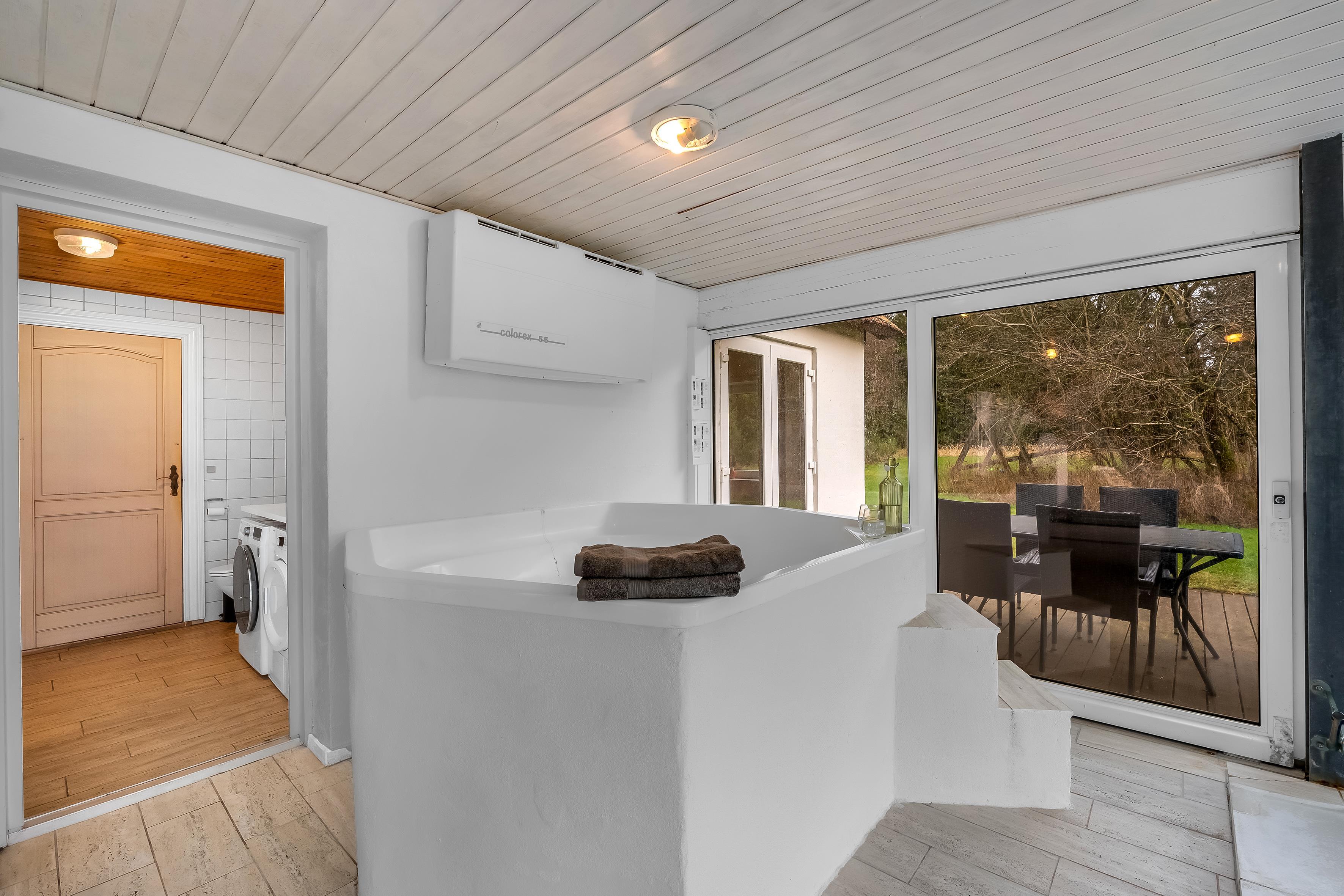 Udenfor kan du nyde en stor terrasse, hvor du kan slappe af og nyde solen. Der er også en grill til rådighed, perfekt til sommerfester og udendørs måltider. Børnene vil elske legepladsen med gynger og sandkasse, mens de voksne kan slappe af ved poolen, der også har en vandrutsjebane for ekstra sjov. For dem, der ønsker at forkæle sig selv, er der et indendørs spa, der kan rumme op til syv personer, samt en sauna til afslapning efter en lang dag.