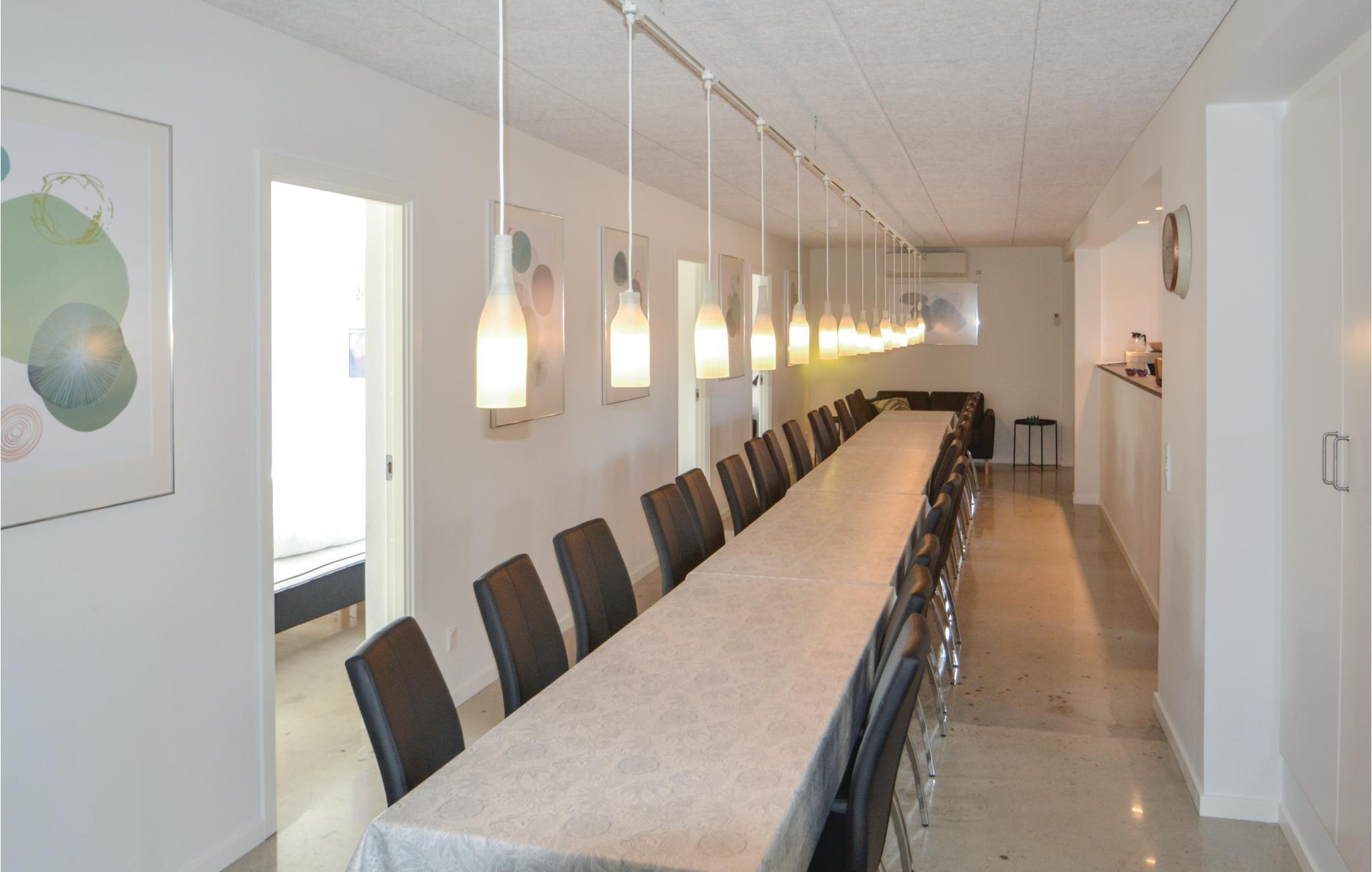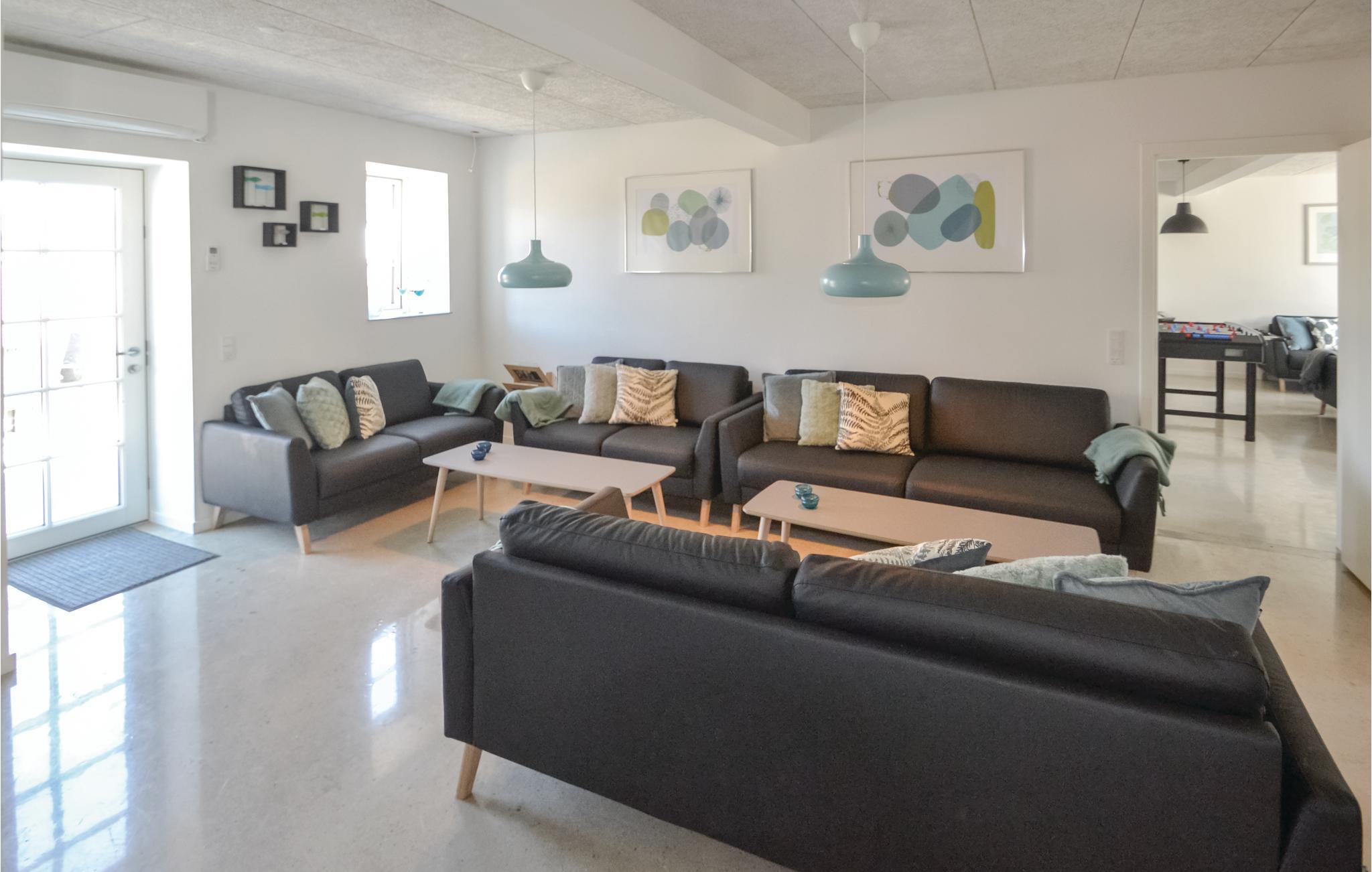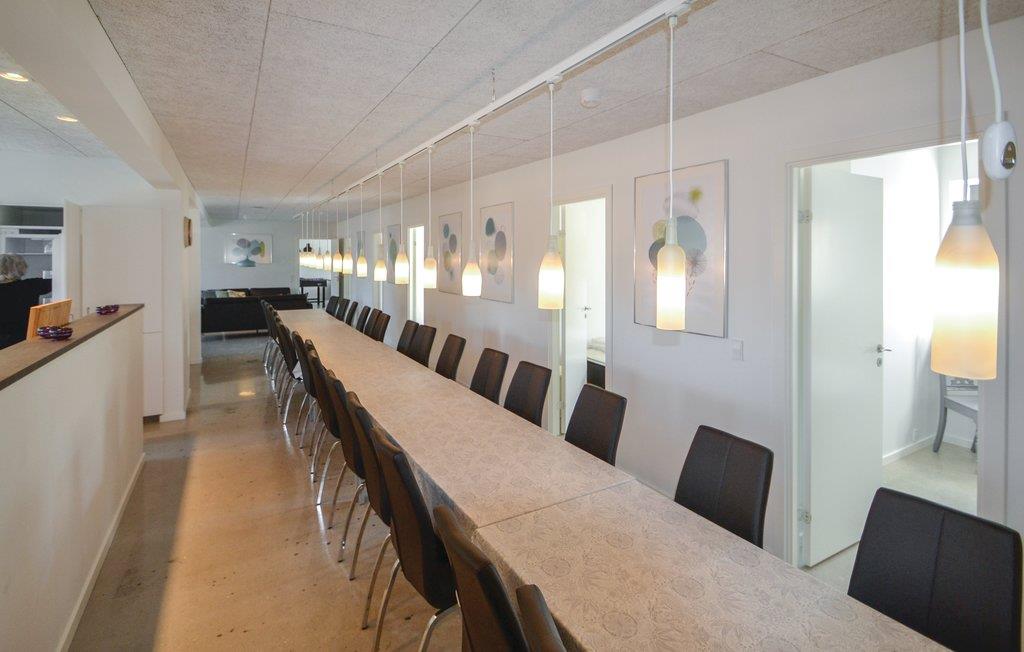 Her er der plads til den helt store familie eller dem der gerne vil fejre en festlig begivenhed. Huset er bl.a. indrettet med et stort, moderne køkken, der står i direkte forbindelse med en dejlig spisestue. I aktivitetsrummet kan I hygge jer med et spil pool. På terrassen kan I privat og uforstyrret nyde solen og se børnene lege på plænen.