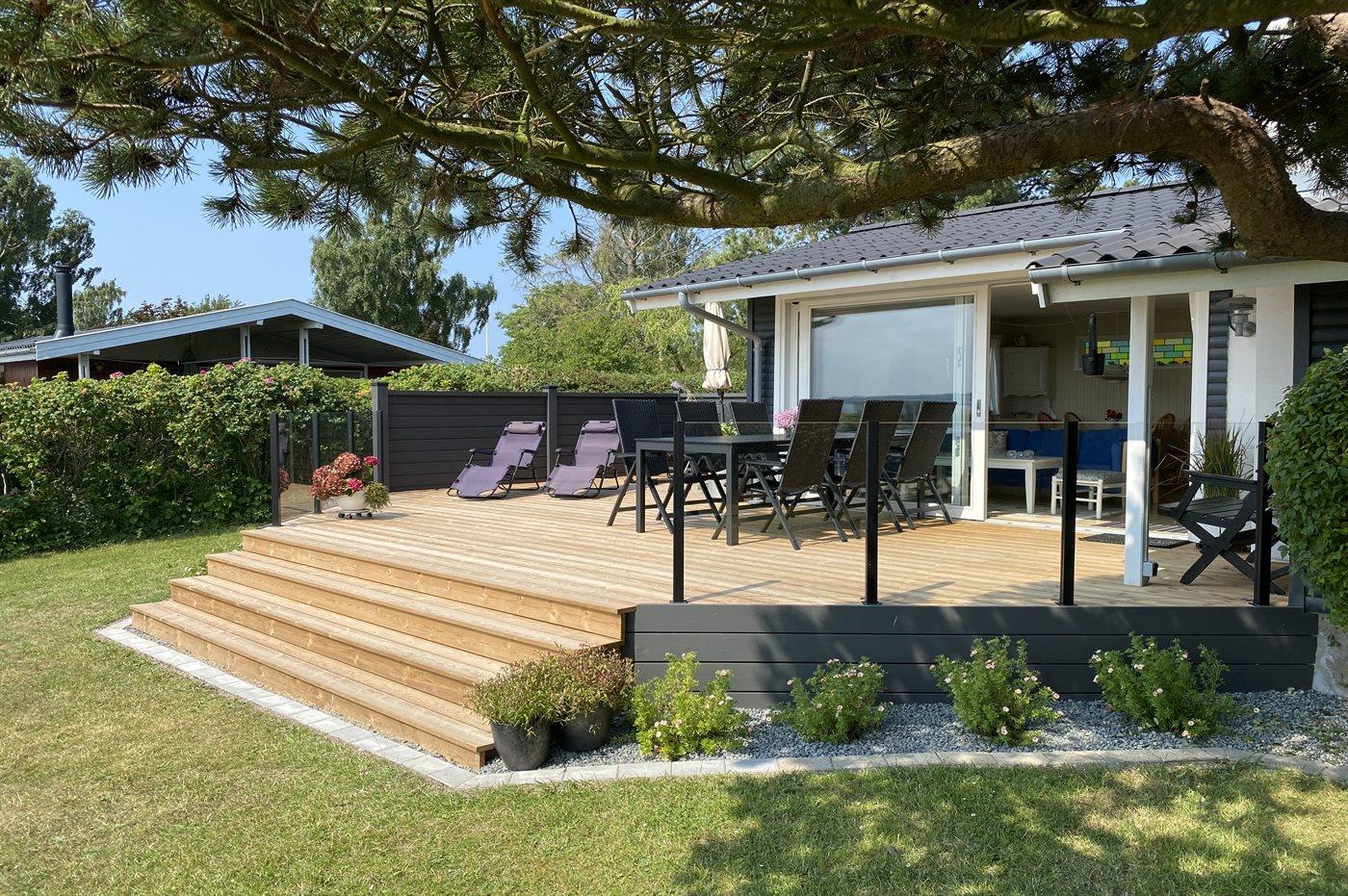 Hyggeligt sommerhus på Fejø med havudsigt og kort afstand til vandet, ideelt til en afslappende ferie.