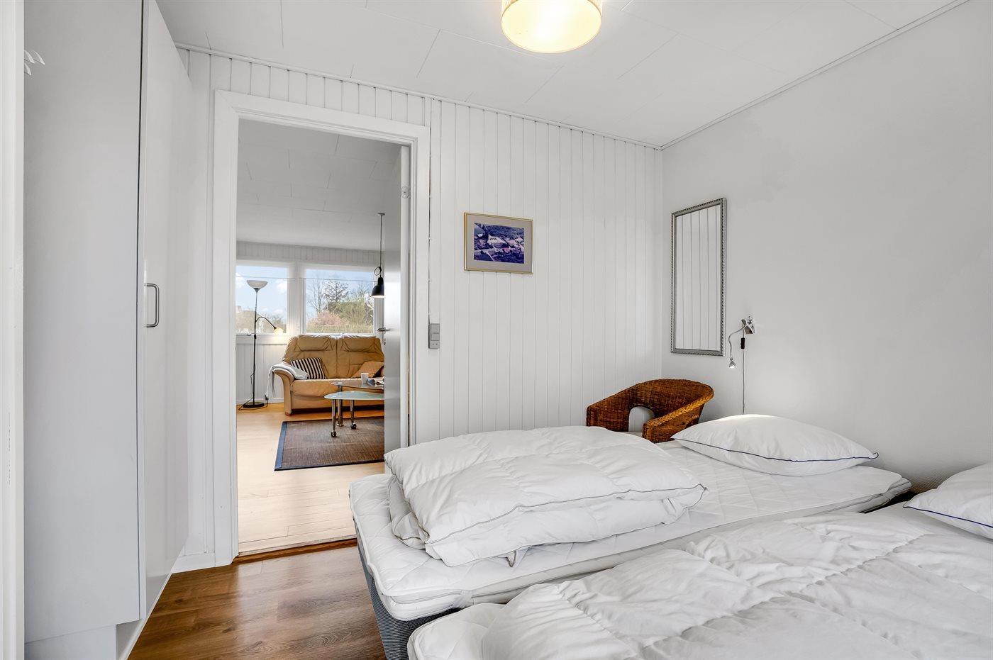 Der er i alt 2 soveværelser. Sovepladserne fordeler sig på: 2 sovepladser i dobbeltseng. 2 sovepladser i enkeltsenge.