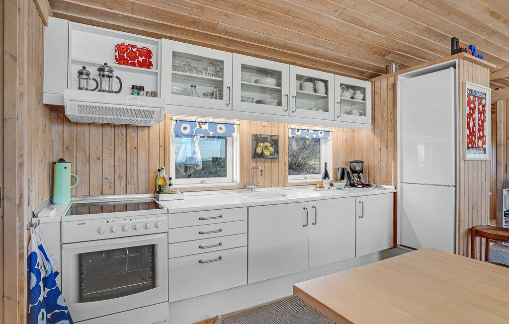 Der venter jer en helt vidunderlig placering med dette hus, som giver jer frit udsyn til den smukke natur, der kendetegner Helgenæs. Her kommer I til at bo med kort afstand til Fejrup Strand, som I kan tage små afstikkere til, nårsomhelst I føler for det. Huset er lyst og behageligt med dejlige fællesarealer i spisekøkkenet og den fine stue, hvor I kan slappe af, mens ilden buldrer i brændeovnen.