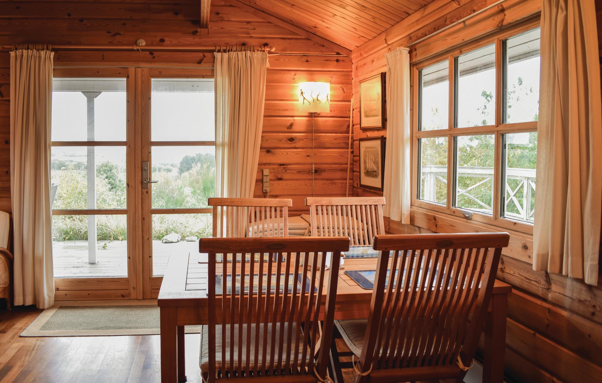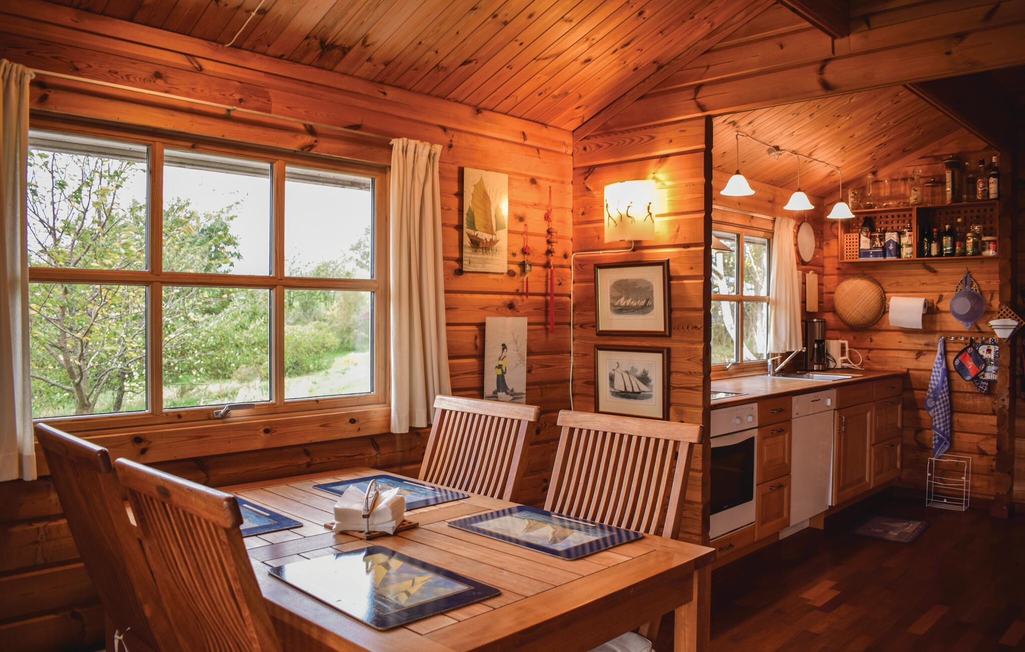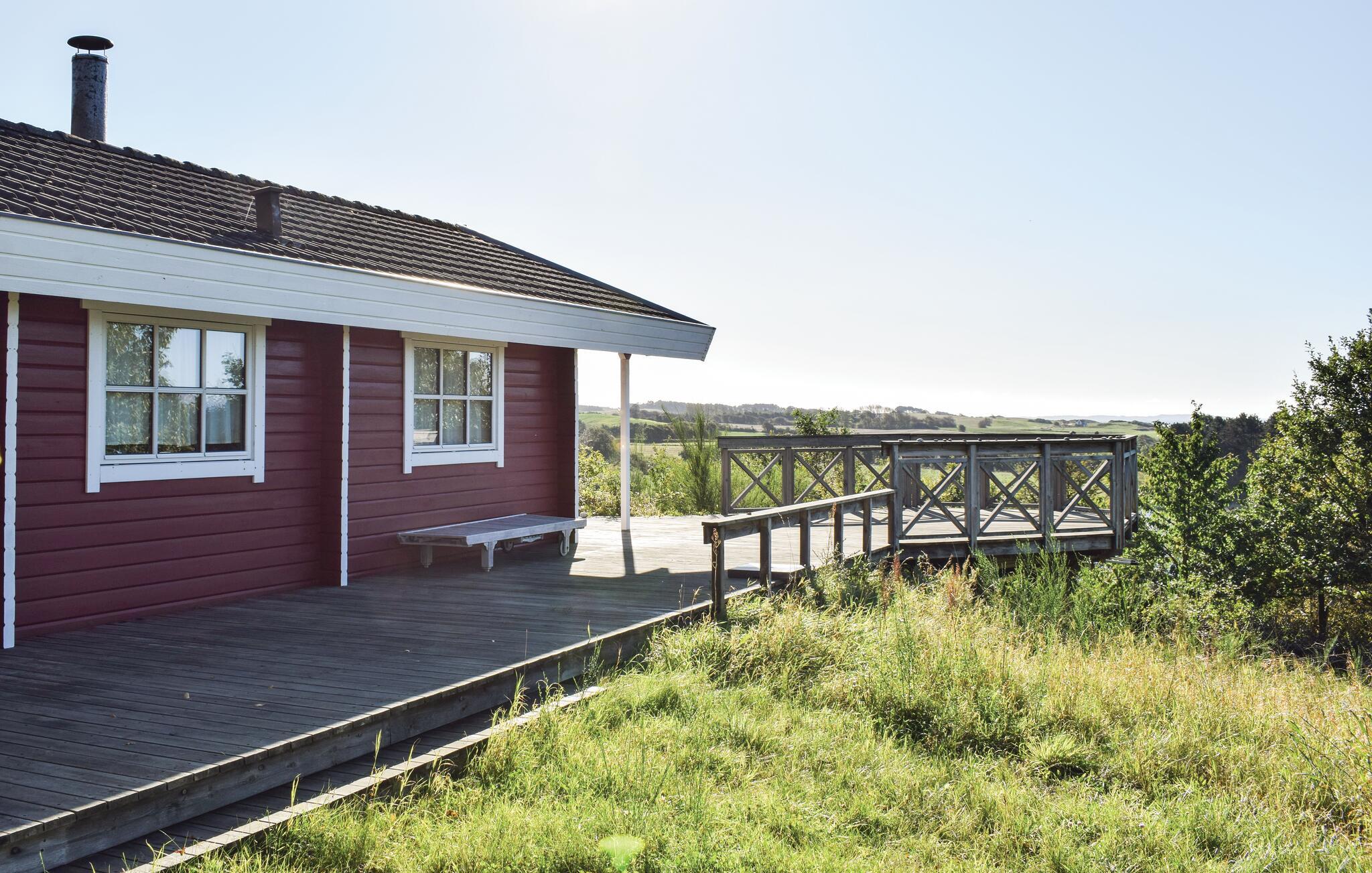 Hyggeligt træhus med smuk naturudsigt ved Fejrup Strand