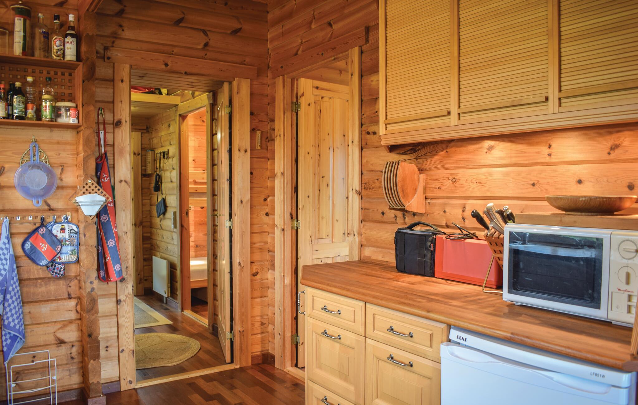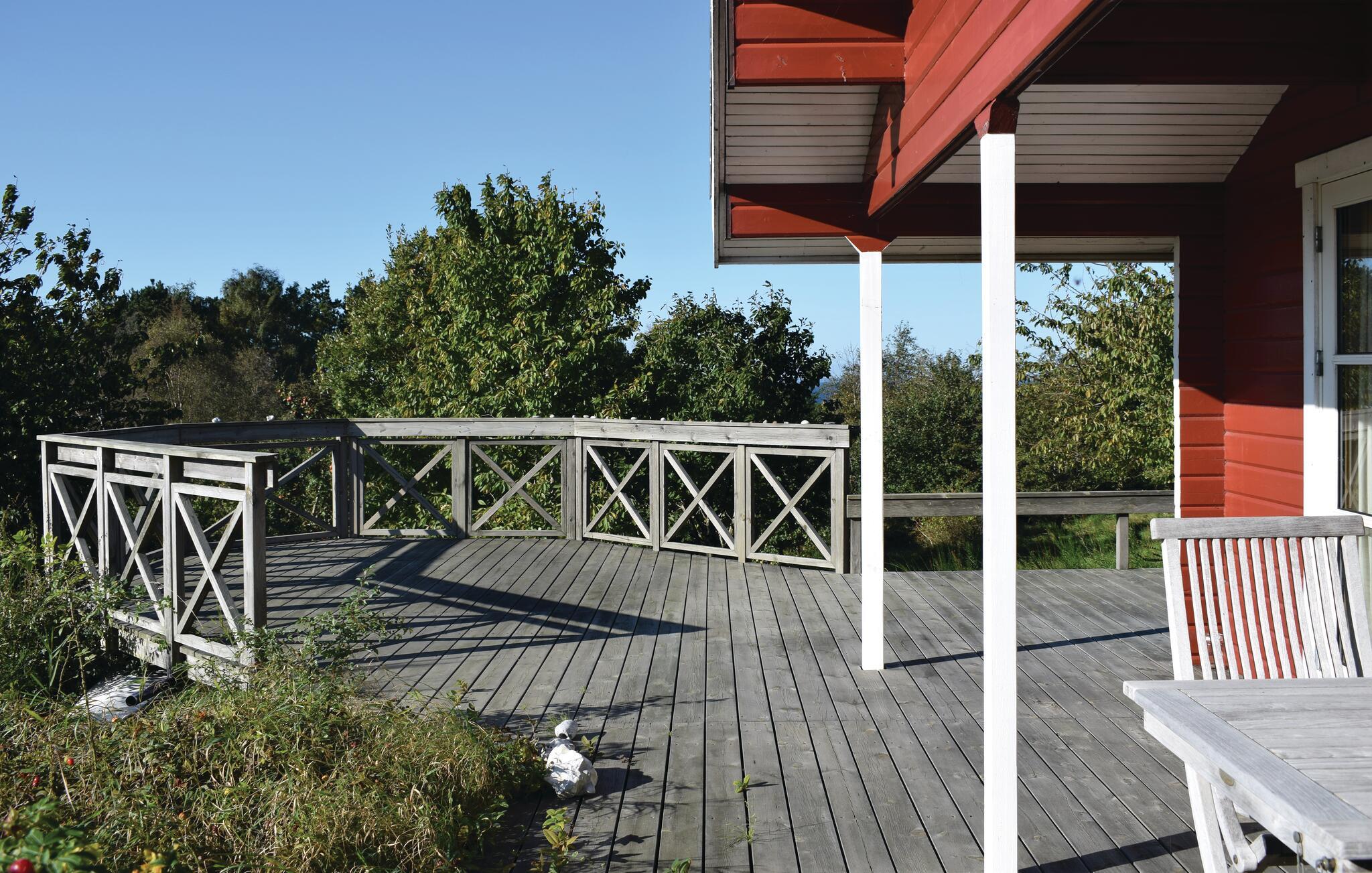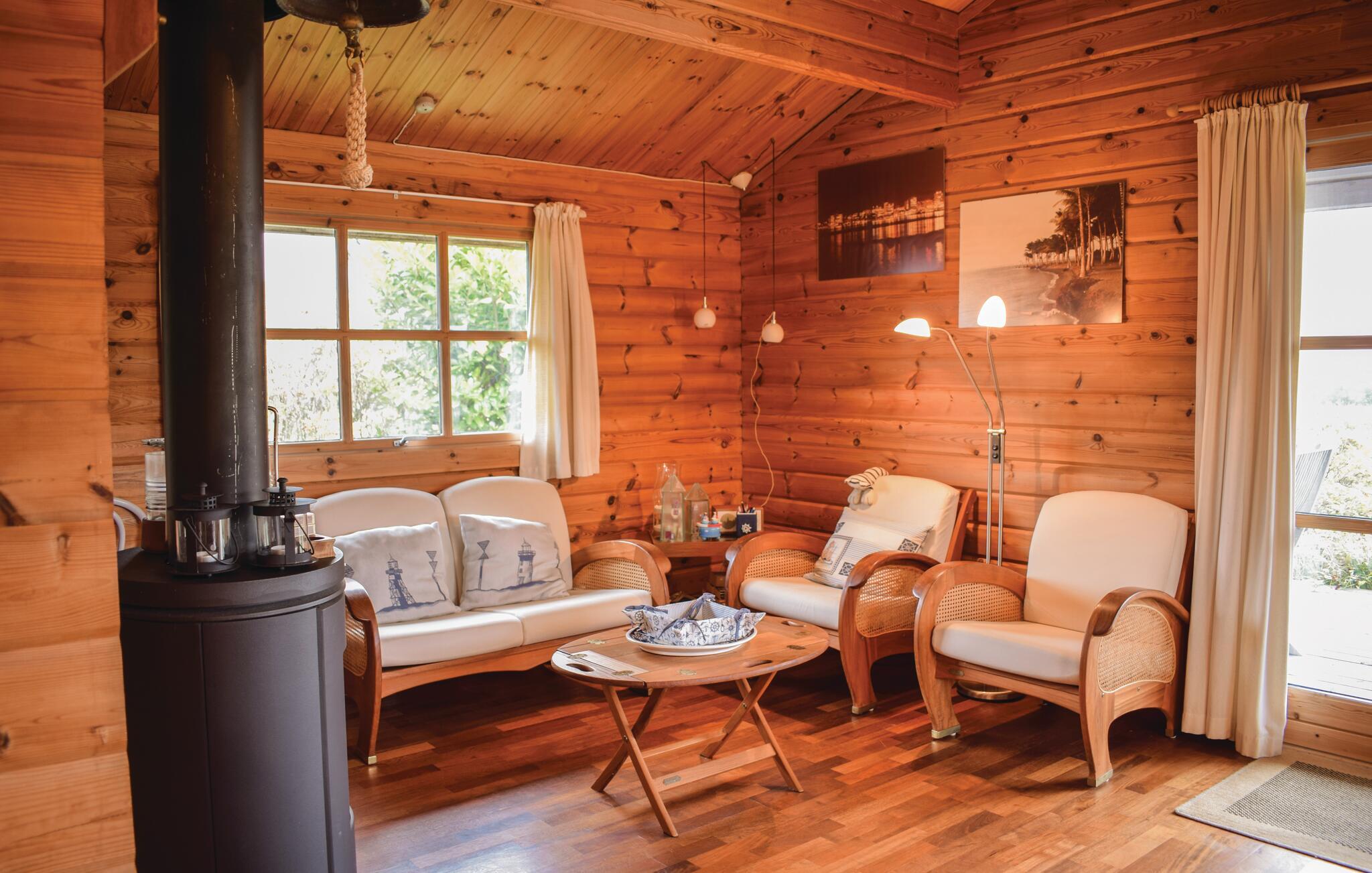 Hyggeligt træhus med smuk naturudsigt ved Fejrup Strand