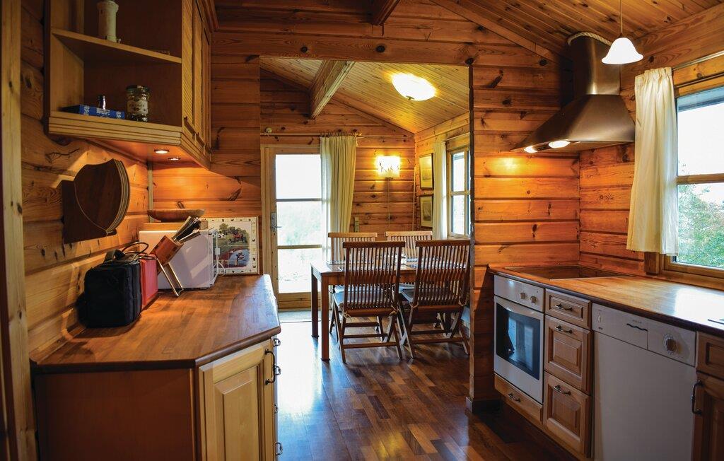 Hyggeligt træhus på Helgenæs med flot naturudsigt og tæt på Fejrup Strand, perfekt til familie eller par.