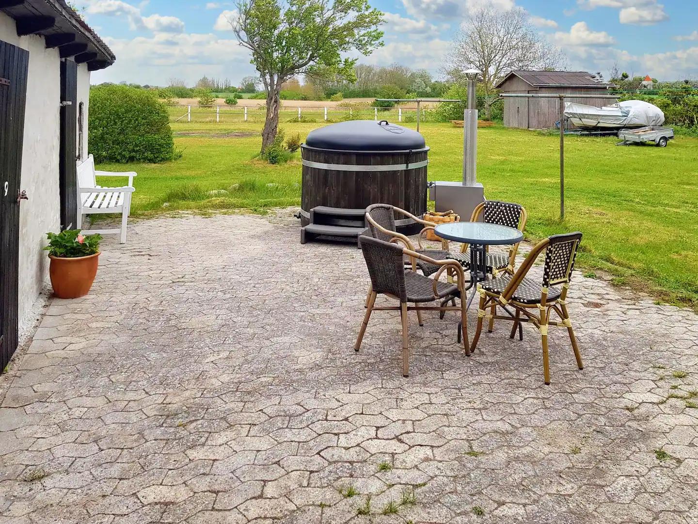 Dette charmerende sommerhus, gemt væk i en idyllisk kystby, er en sand oase af ro og skønhed. Med sine fire rummelige soveværelser og plads til op til ti gæster, er det det perfekte tilflugtssted for enhver, der søger en pause fra hverdagens travlhed. Træd ind i en verden af afslapning og velvære med den udendørs spa, hvor du kan lade dine bekymringer forsvinde i det boblende vand under den åbne himmel. Efter en dag med eventyr og udforskning kan du samles omkring pejsen og dele historier og latter med dine nærmeste. Området omkring sommerhuset er en skattekiste af naturlig skønhed og rekreative muligheder. De nærliggende strande lokker med deres gyldne sand og blide bølger, perfekte til solbadning og sjove vandsportsaktiviteter. Udforsk de omkringliggende skove og opdag maleriske vandrestier og cykelruter, der fører dig gennem betagende landskaber og til skjulte perler. Besøg lokale markeder og butikker for at opleve den unikke kultur og smage på regionale lækkerier. Dette sommerhus og dets omgivelser er mere end bare et sted at bo; de er et sted at skabe minder, forbinde med naturen og genoplade sjælen. En ferie her vil efterlade dig forfrisket, inspireret og fuld af uforglemmelige øjeblikke.