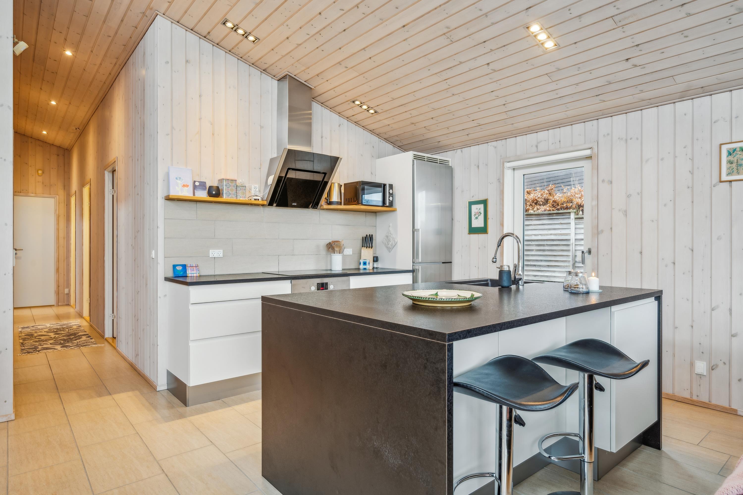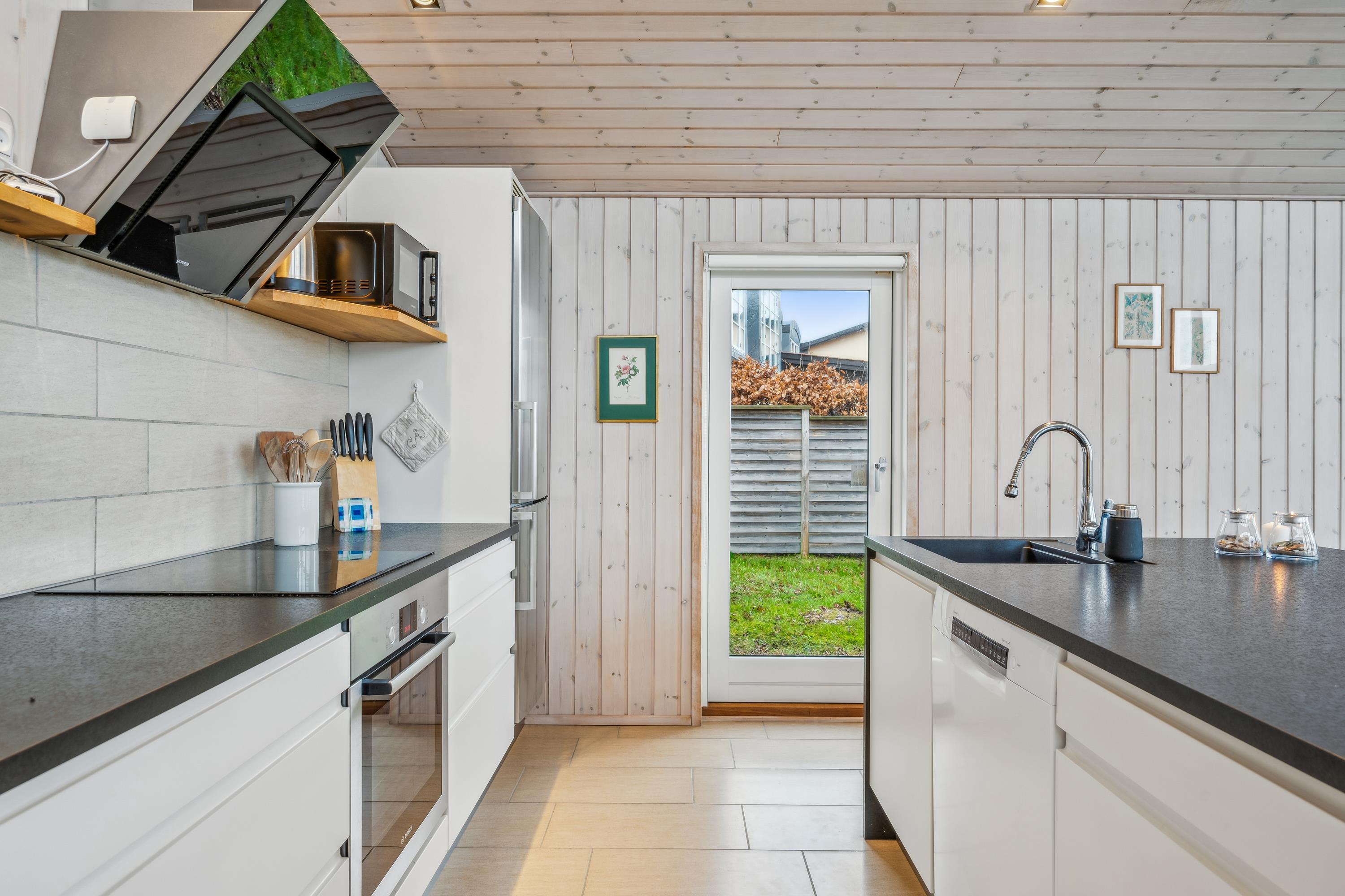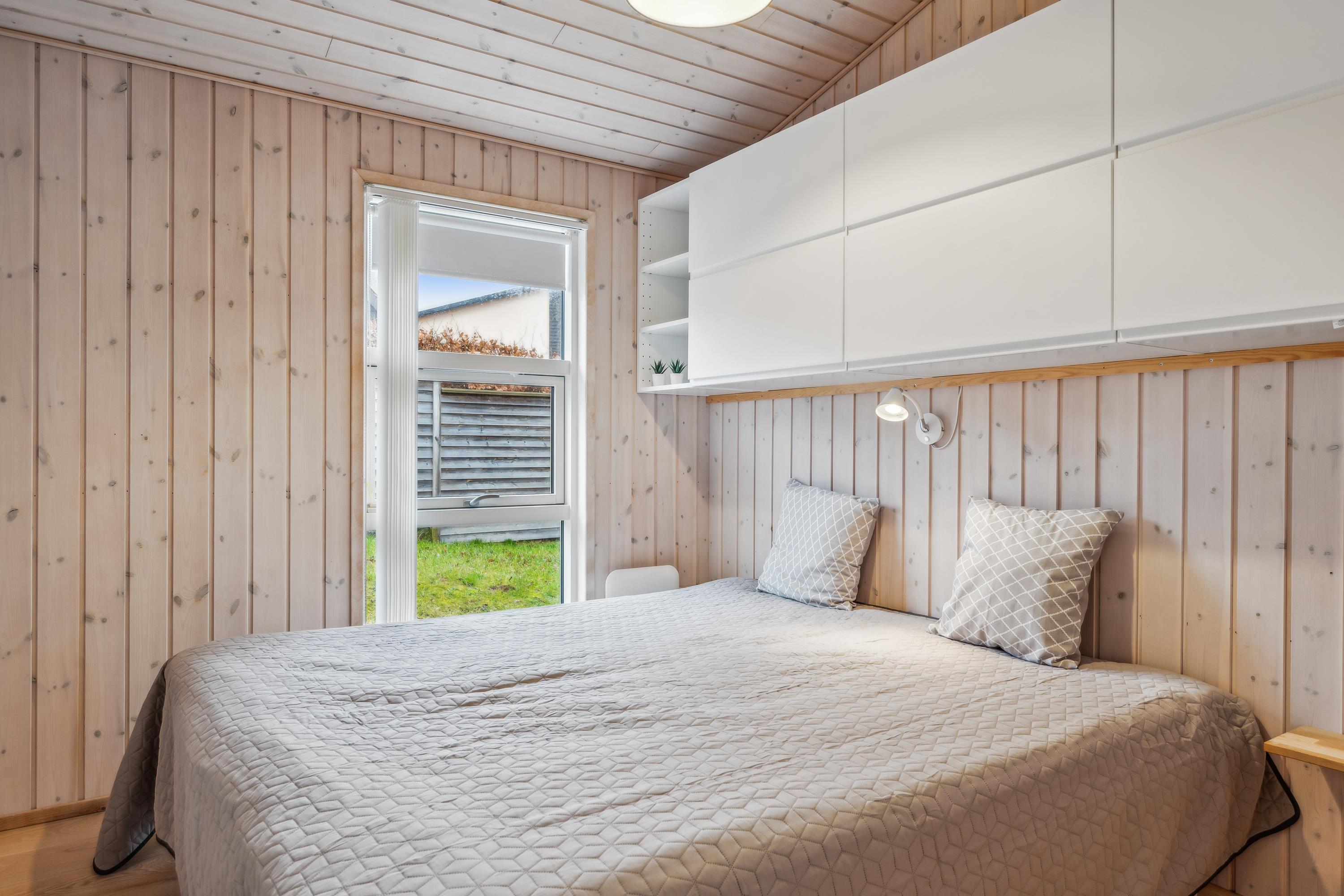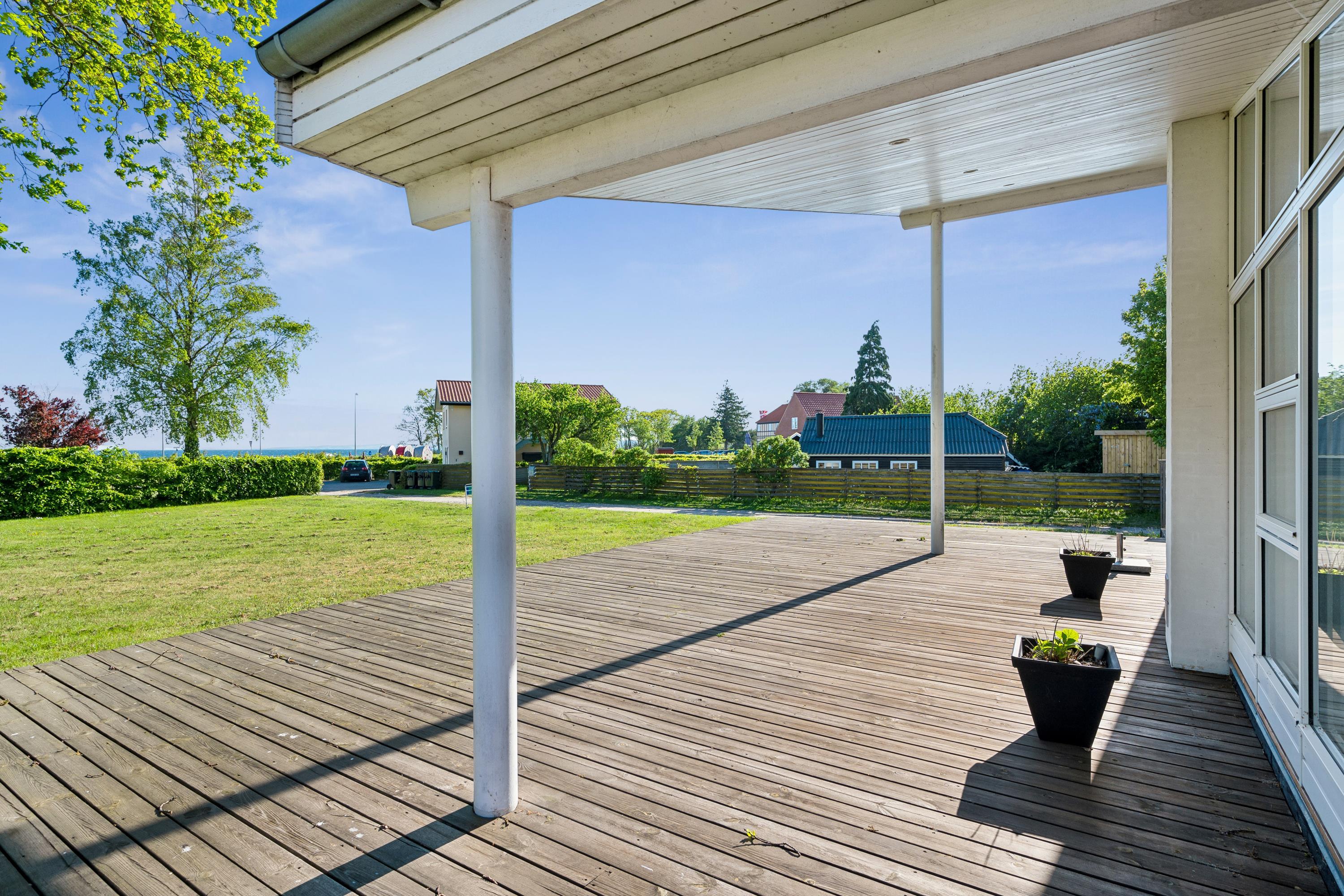 Flot feriehus ved Femmøller strand med terrasse, spa, brændeovn og udsigt til vandet i naturskønne omgivelser.