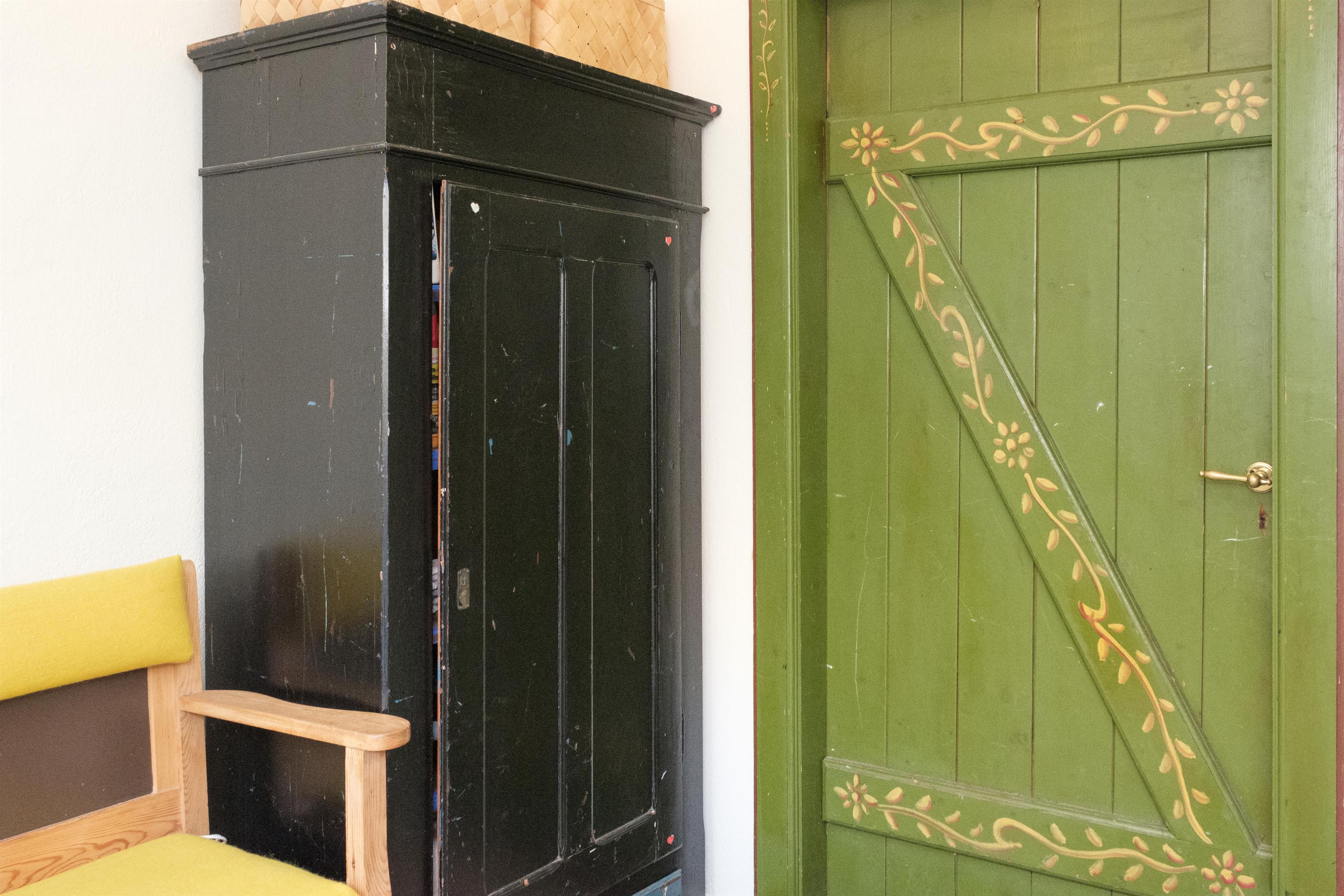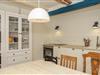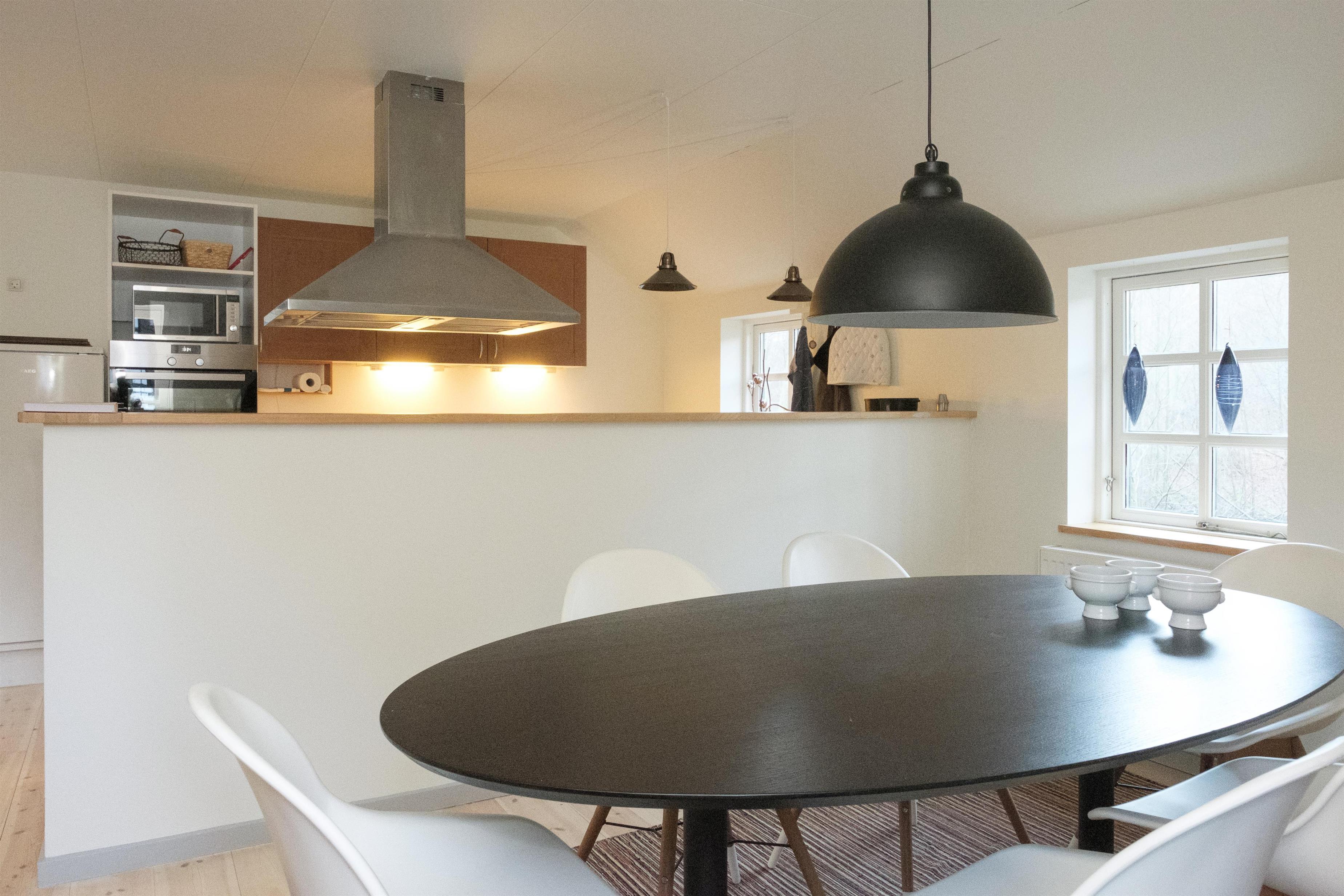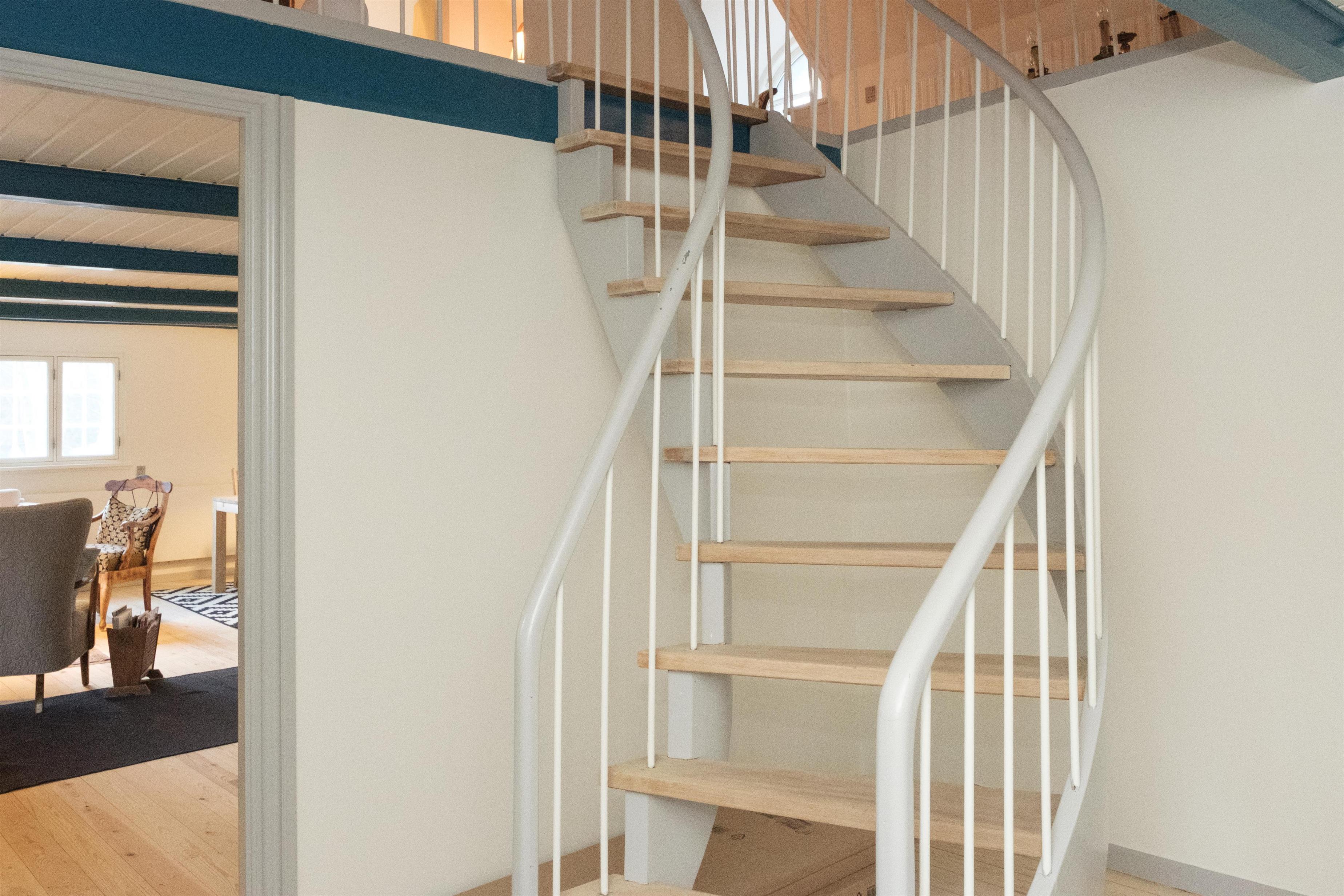 Hovedlængen med den flotte dobbeltdør er på 180 kvm og har plads til 10 personer. Her er lige som i resten af ejendommen gennemført indrettet og møbleret med en smagfuld blanding af gammelt og nyt. I den store, lyse stue samles man om den originale, murede kamin med brændeovnsindsats, og her er desuden spiseplads til 10 personer. Det store og praktiske køkken har keramisk komfur med ovn, køle-/fryseskab, opvaskemaskine og mikrobølgeovn. Huset rummer 10 sovepladser fordelt på 2 store, dejlige soveværelser i stueplan med dobbeltseng, og på 1. sal ligeledes 2 soveværelser med dobbeltseng foruden opholdsstue med dobbelt sovesofa.