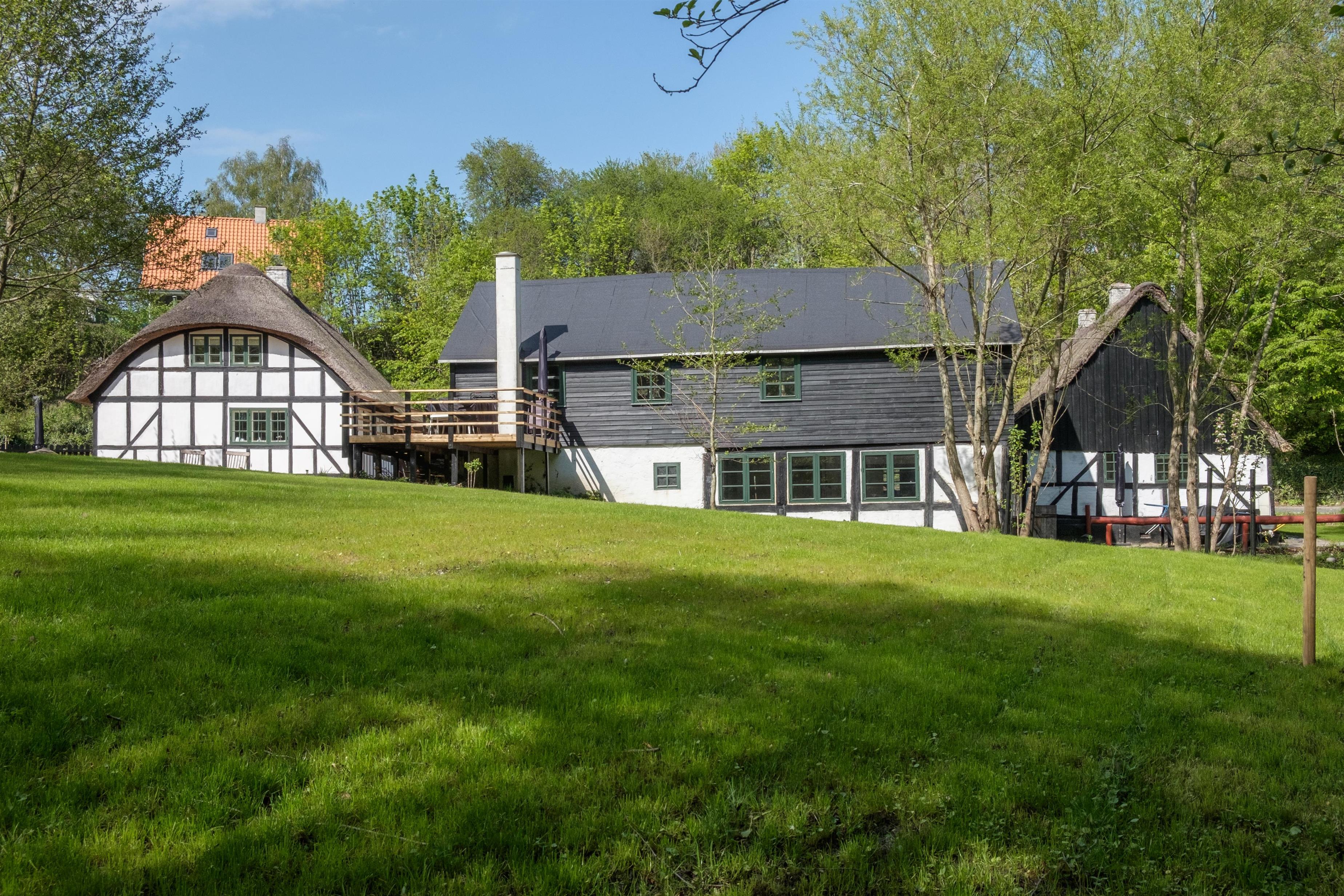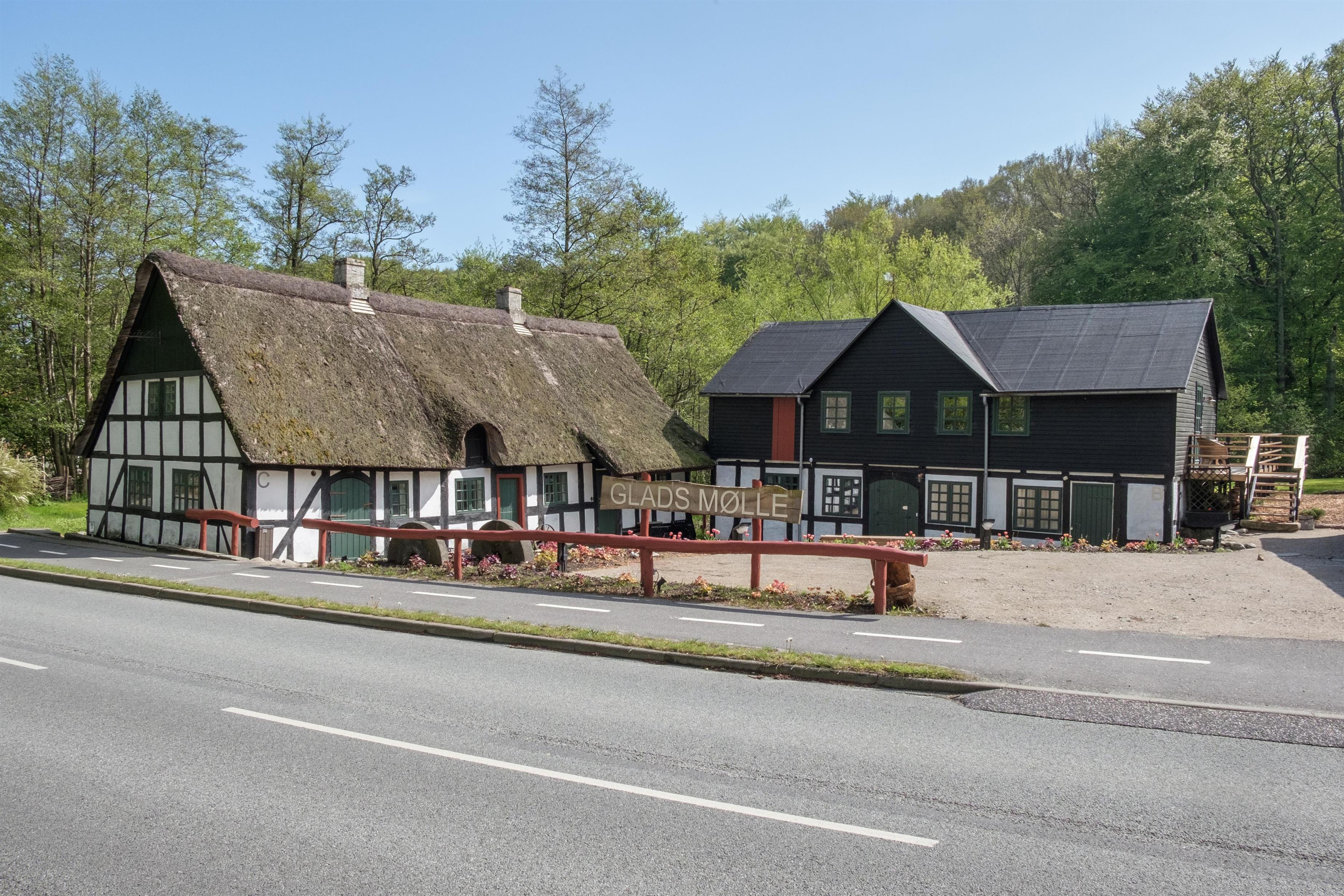 Glads Mølles tilbyder 400 m² historisk charme ved Mølleåen med plads til 22 personer i Femmøller, tæt på strand og natur.
