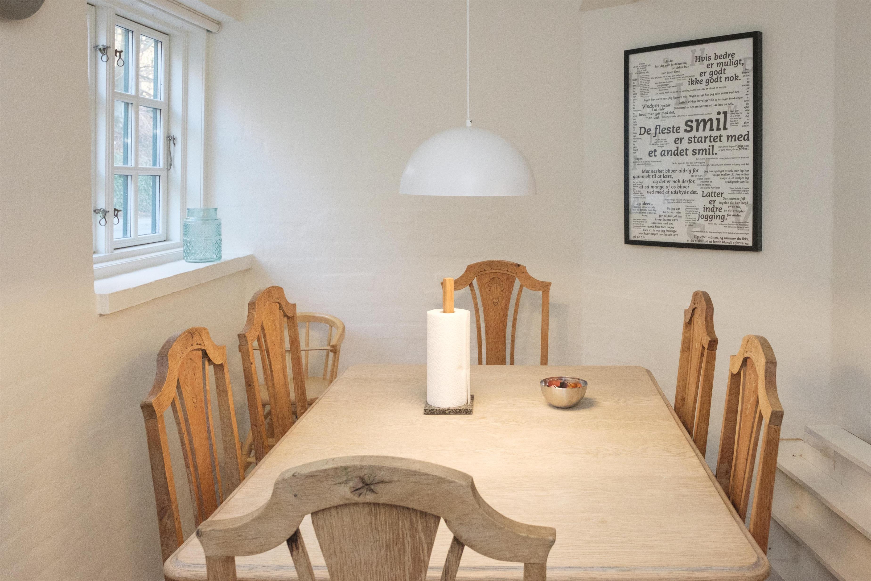 Ferielejligheden på 1. sal i det gamle møllehus rummer dejlig, lys stue med spiseplads til 6 personer samt hyggeligt og bekvemt sofamøblement. I åben forbindelse med stuen ligger det nye, veludstyrede køkken med keramisk komfur, indbygningsovn, køleskab, fryser, opvaskemaskine og mikrobølgeovn. Lejligheden råder over 6 sengepladser fordelt på 2 lyse og rummelige soveværelser med dobbeltseng samt 1 værelse med køjeseng. Velindrettet, godt badeværelse med bruseniche og vaskemaskine. I stueetagen ligger Munkestuen, en lys og dejlig spise-/festsal med spiseplads til 22 personer samt køkkenfaciliteter og badeværelse.
