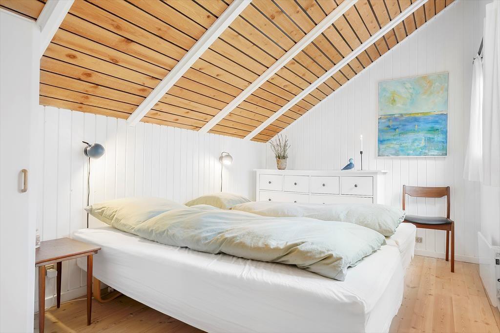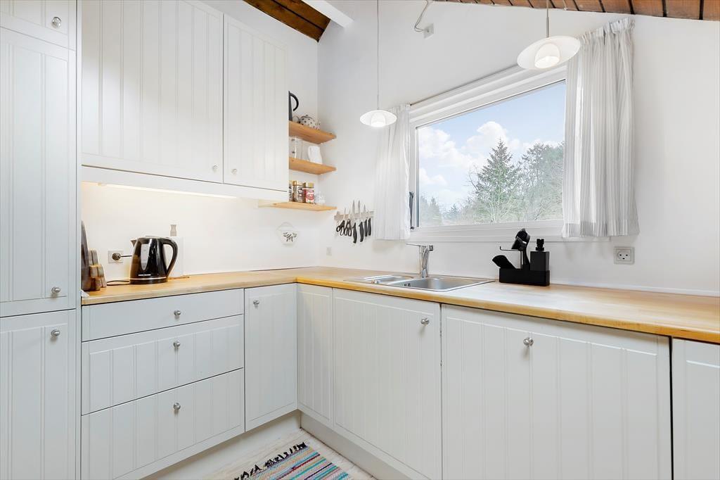 Træd ind i et lyst og velindrettet feriehus, hvor hyggen er i centrum. Den rummelige stue byder på brændeovn, flere siddeområder og en indbydende daybed – perfekt til afslapning med en god bog. Herfra er der adgang til en delvis overdækket terrasse. Køkkenet er moderne og veludstyret, og med sin åbne forbindelse til stuen skaber det en skøn ramme for samvær, mens maden tilberedes. Huset har tre dejlige værelser med gode boksmadrasser og mørklægningsgardiner, så du er sikret en god nats søvn. Badeværelset er helt nyt fra 2024 og har både gulvvarme og en elegant bruseniche.