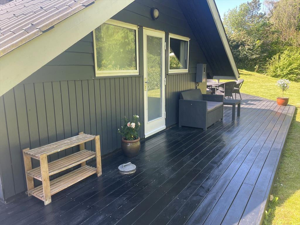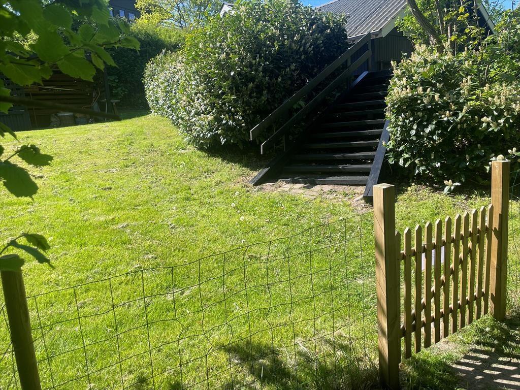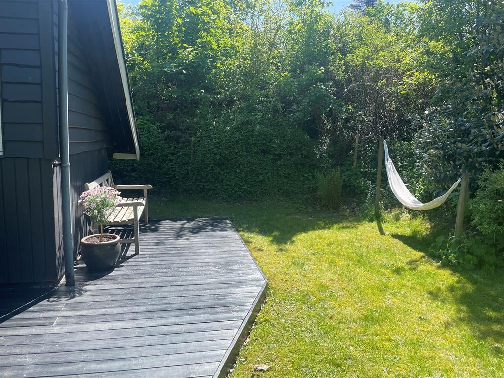 Huset ligger på en stor, indhegnet naturgrund med masser af plads til leg, boldspil og afslapning i det fri. Terrassen er udstyret med komfortable havemøbler og grill – ideelt til lange sommeraftener under åben himmel. Med en placering for enden af en lukket vej kan du nyde freden og roen i naturskønne omgivelser, kun fem minutters gang fra den populære Italienske Sti og de spektakulære landskaber i Mols Bjerge.
