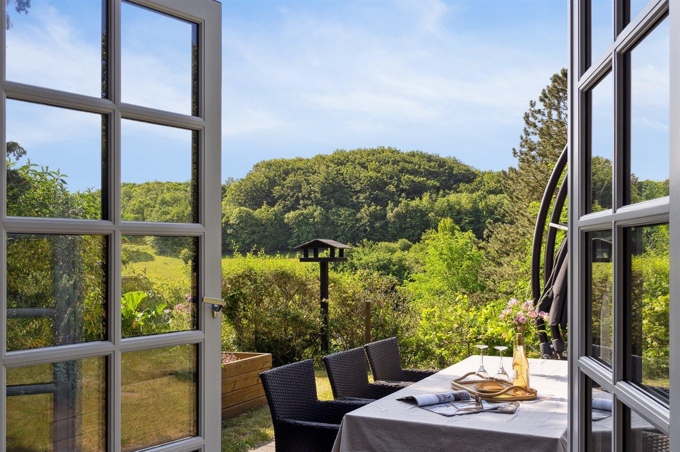 I det kuperede terræn midt i Femmøllers smukke omgivelser finder du et sommerhus, der er perfekt til fire personer. Dette usædvanlige feriehus er omgivet af skove, landskaber og møllemiljøer, der skaber en unik atmosfære. Huset fremstår lyst, moderne og velholdt, og det har alt, hvad man skal bruge til en skøn ferie.