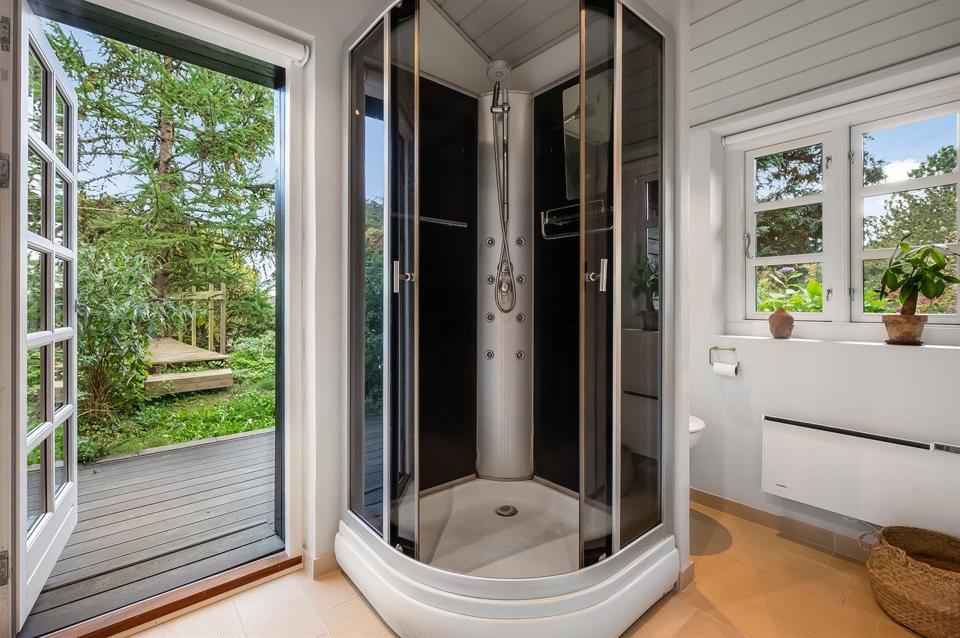 Der er 1 badeværelse med bruser og 1 toilet.. Der er gulvvarme på 1 badeværelse.. Badekar.