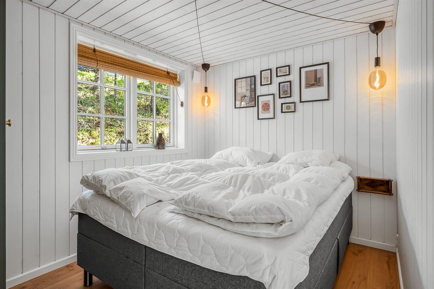 Der er i alt 2 soveværelser. Sovepladserne fordeler sig på: 4 sovepladser i dobbeltsenge. 2 sovepladser på madrasser. 2 sovepladser i alkove. 2 af disse sovepladser befinder sig i opholdsstuen og 2 af dem befinder sig på hemsen.