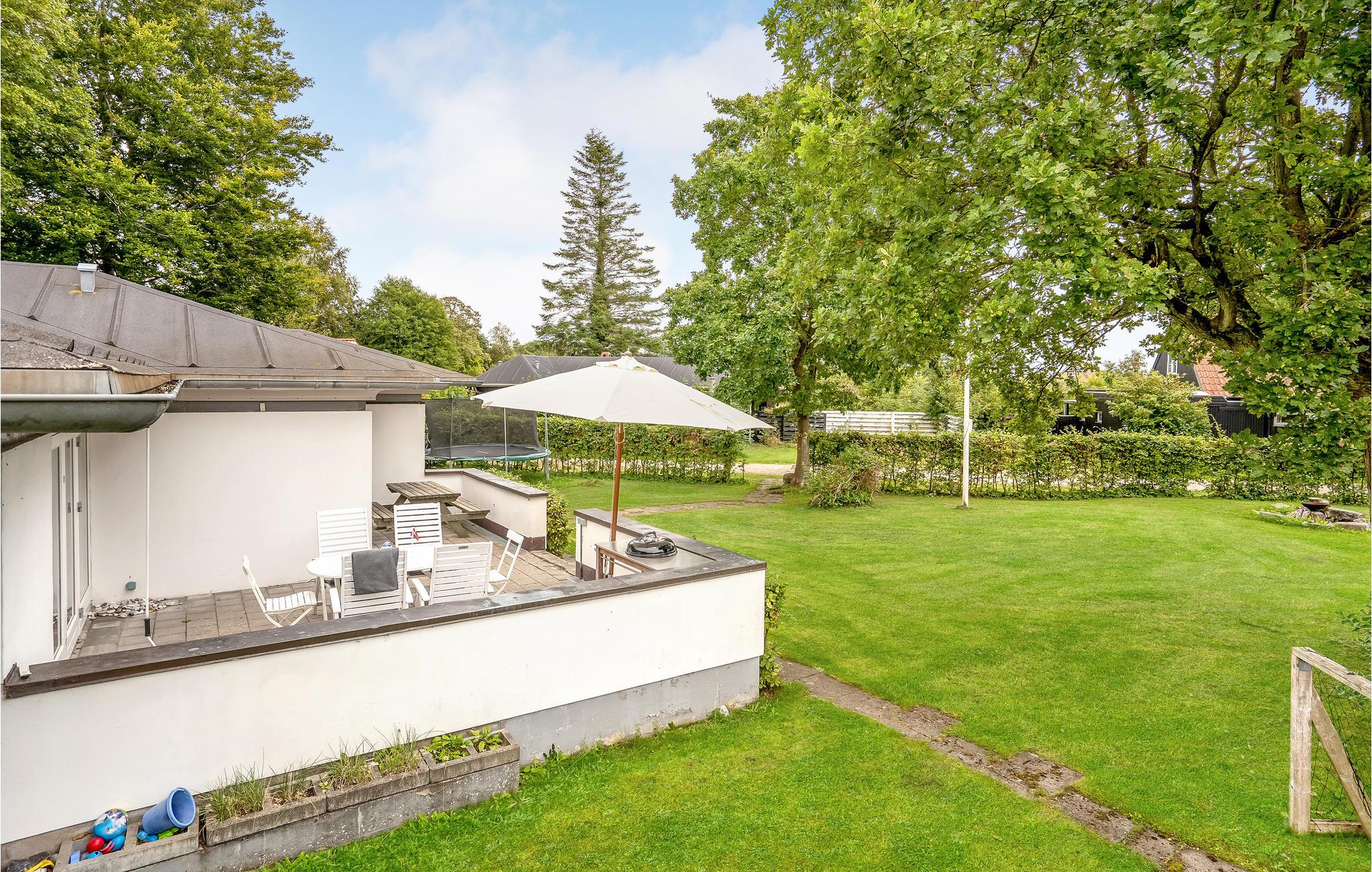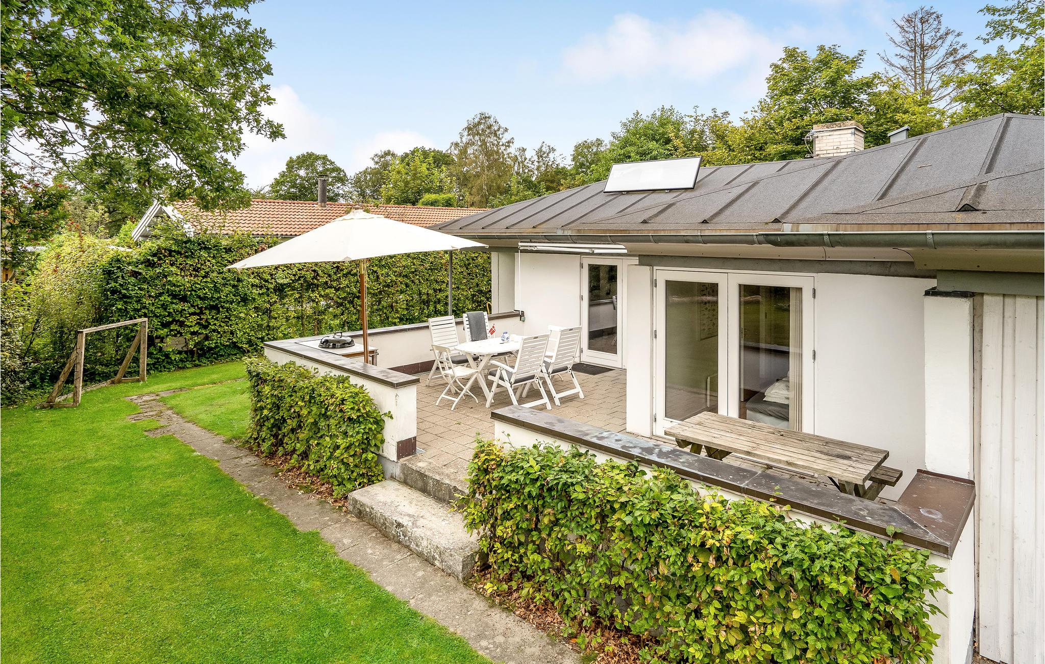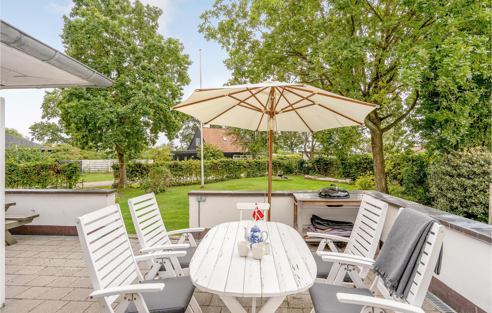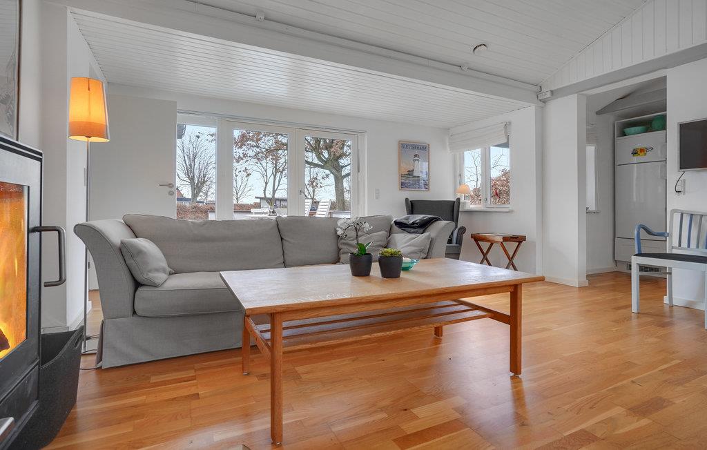 Hyggeligt sommerhus med brændeovn og terrasse kun 300 m fra Femmøller Strand i smukke omgivelser.