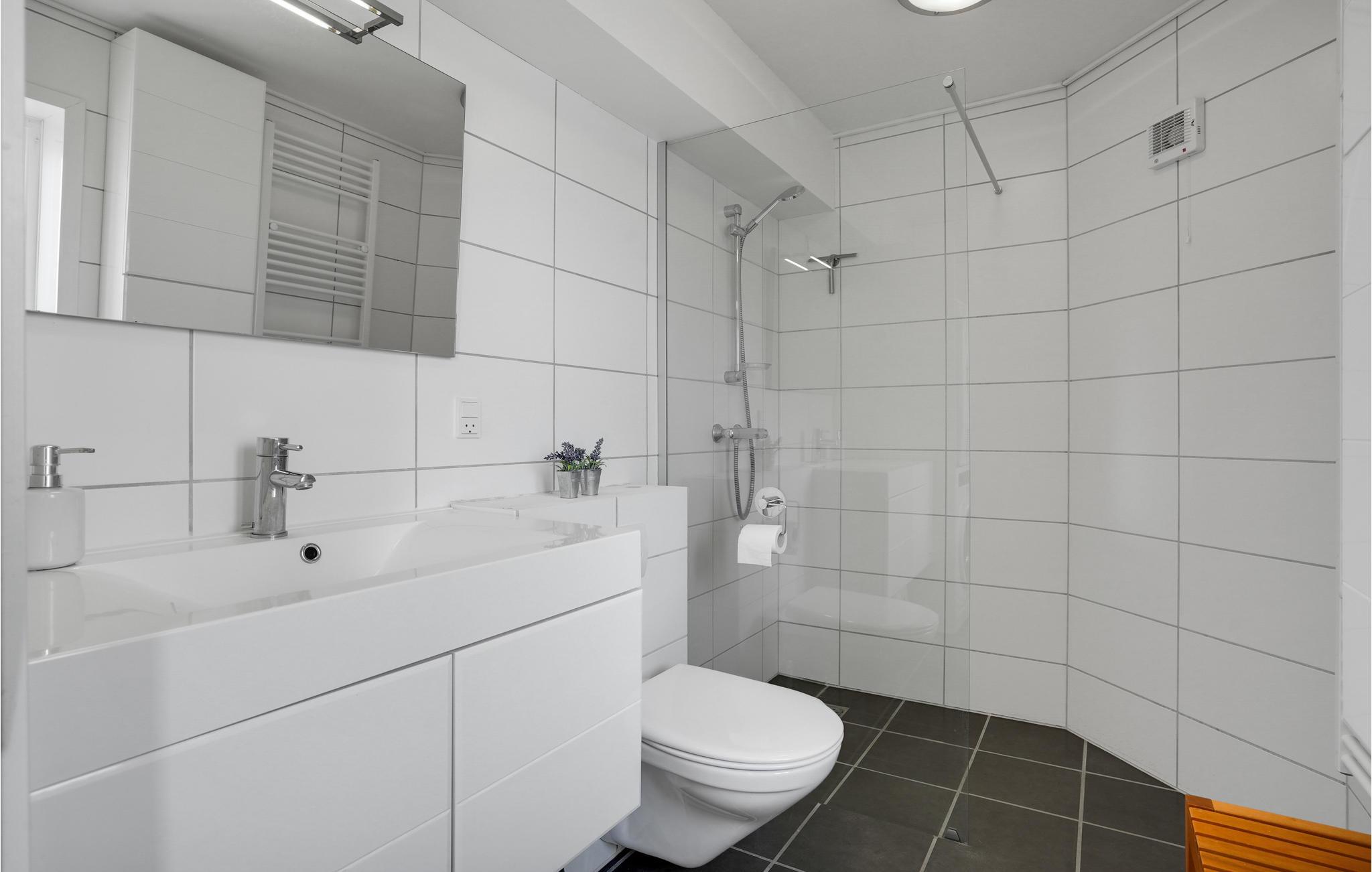 Badeværelse (nr. 1) - WC. Varmt og koldt vand. Bruser