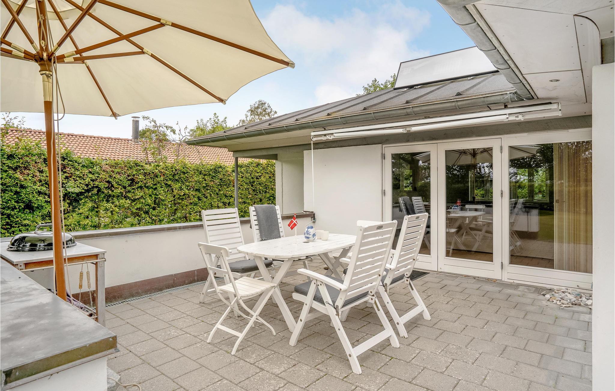 Udenfor finder I den delvist overdækkede terrasse med havemøbler og en grill, så I kan invitere vennerne over om aftenen.