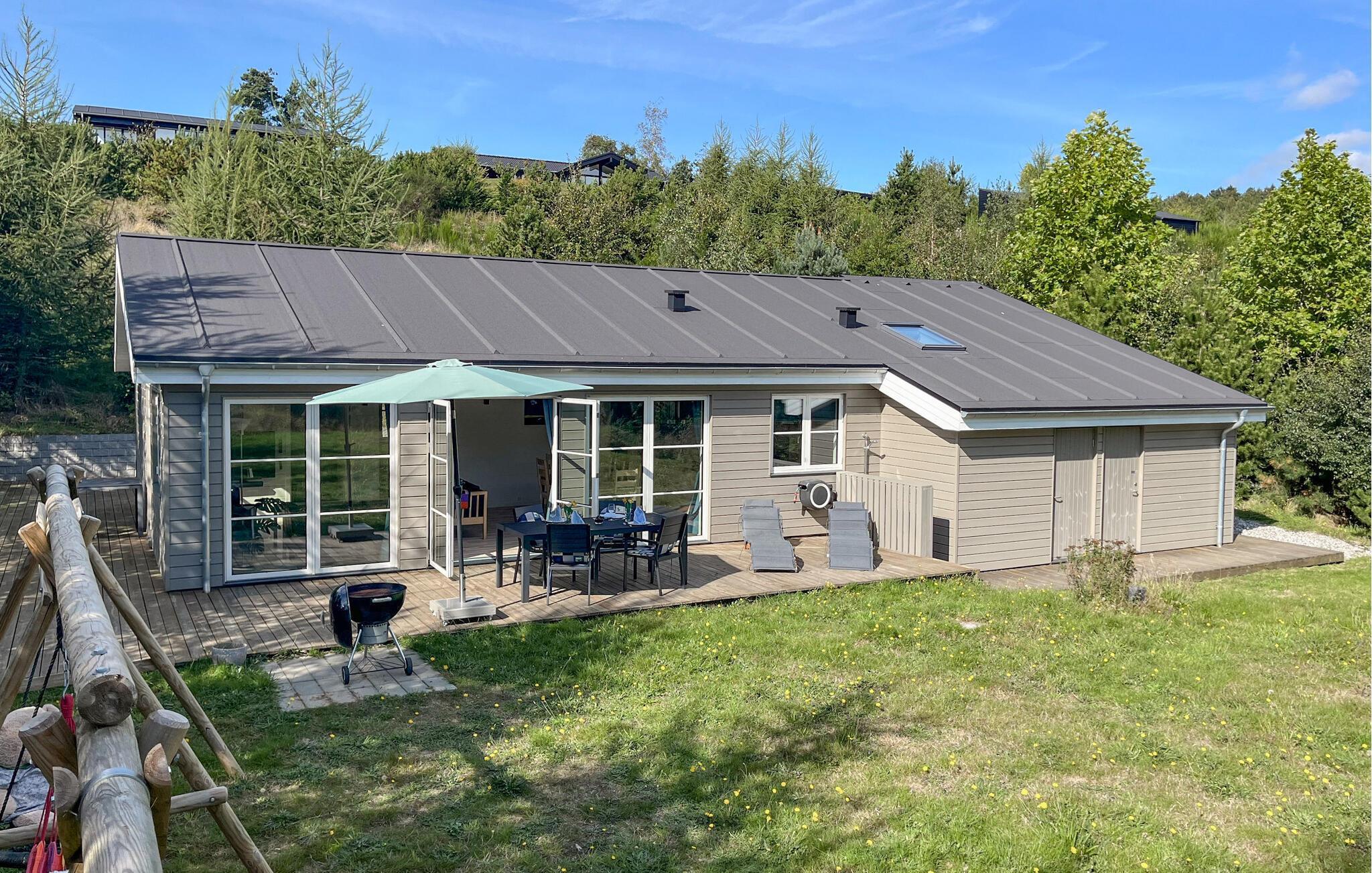 Moderne sommerhus med sauna, spa og åben terrasse i naturskønne Mols Bakker.
