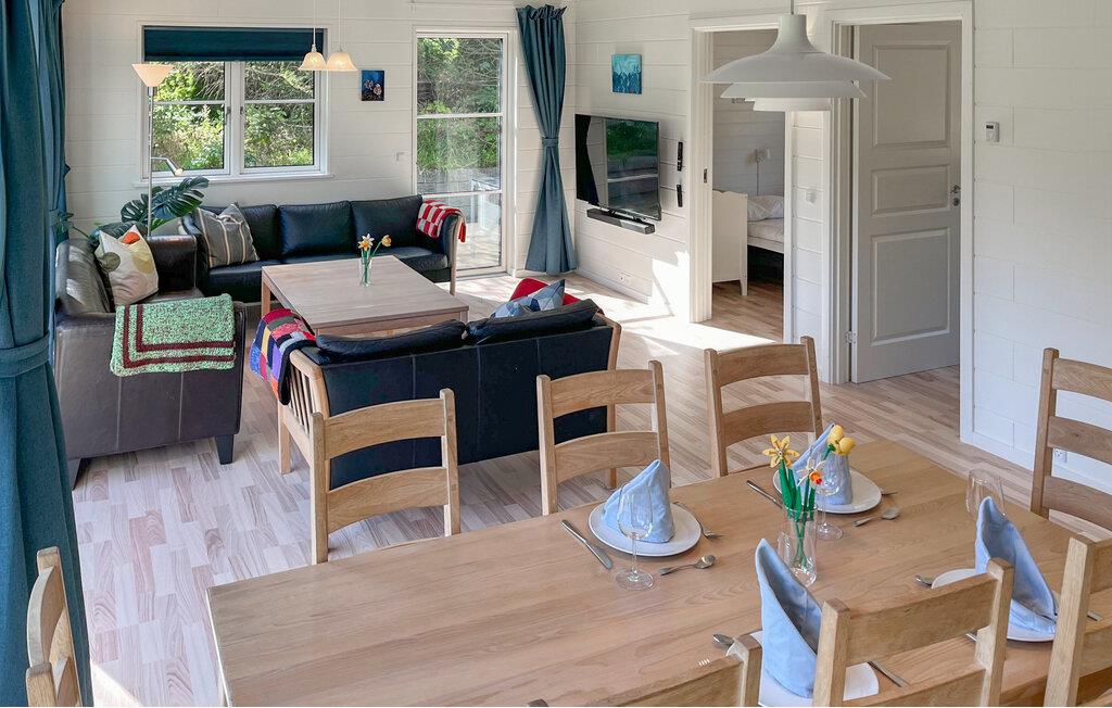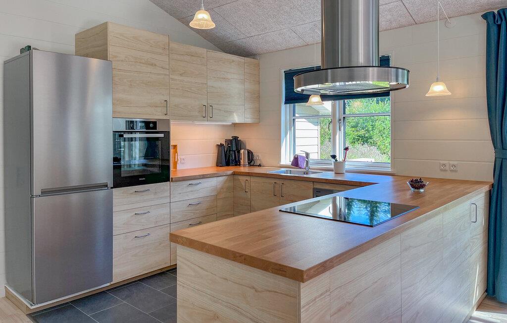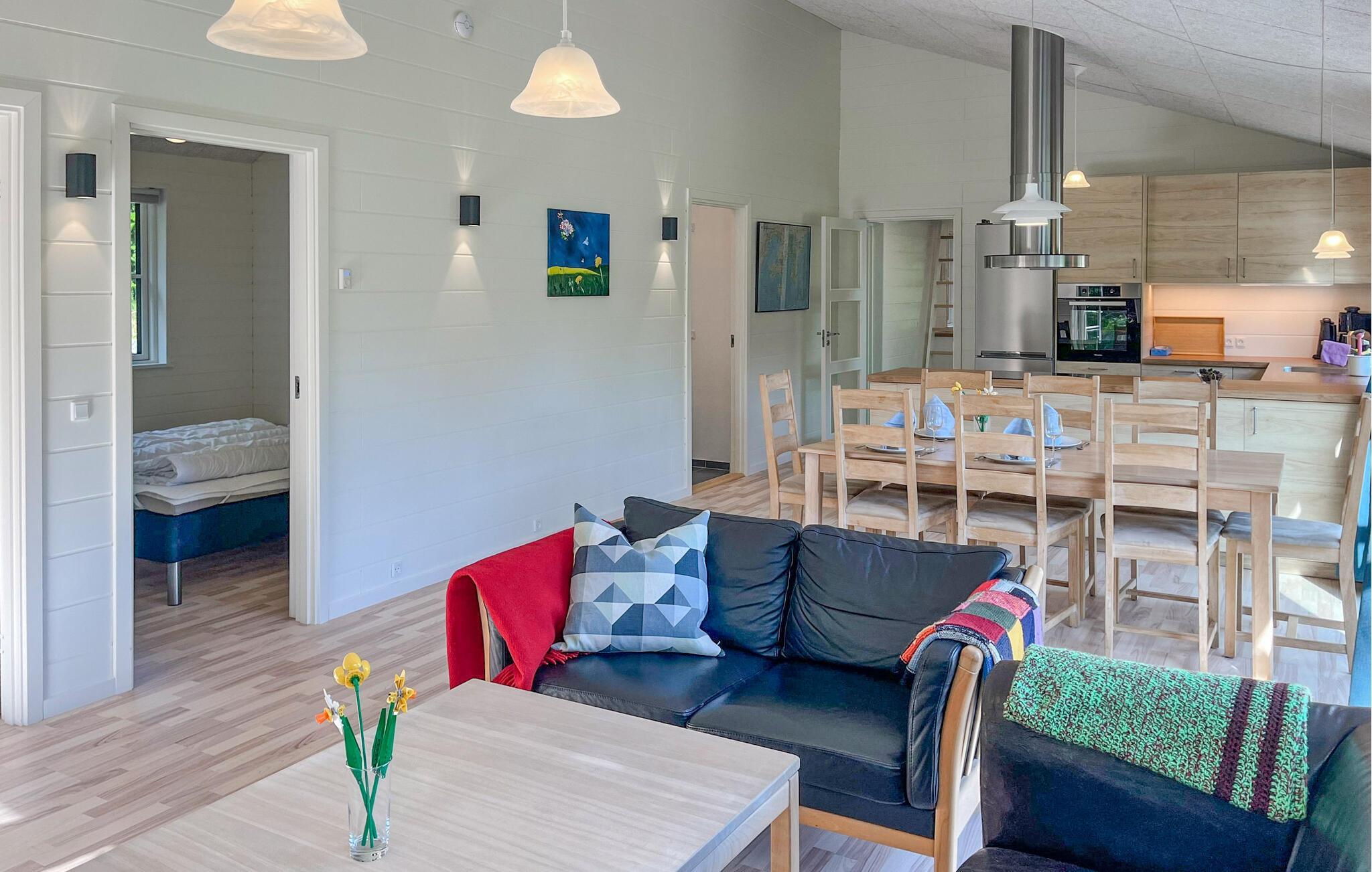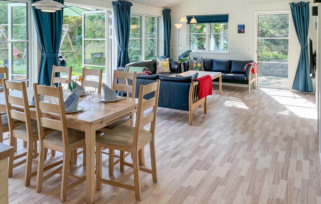 Dette flotte sommerhus har masser af plads til én stor familie eller to små familier og ligger placeret i det skønne, bakkede landskab, som kendetegner Mols. Indretningen er lys og indbydende. De store vinduespartier i stuen med åbent køkken sikrer en lys, afslappet atmosfære, hvor I med det samme vil føle jer godt tilpas. Ud over flere gode soveværelser byder huset også på en åben hems, der kan fungere som et hyggeligt legeområde for børnene.