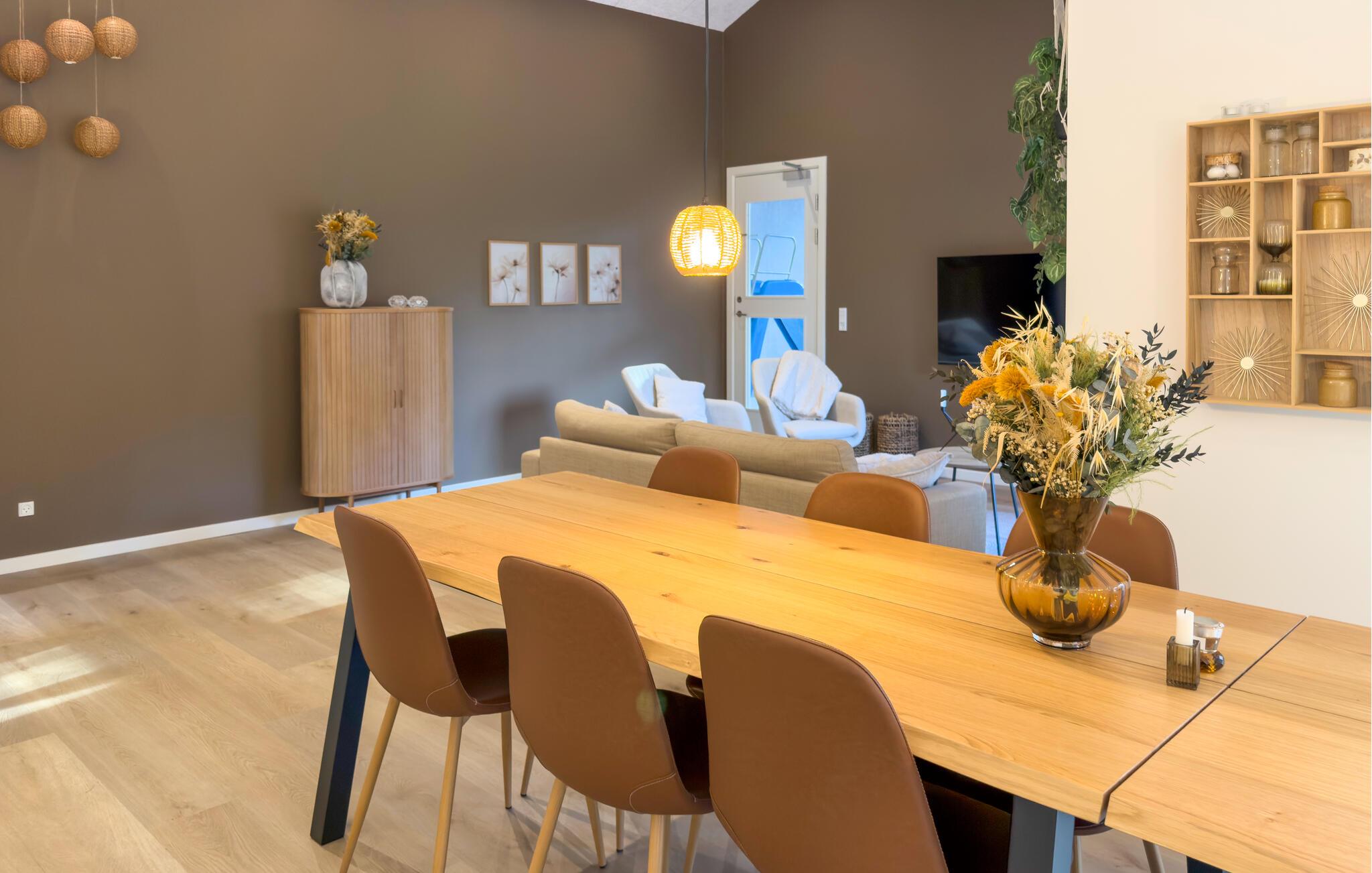 Velkommen til en kombination af flotte indretningsløsninger, afdæmpede farver og moderne møbler. Her finder I et sted, hvor I kan falde til ro og nyde nogle afslappede stunder – uanset om I holder en hyggelig spilleaften, streamer en podcast eller tilbringer fornøjelige timer med leg og sjov i saltvandspoolen.
